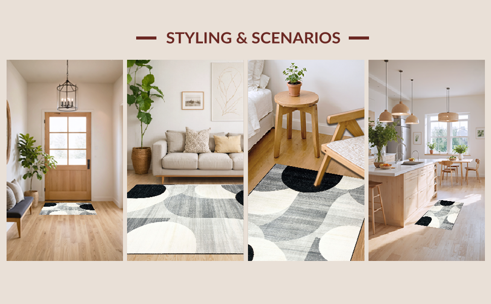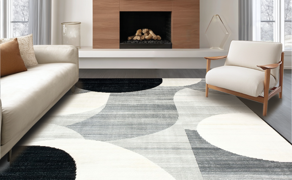 Ultra Soft Area Rug, Non Slip, Stain Resistant, Washable Area Rugs for Living Room, Bedroom, Chic Dynamic Patterned Design(Gray) Overview: