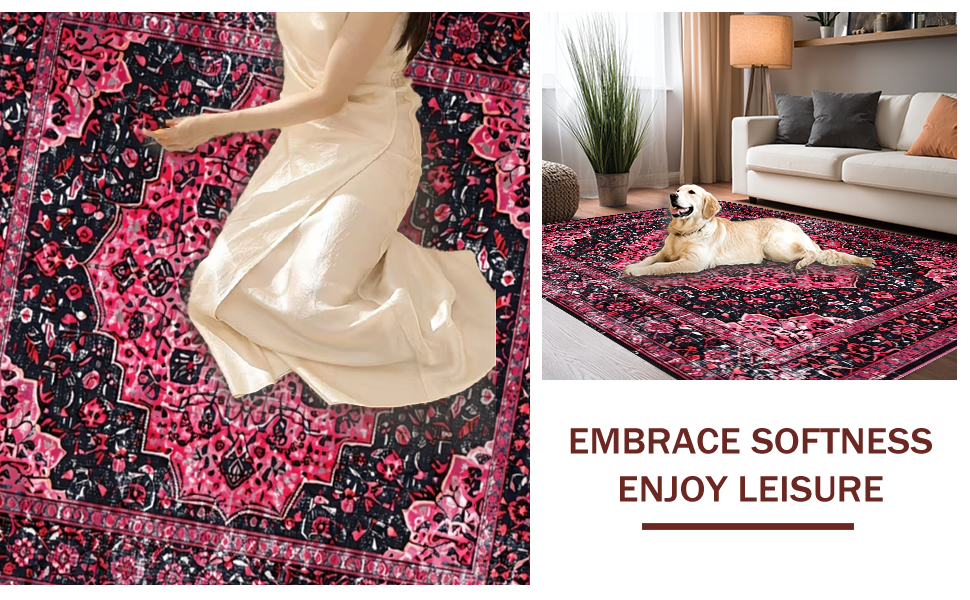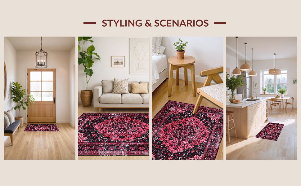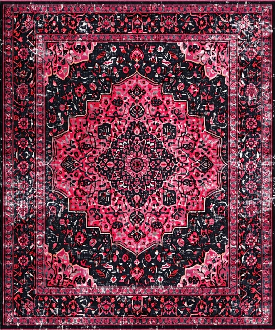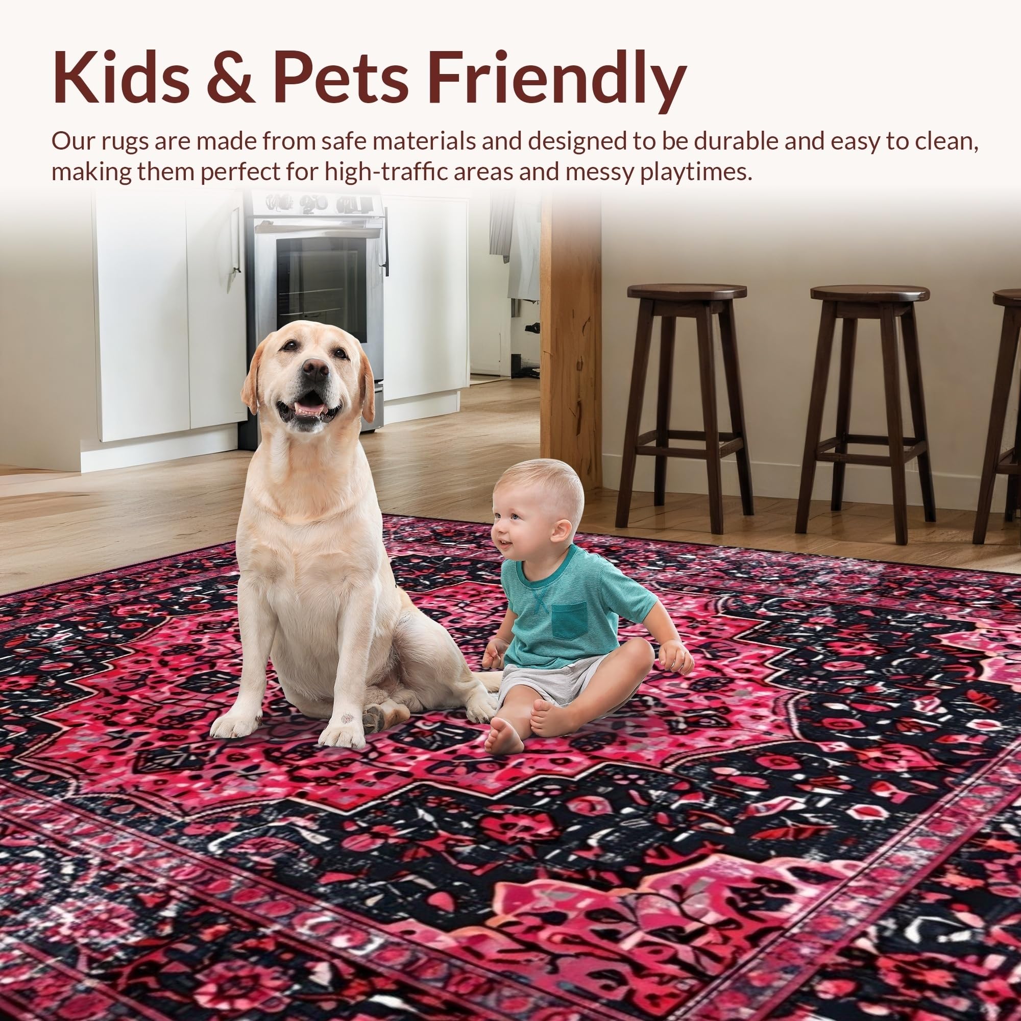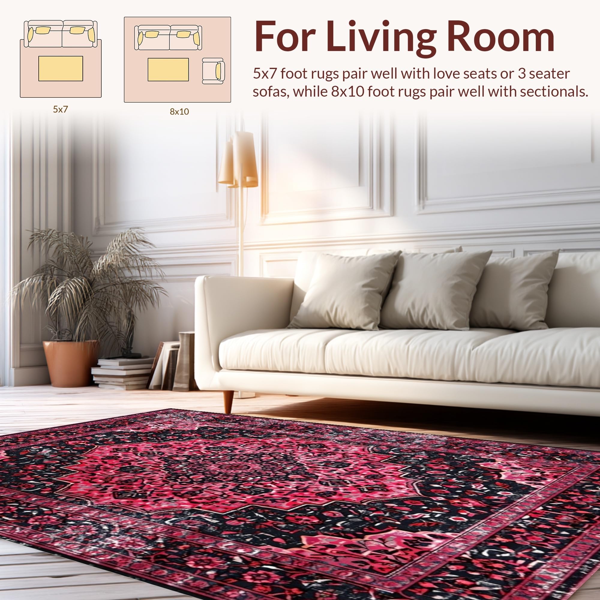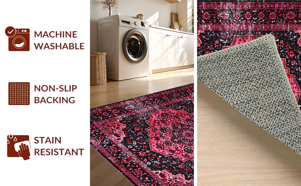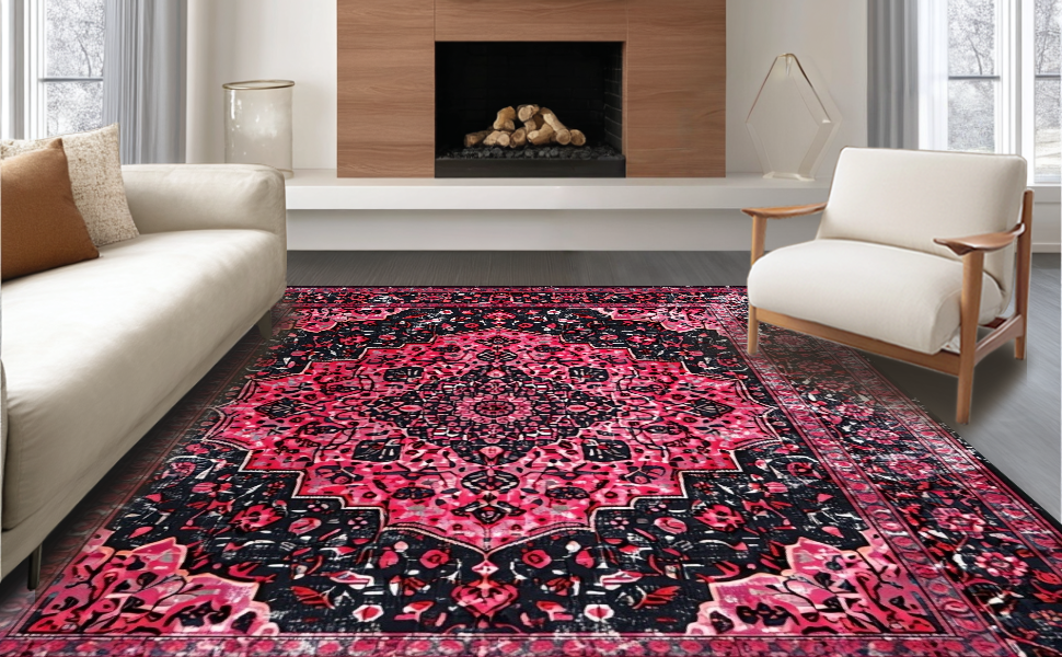 Ultra Soft Area Rug, Non Slip, Stain Resistant, Washable Area Rugs for Living Room, Bedroom, Chic Earth Tone Medallion Pattern(Red) Overview: