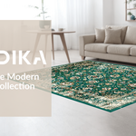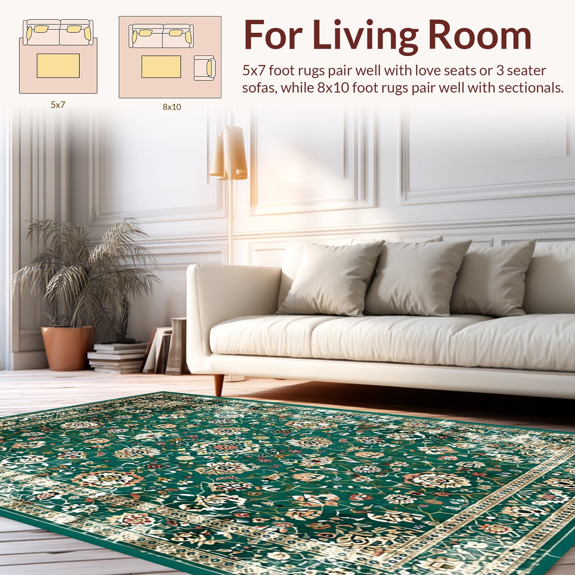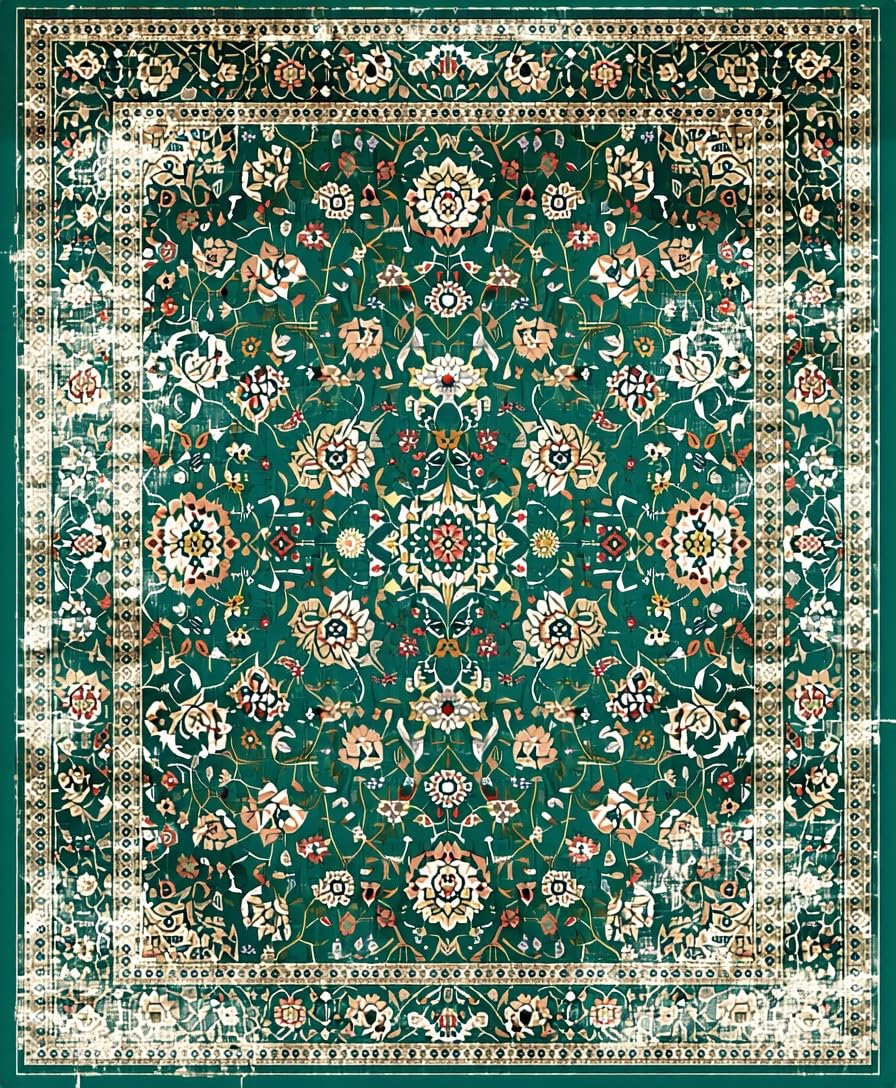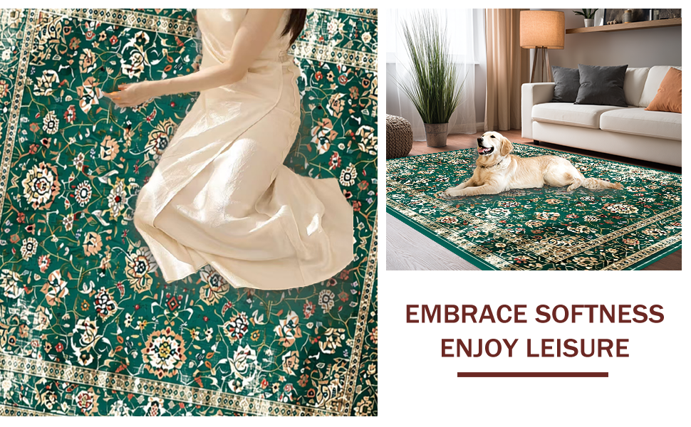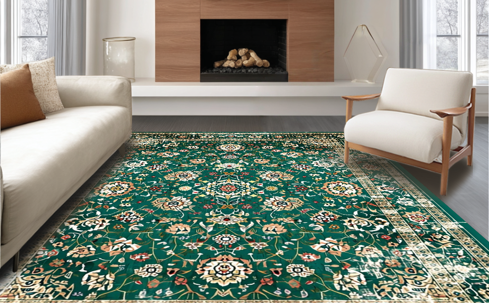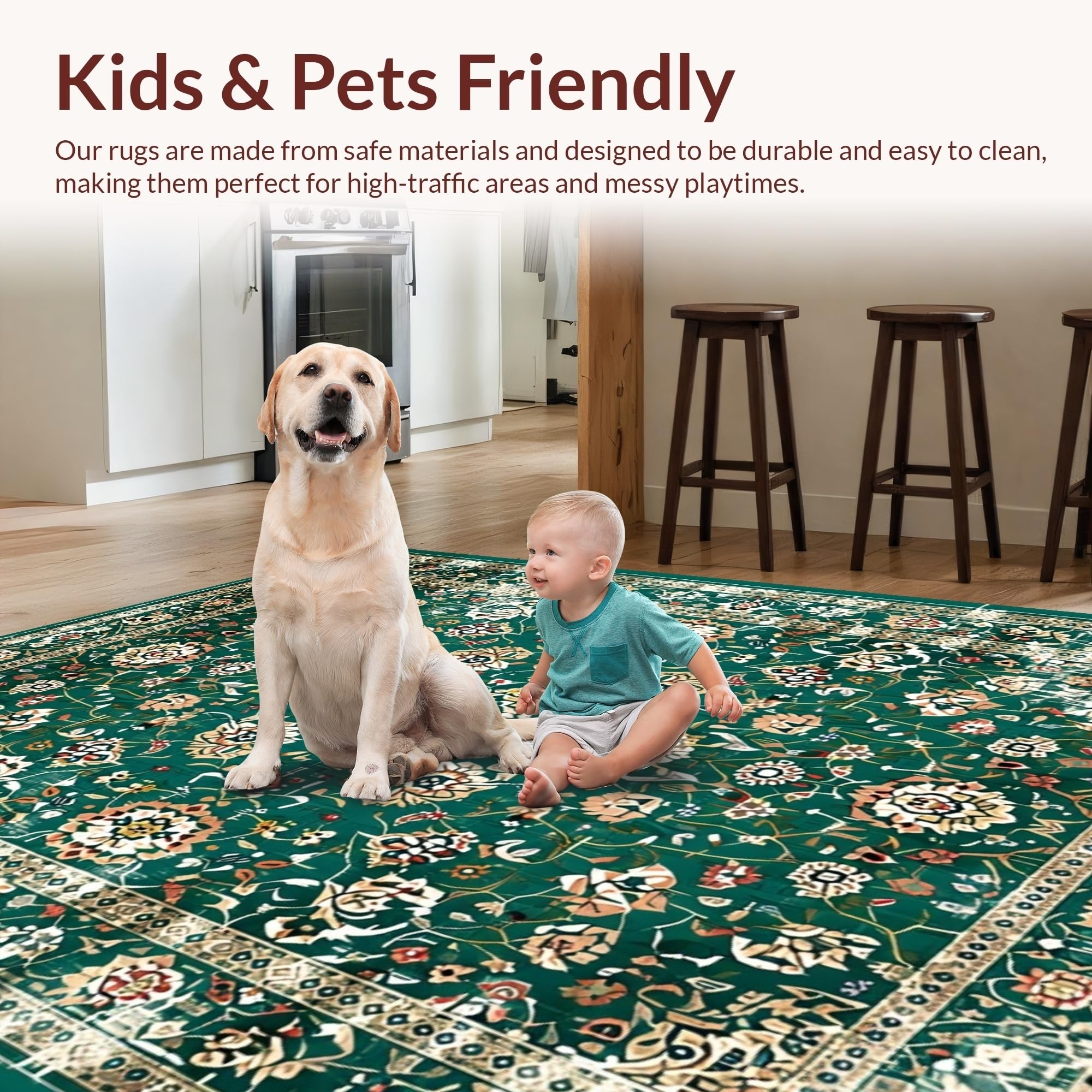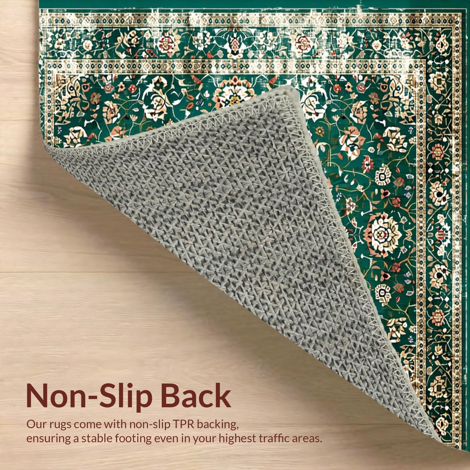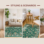 Ultra Soft Area Rug, Non Slip, Stain Resistant, Washable Area Rugs for Living Room, Bedroom, Chic Earth Toned Distressed Motif(Green) Overview: