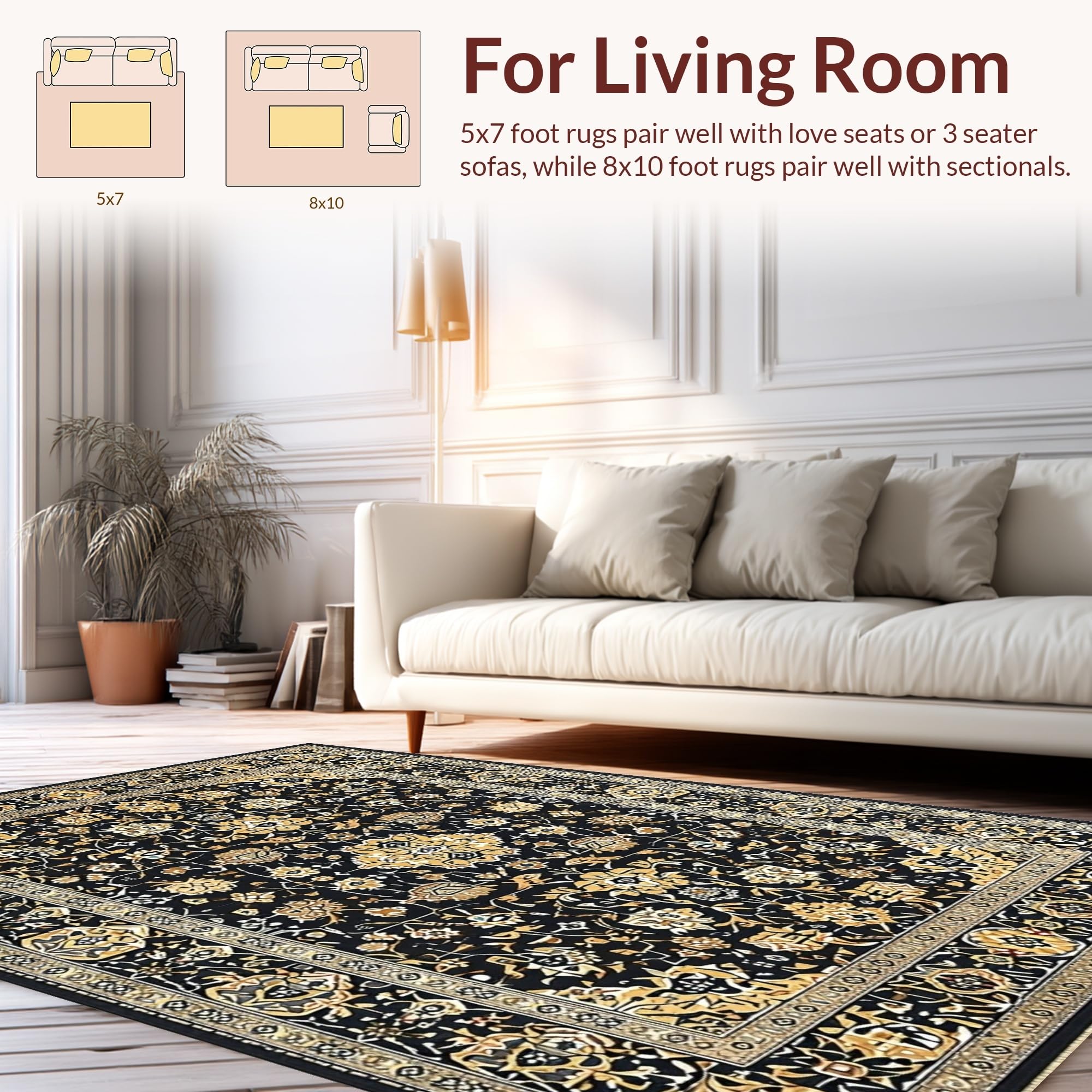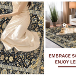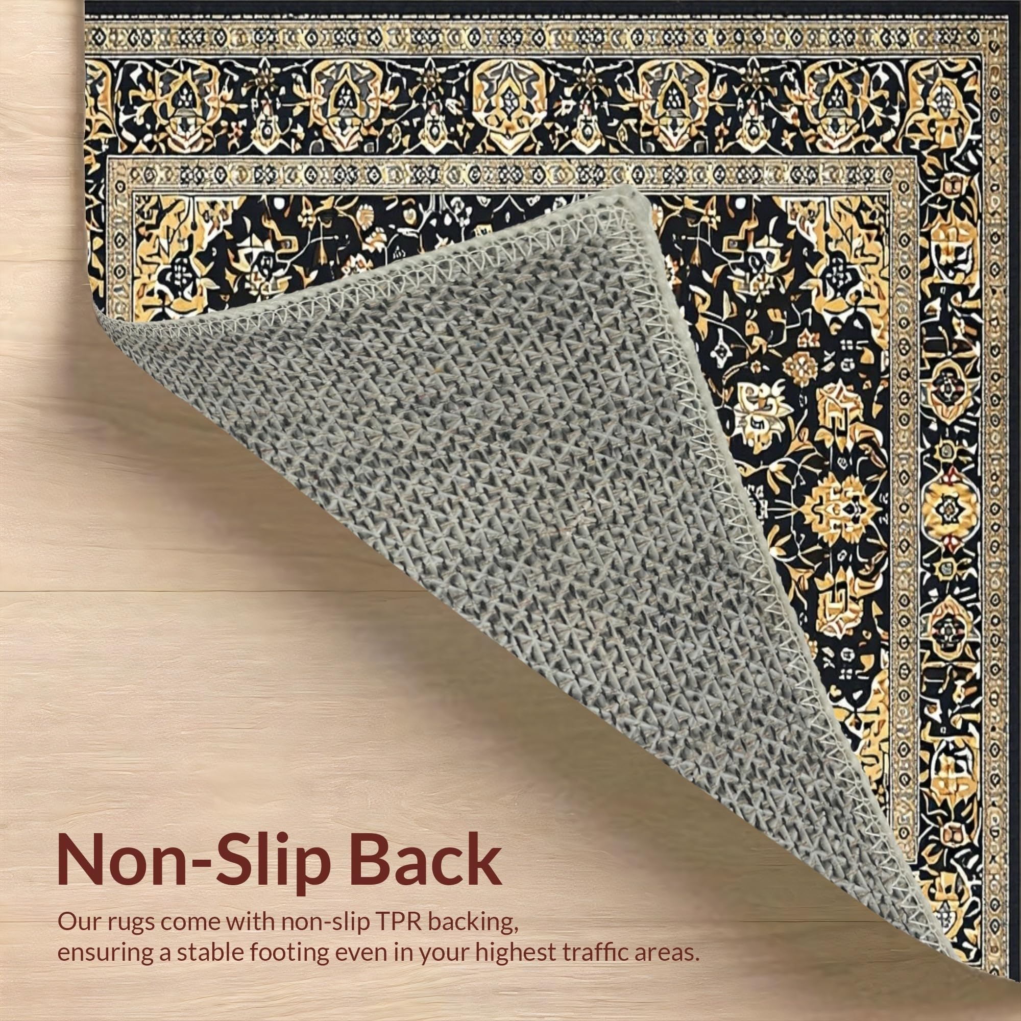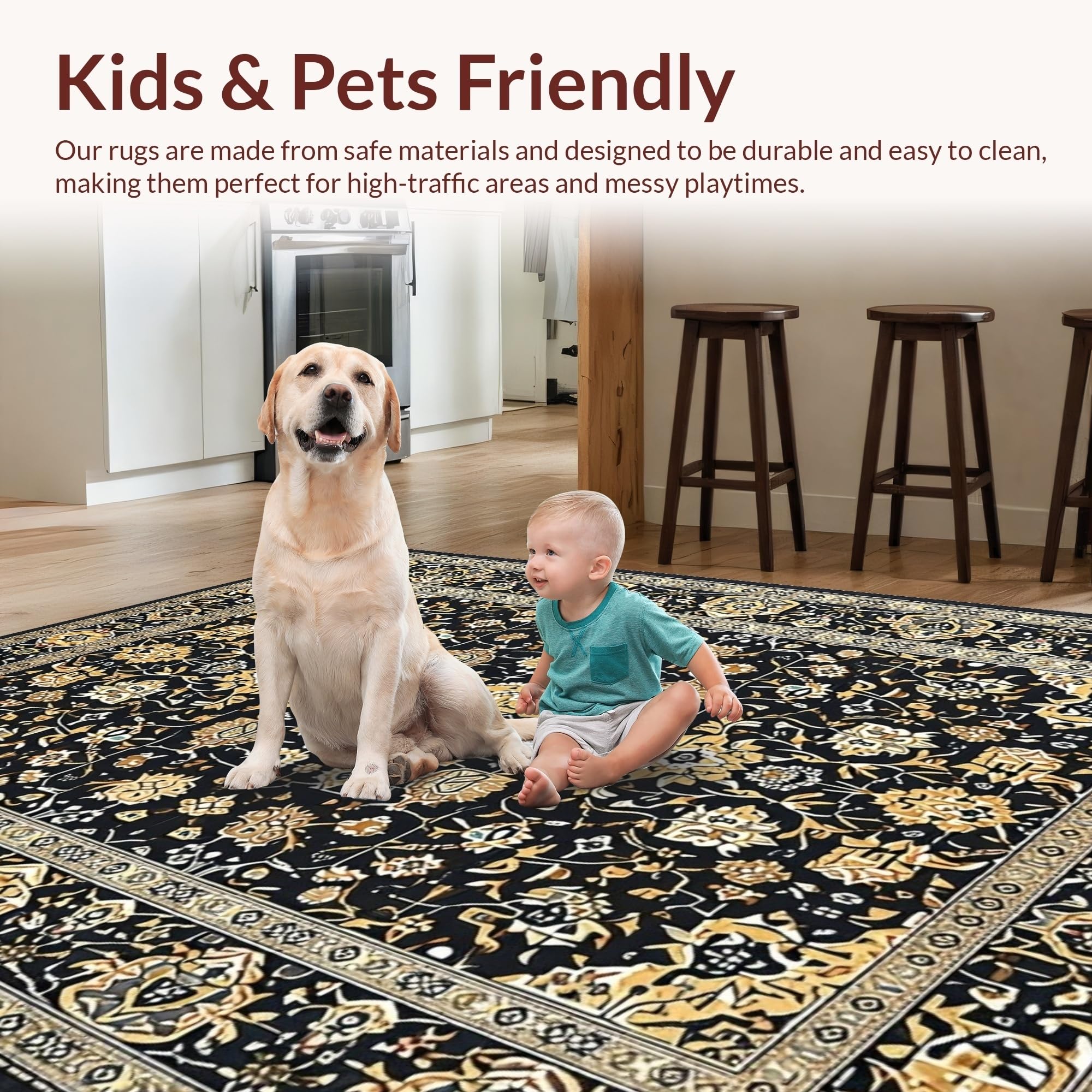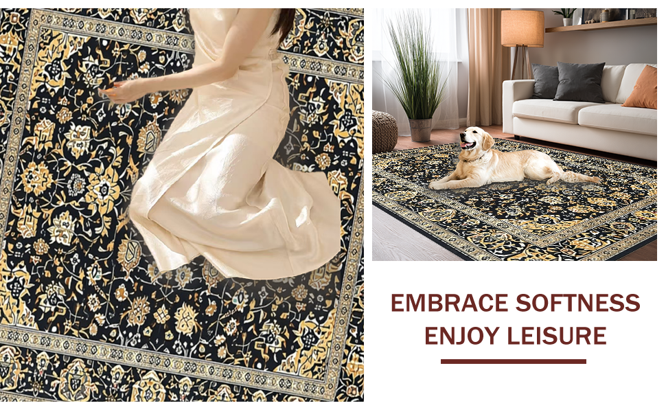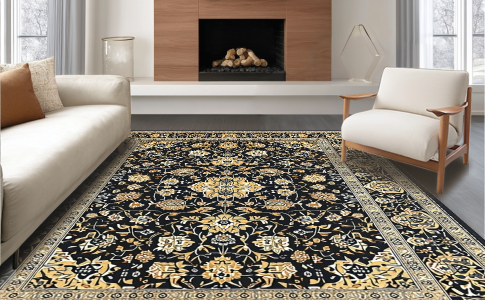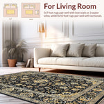 Ultra Soft Area Rug, Non Slip, Stain Resistant, Washable Area Rugs for Living Room, Bedroom, Chic Earthy Distressed Aesthetic(Black) Overview: