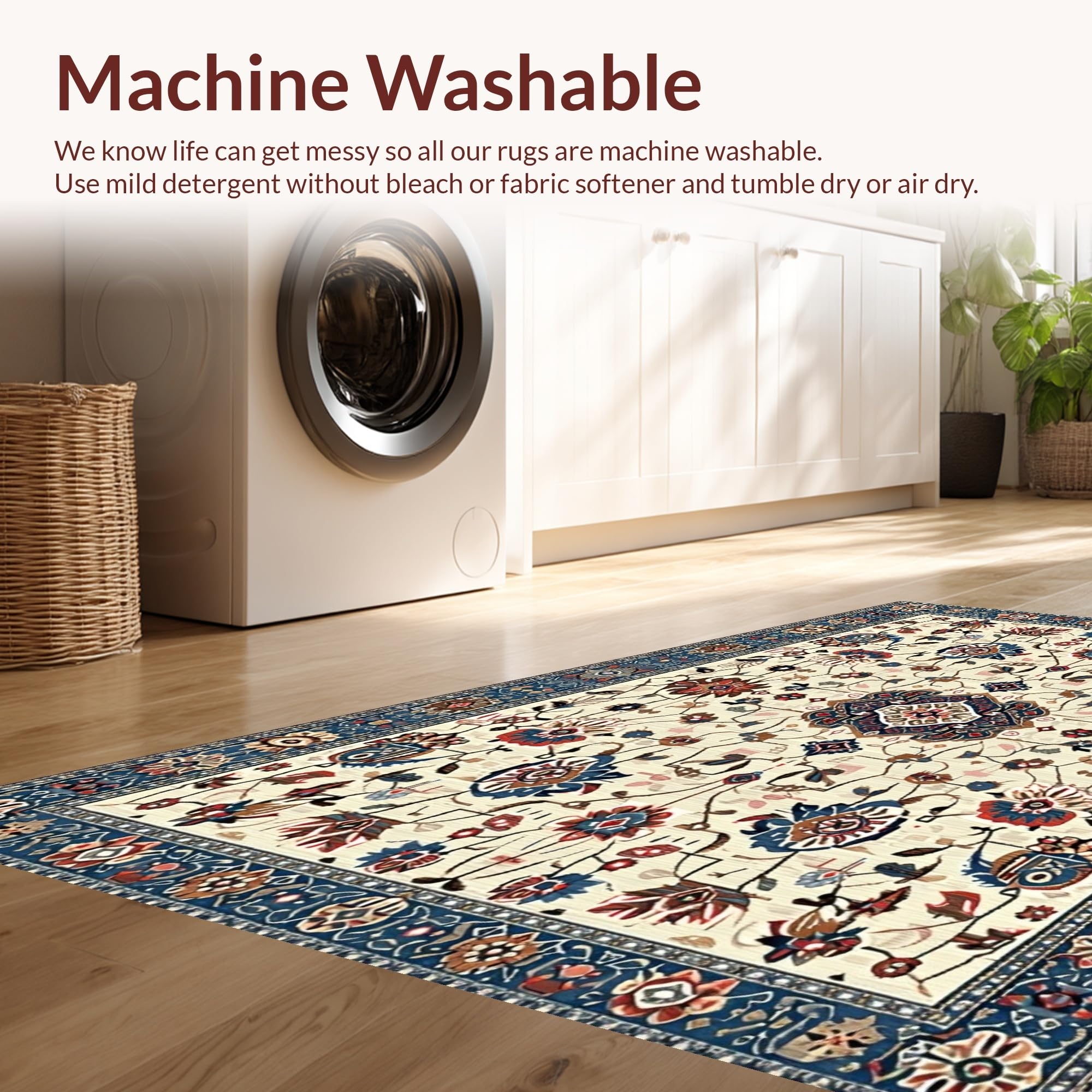 - Machine Washable: Our rugs can be easily thrown in the wash machine.
