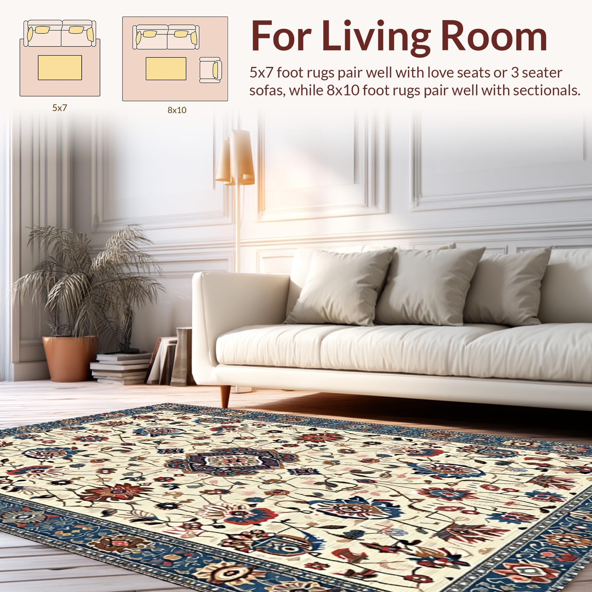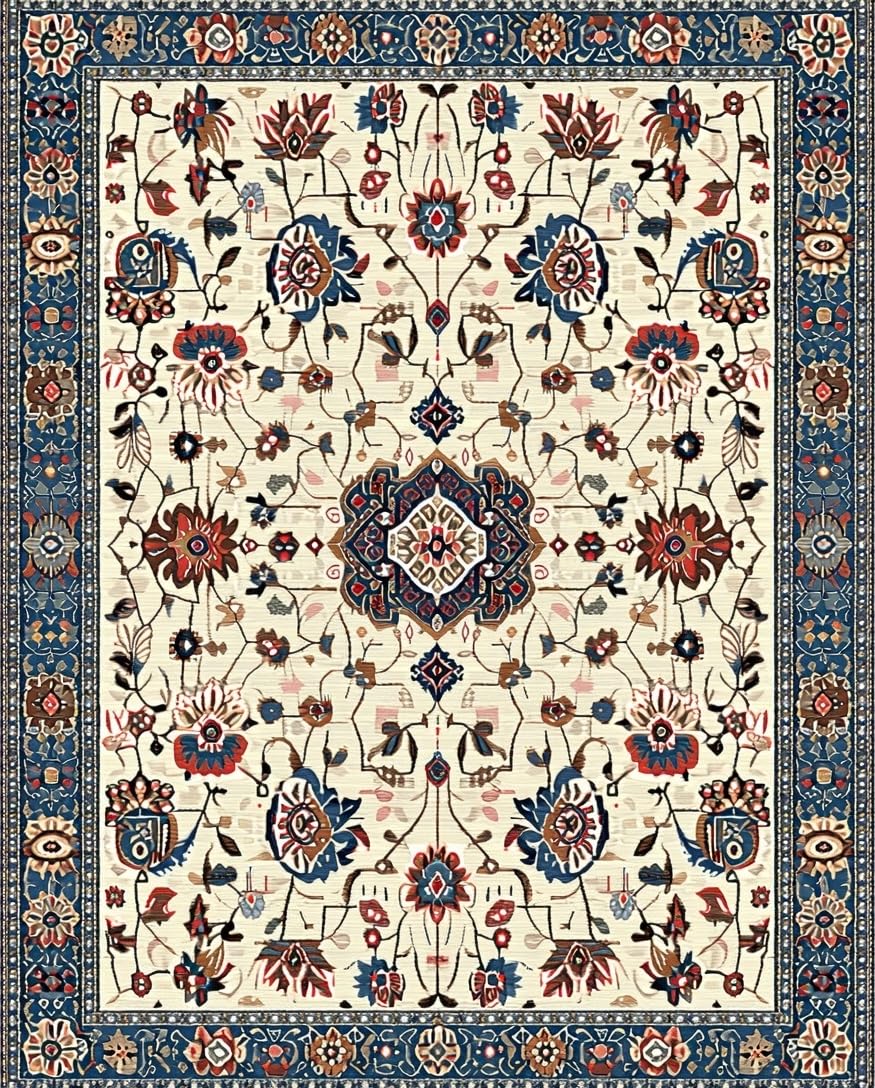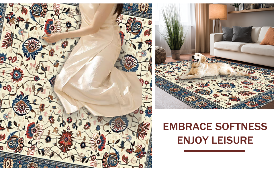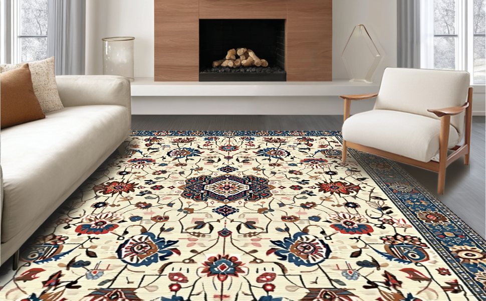 Ultra Soft Area Rug, Non Slip, Stain Resistant, Washable Area Rugs for Living Room, Bedroom, Chic Earthy Floral Motif(Beige) Overview: