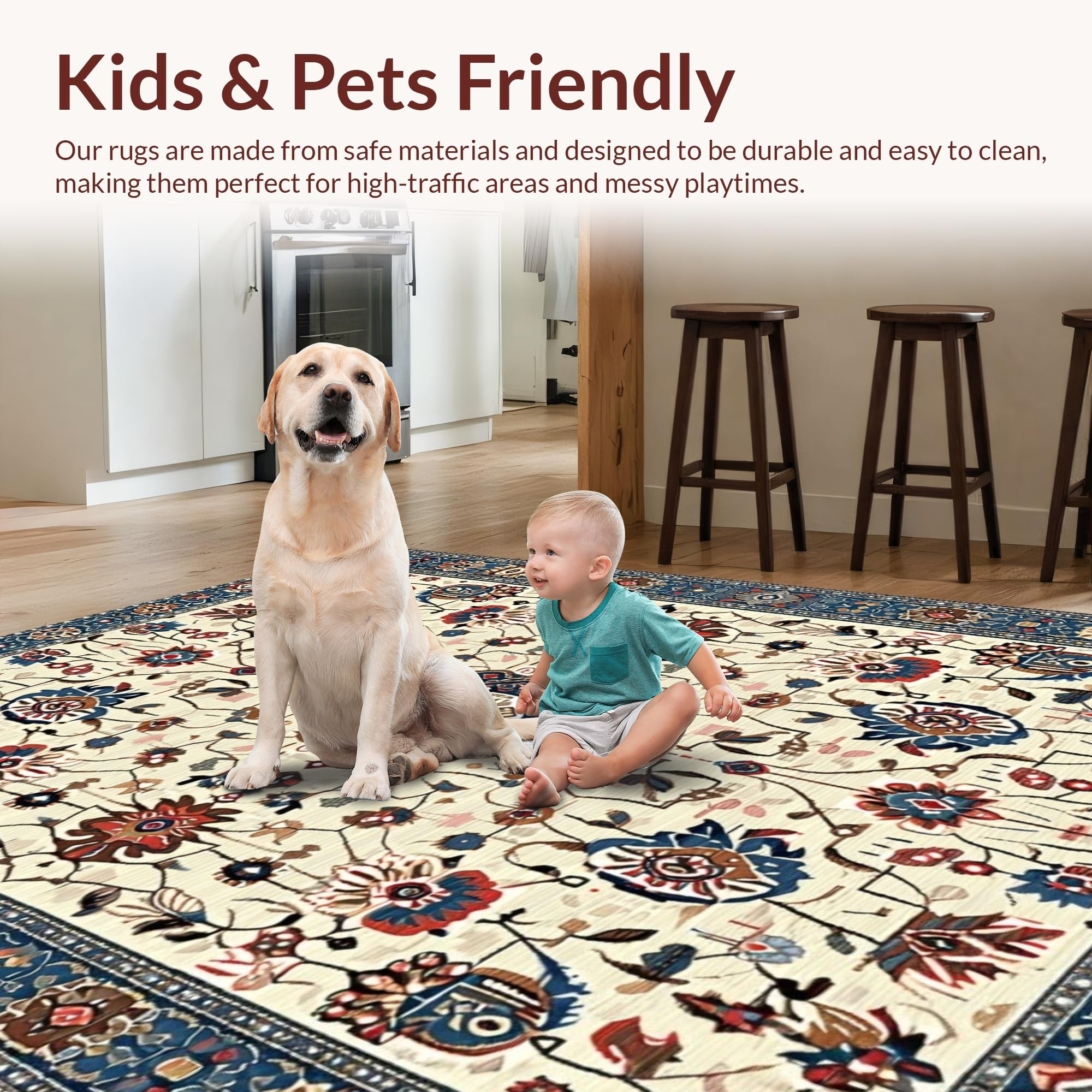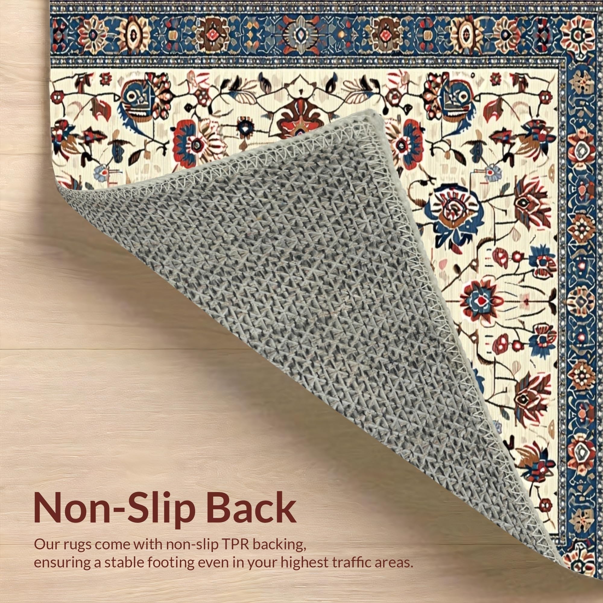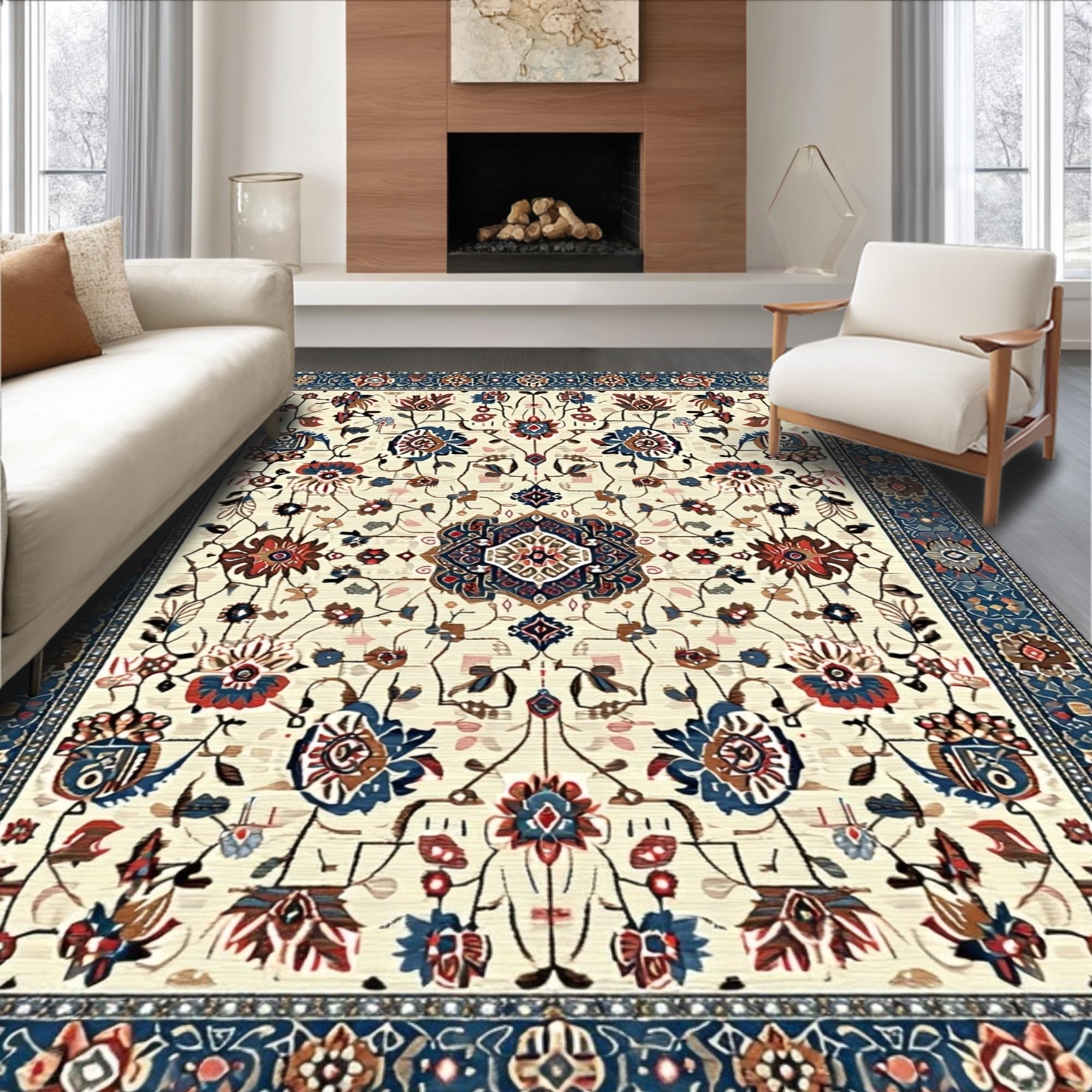 Ultra Soft Area Rug, Non Slip, Stain Resistant, Washable Area Rugs for Living Room, Bedroom, Chic Earthy Floral Motif(Beige) Overview: