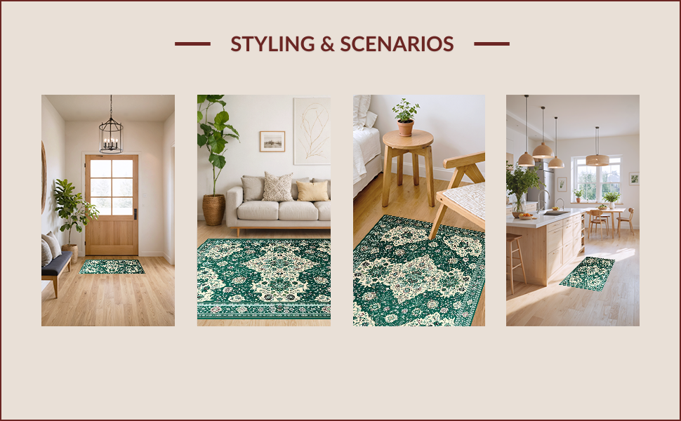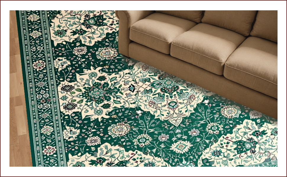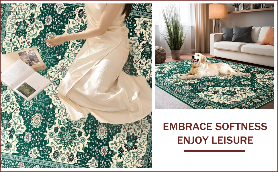 Ultra Soft Area Rug, Non Slip, Stain Resistant, Washable Area Rugs for Living Room, Bedroom, Chic Earthy Geometric Motif(Green) Overview: