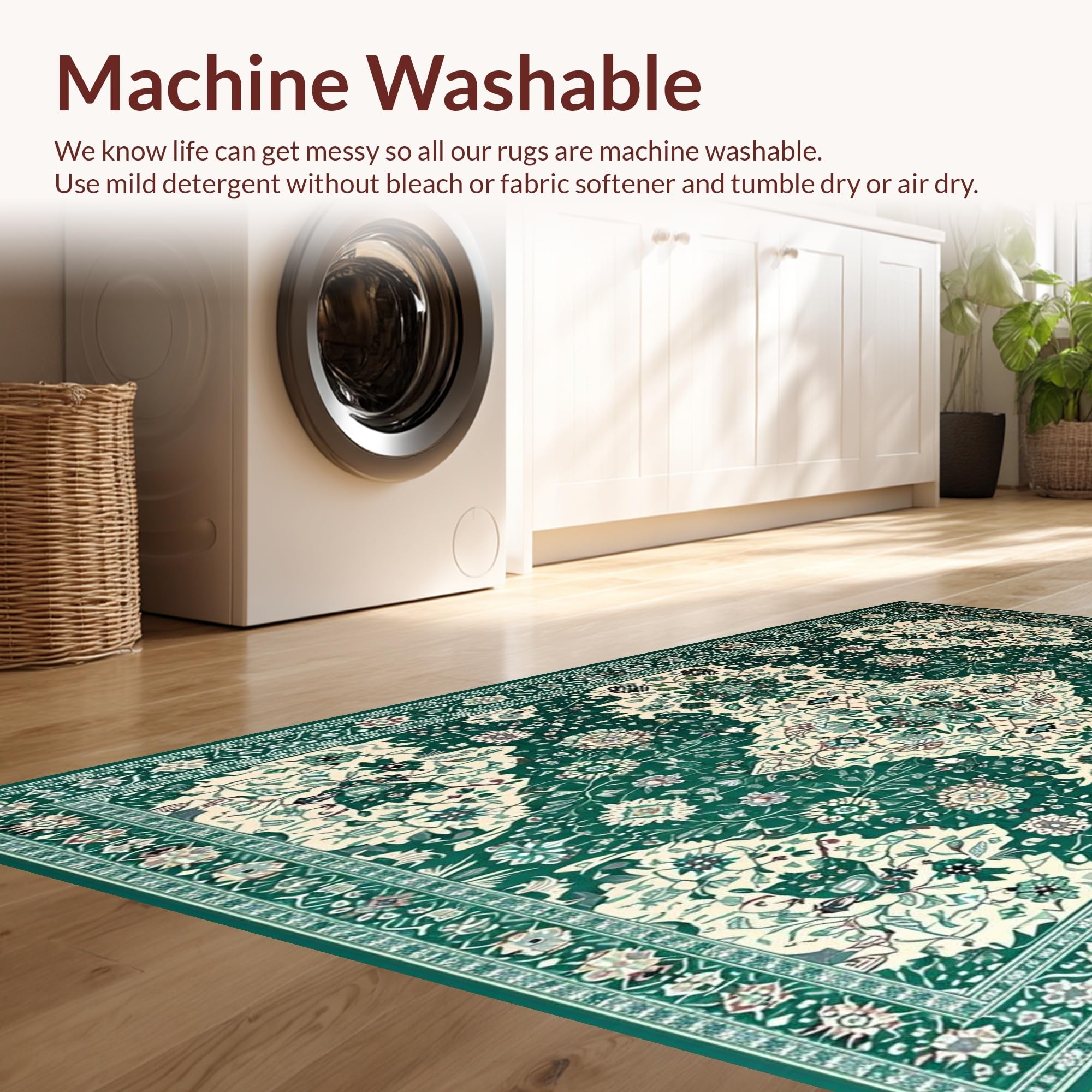 - Machine Washable: Our rugs can be easily thrown in the wash machine.