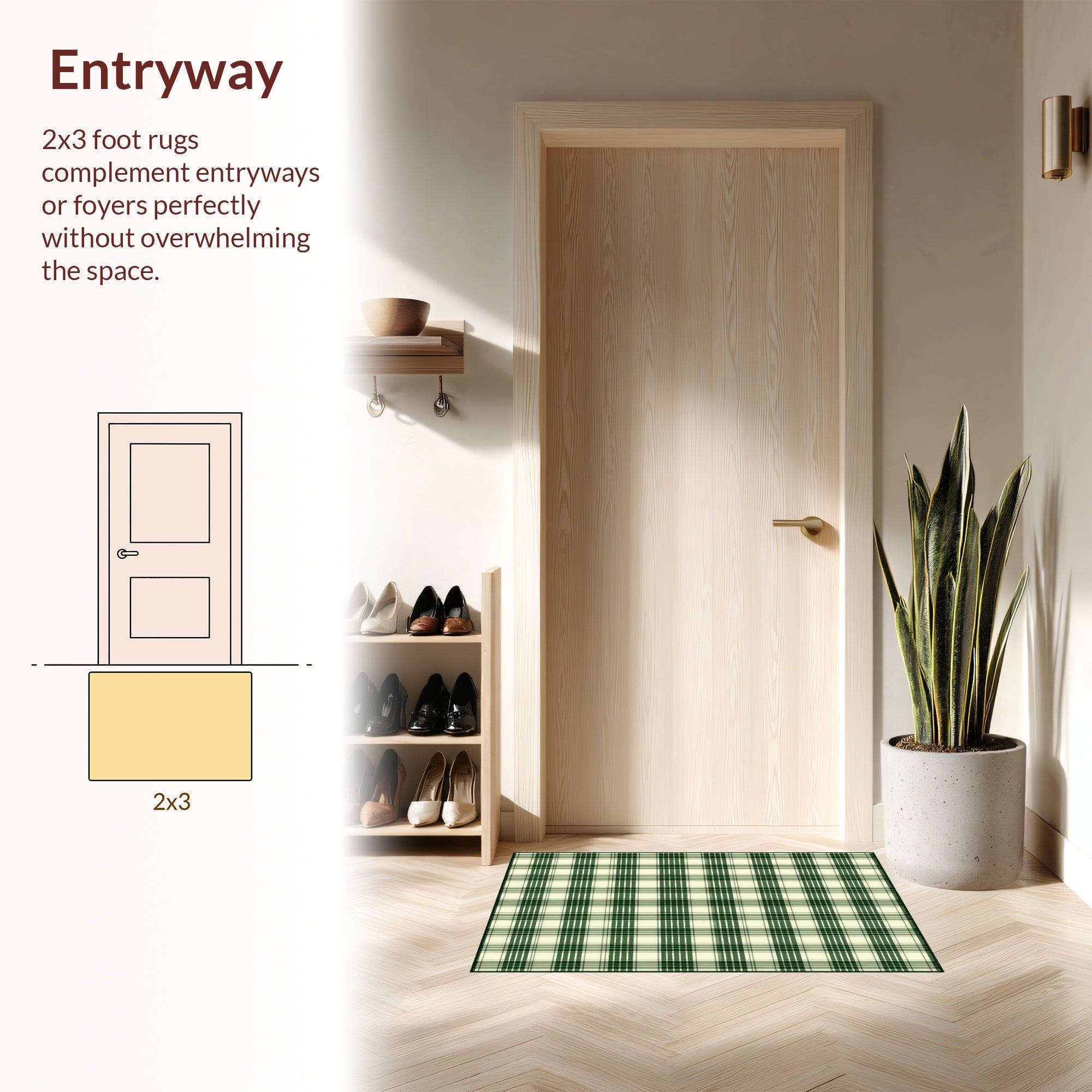 Flatwoven High Traffic Area Rug, Chic Earthy Plaid Aesthetic, Non Slip, Stain Resistant, Washable Area Rugs for Living Room, Bedroom (Beige) Overview: