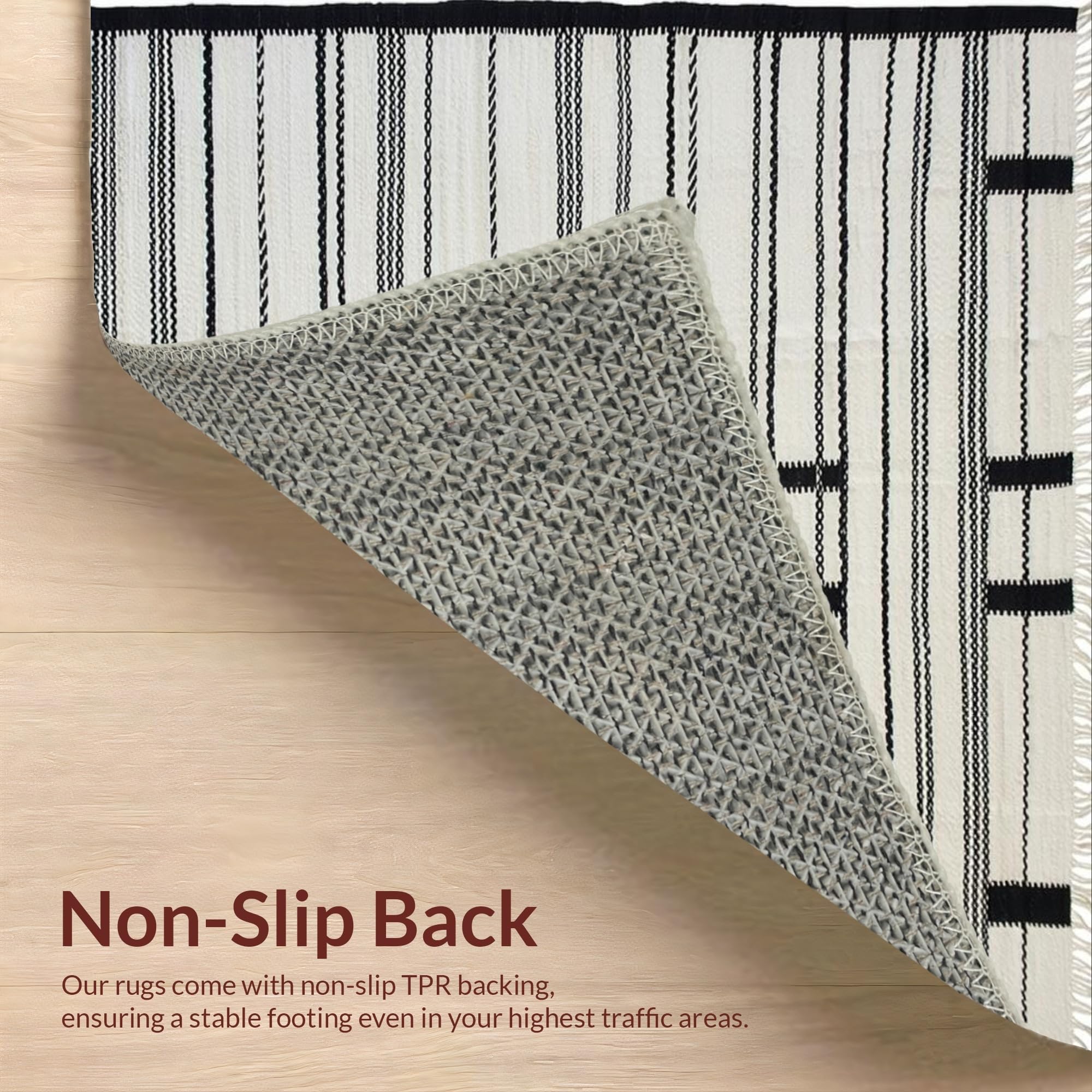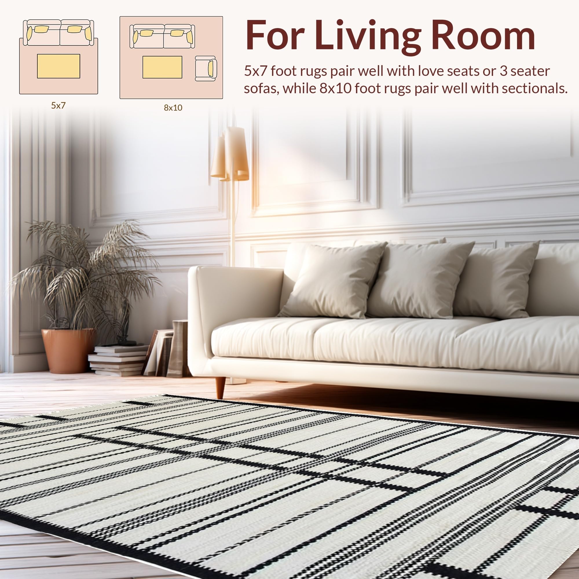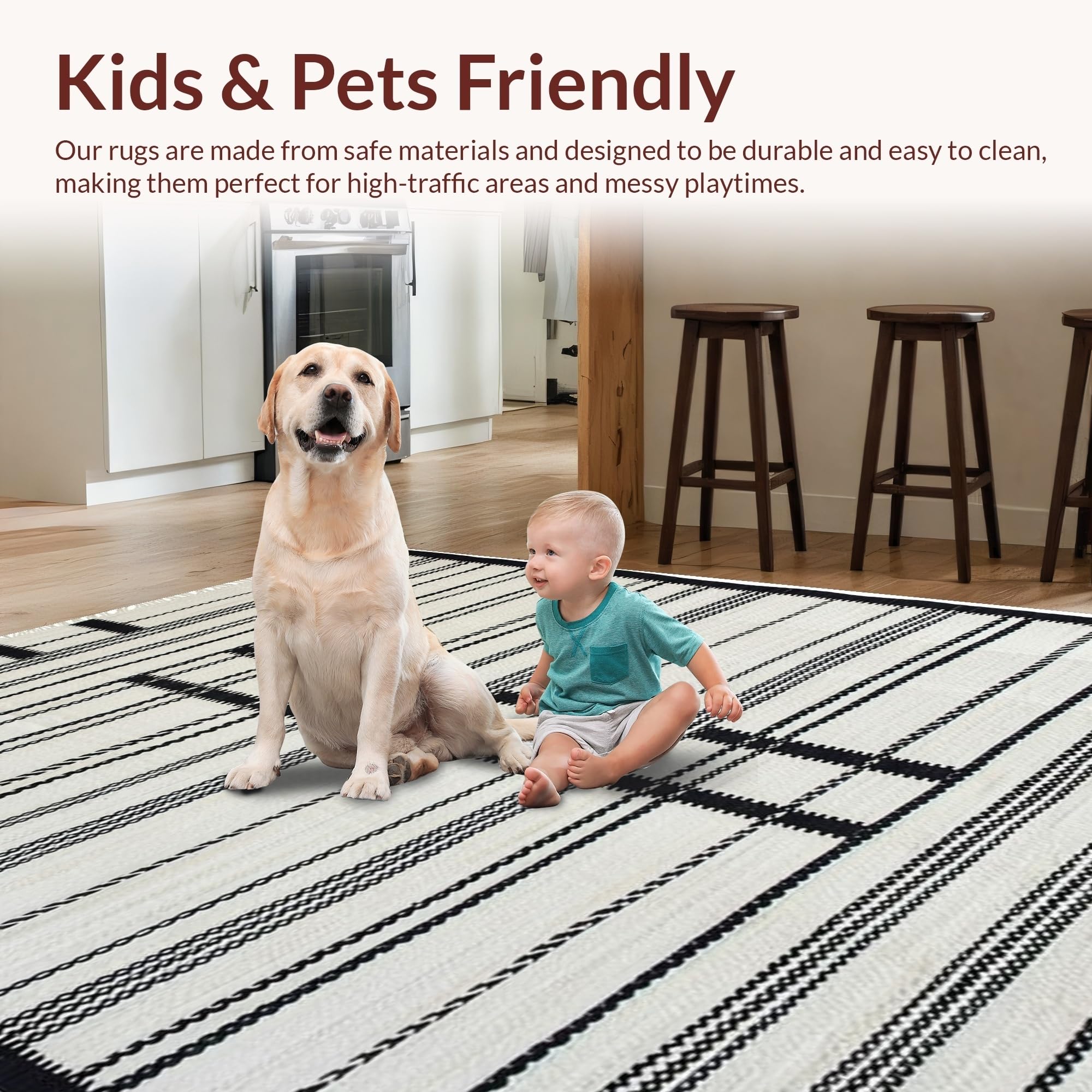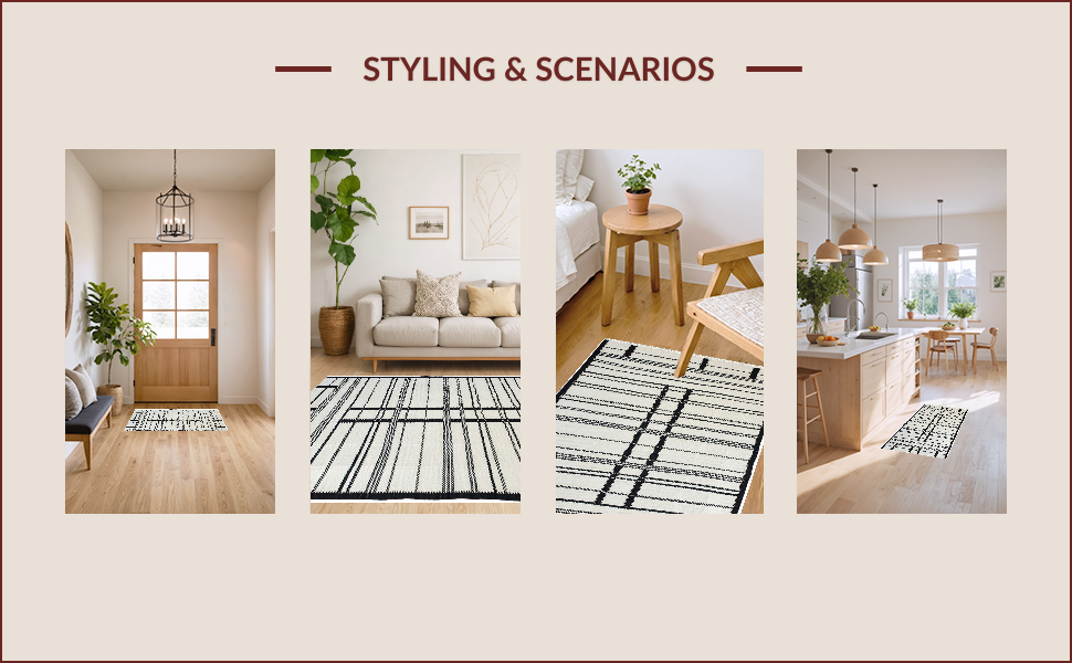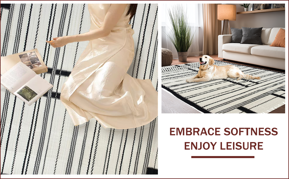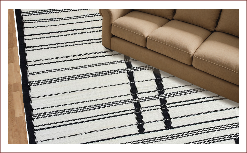 Ultra Soft Area Rug, Non Slip, Stain Resistant, Washable Area Rugs for Living Room, Bedroom, Chic Earthy Striped Motif(Black) Overview: