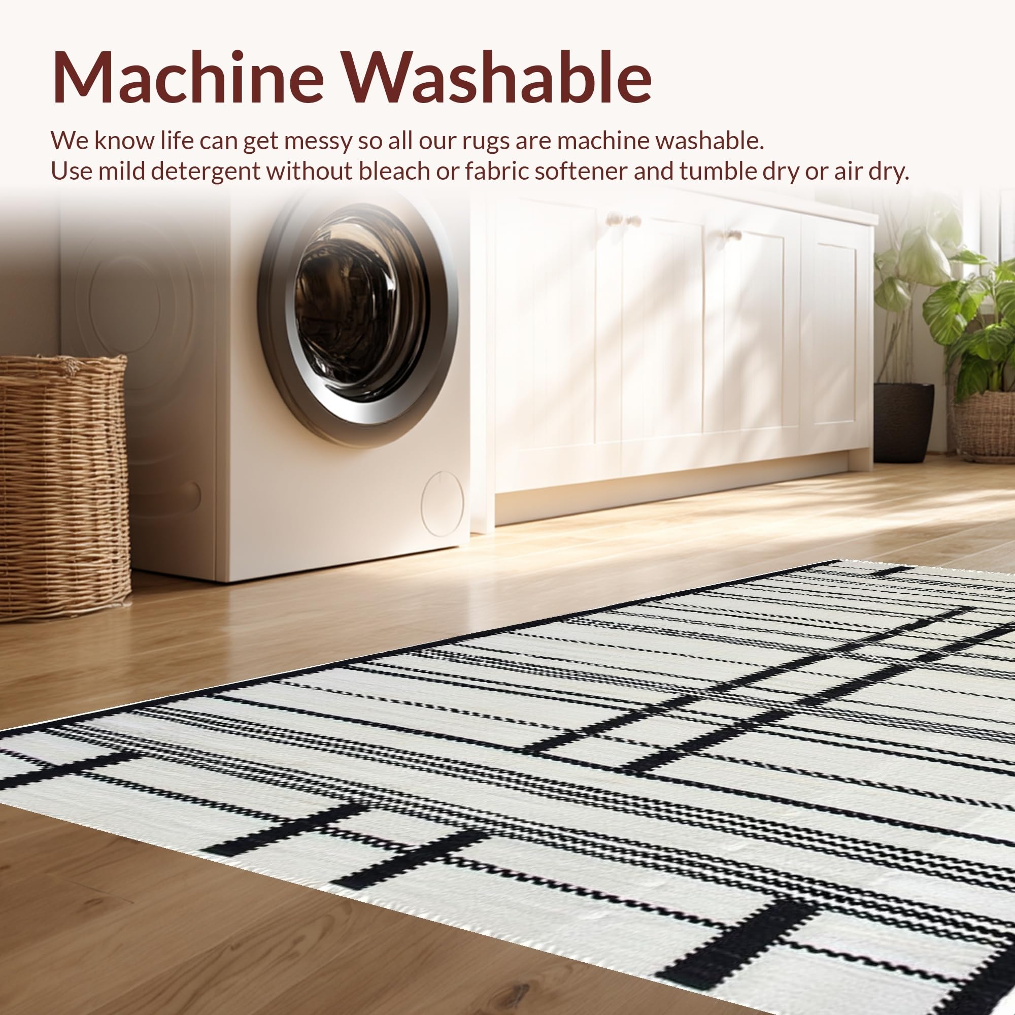 - Machine Washable: Our rugs can be easily thrown in the wash machine.