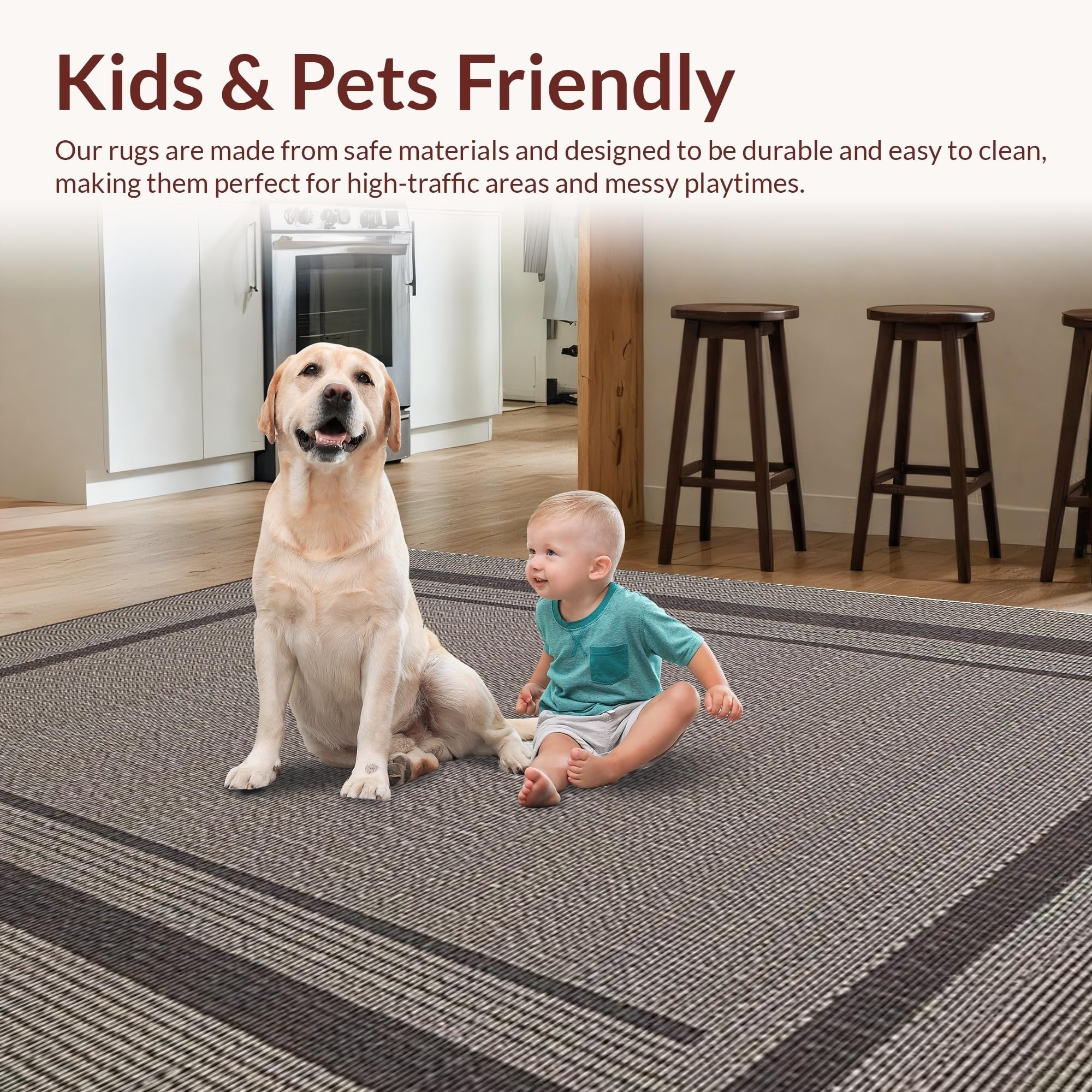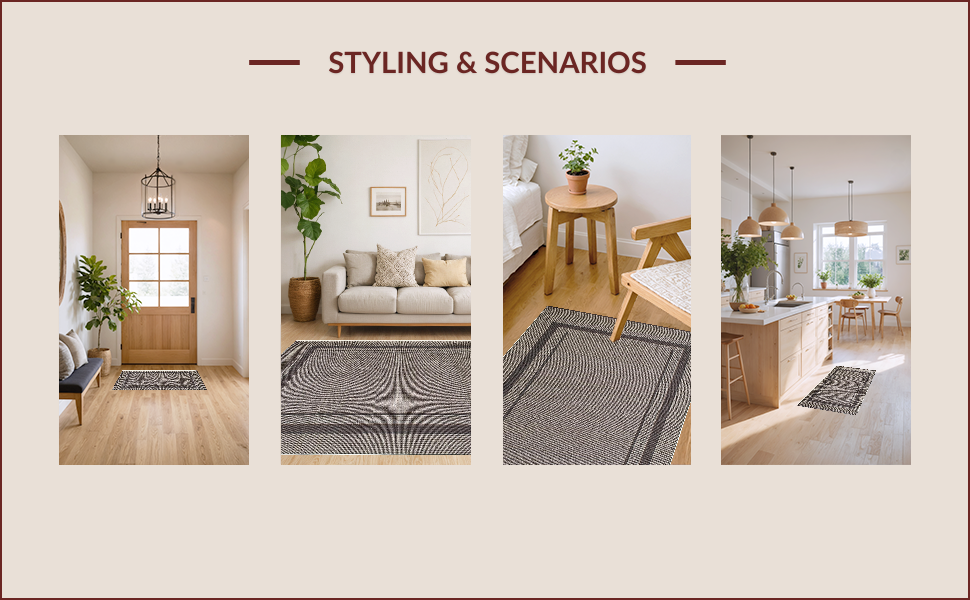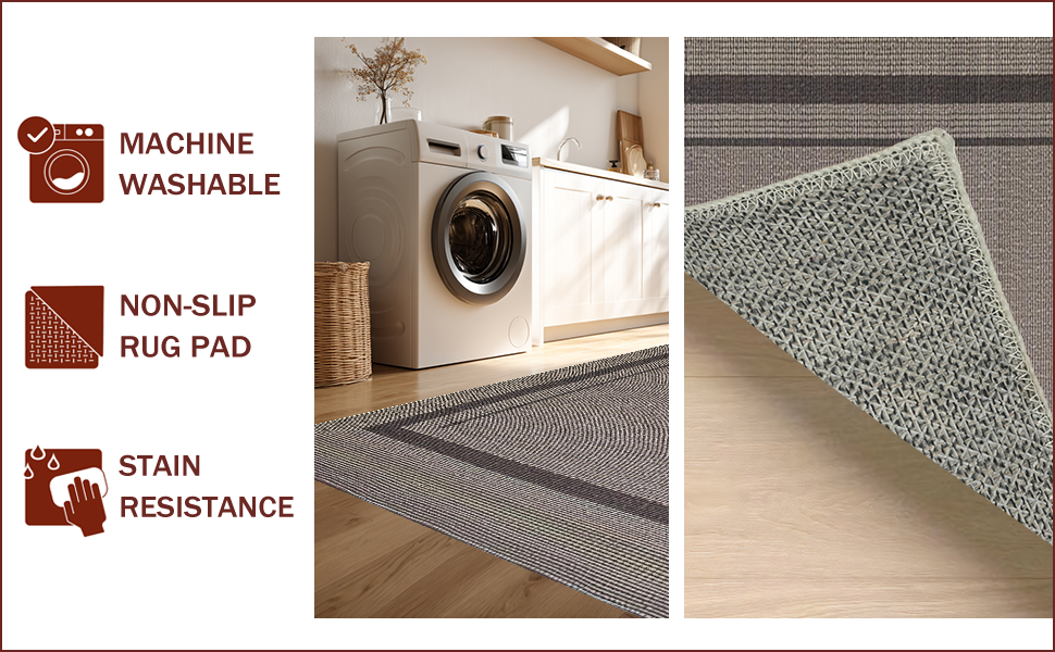 Ultra Soft Area Rug, Non Slip, Stain Resistant, Washable Area Rugs for Living Room, Bedroom, Chic Earthy Tone Woven Aesthetic(Gray) Overview: