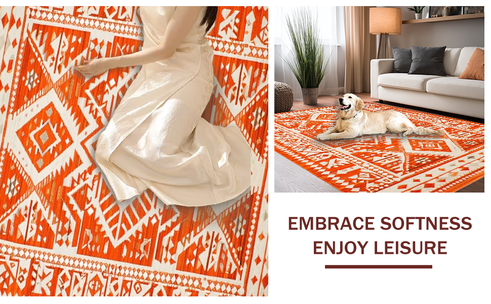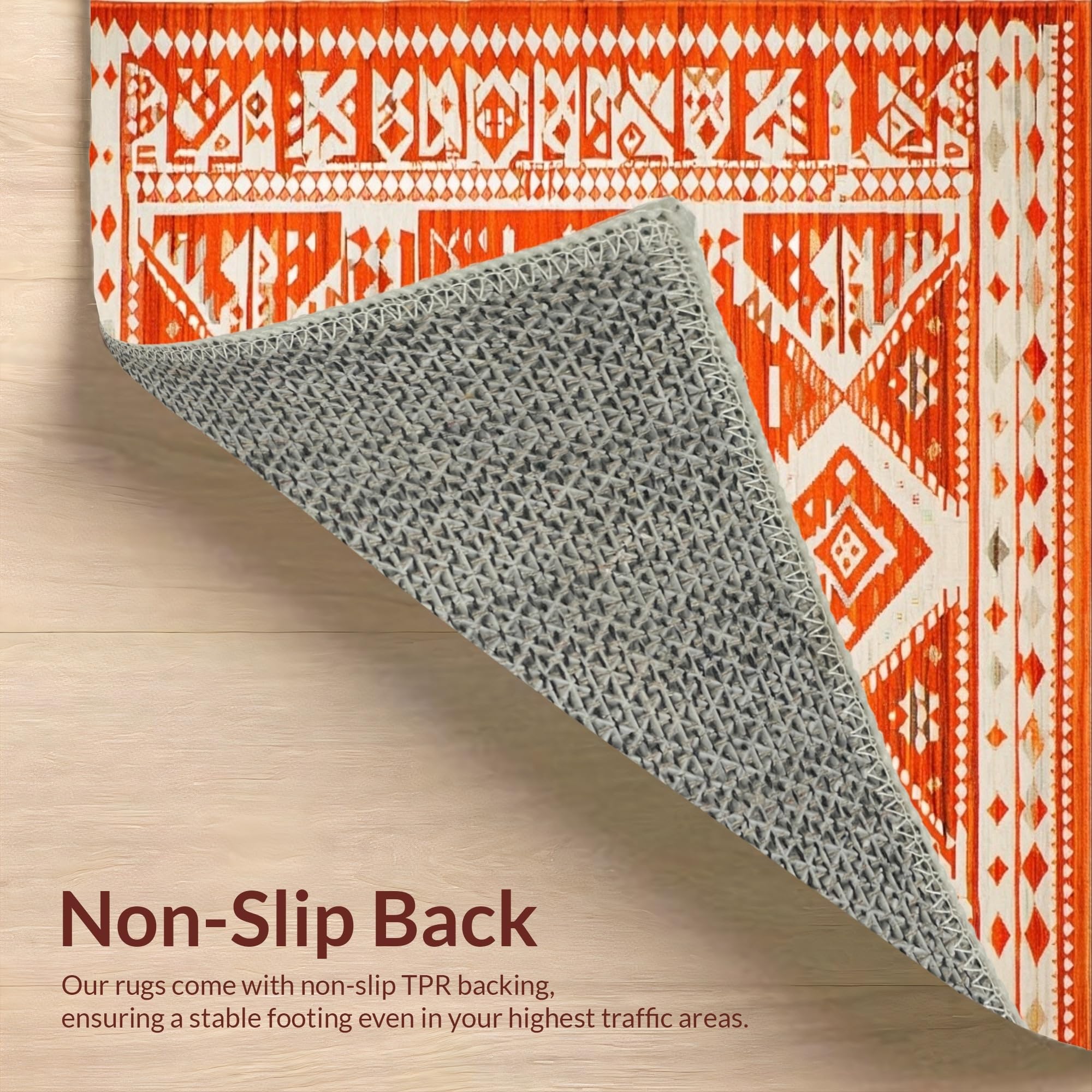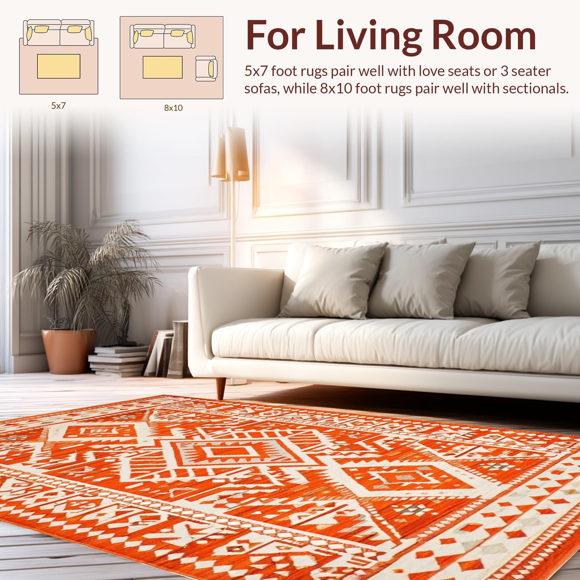Ultra Soft Area Rug, Non Slip, Stain Resistant, Washable Area Rugs for Living Room, Bedroom, Chic Earthy Toned Swirl Aesthetics(Orange) Overview: