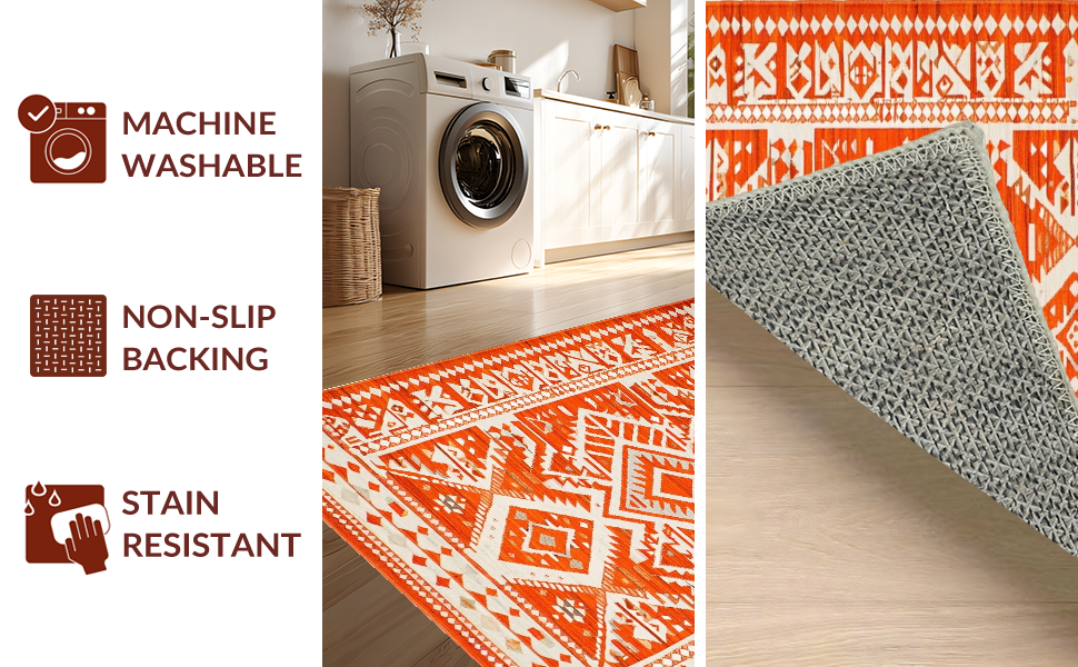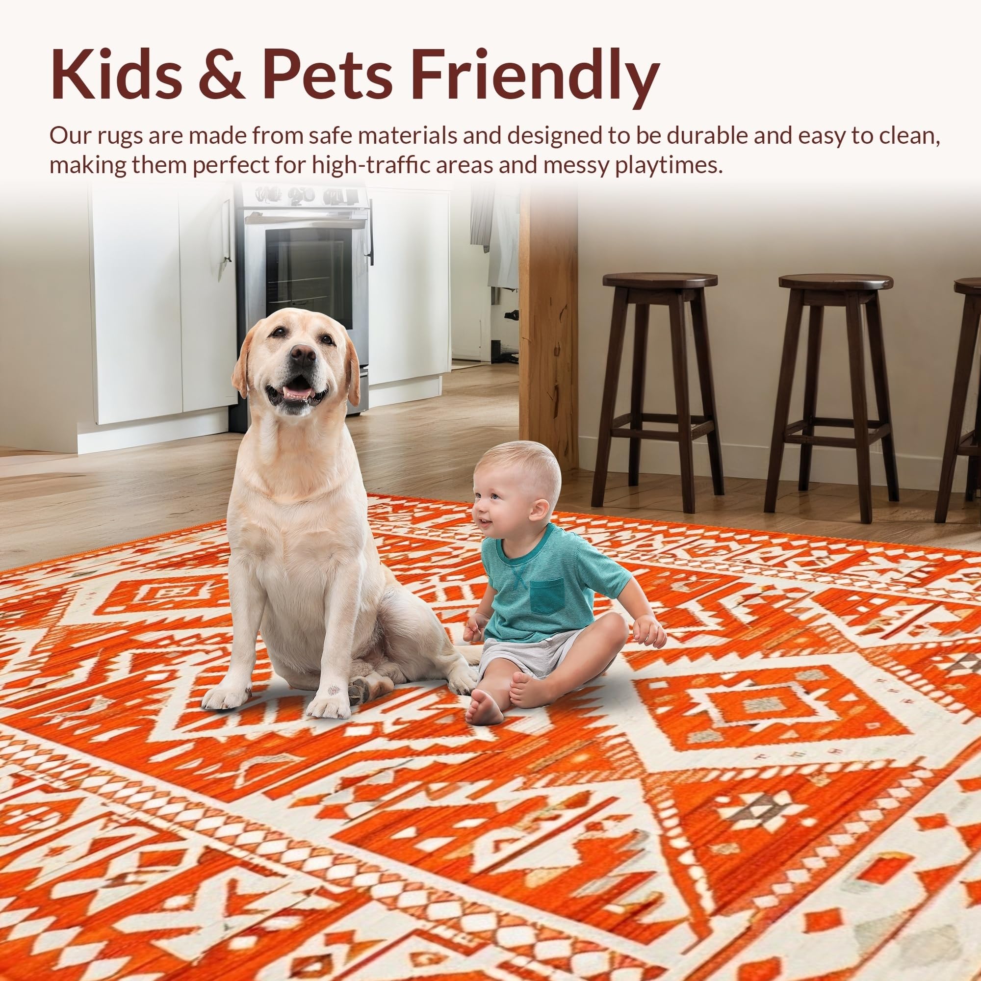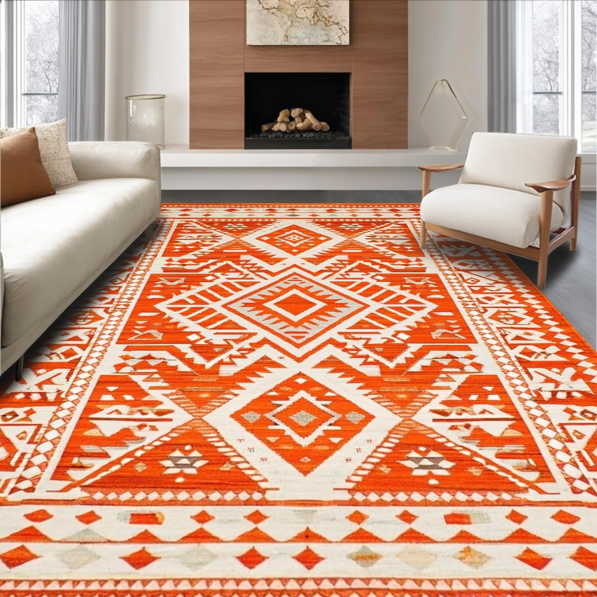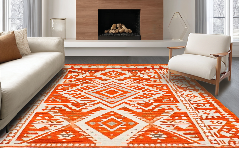 Ultra Soft Area Rug, Non Slip, Stain Resistant, Washable Area Rugs for Living Room, Bedroom, Chic Earthy Toned Swirl Aesthetics(Orange) Overview: