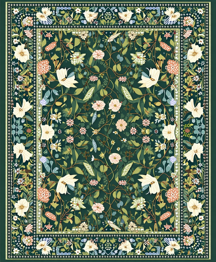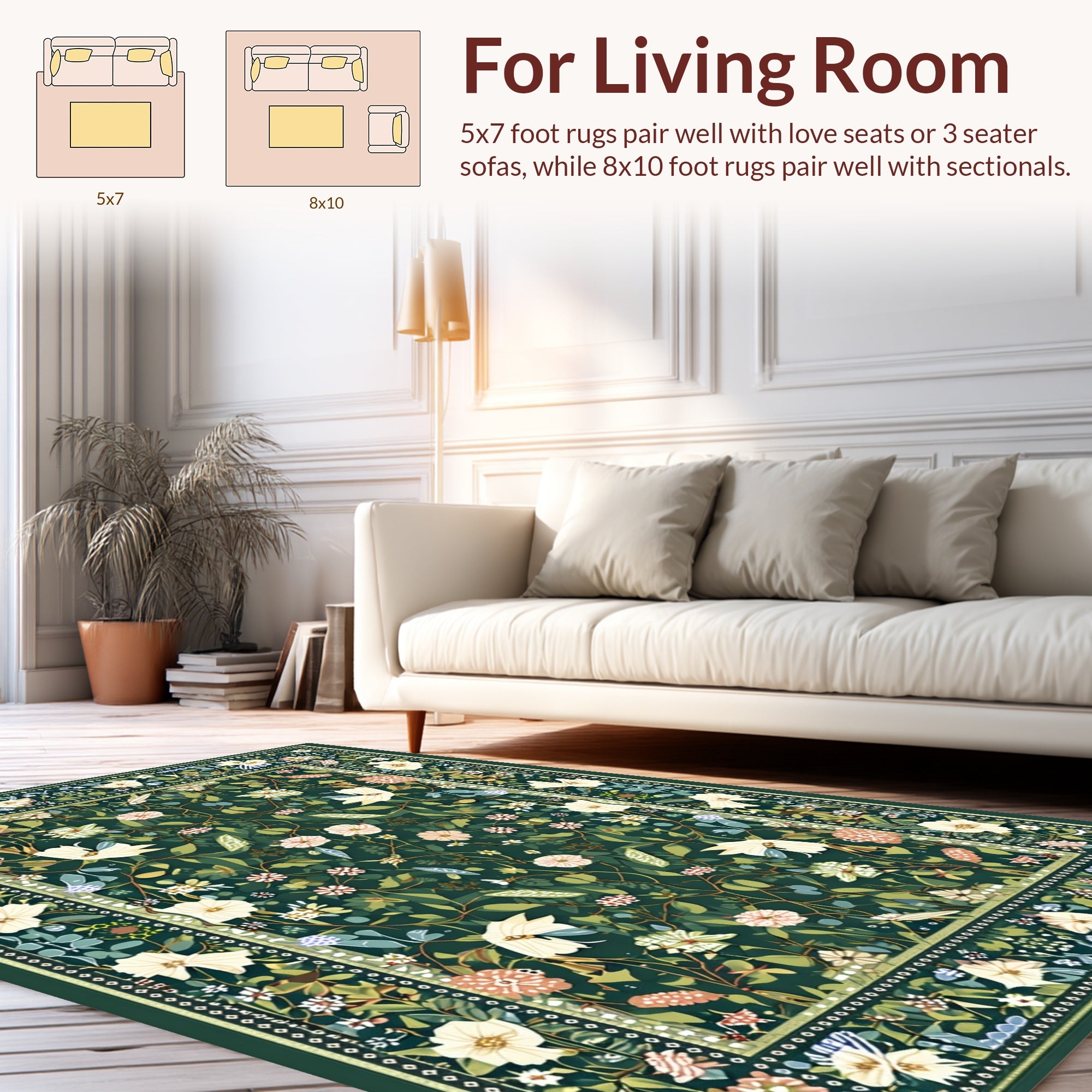 Flatwoven High Traffic Area Rug, Chic Earthy Tones with Butterflies, Non Slip, Stain Resistant, Washable Area Rugs for Living Room, Bedroom (Green) Overview: