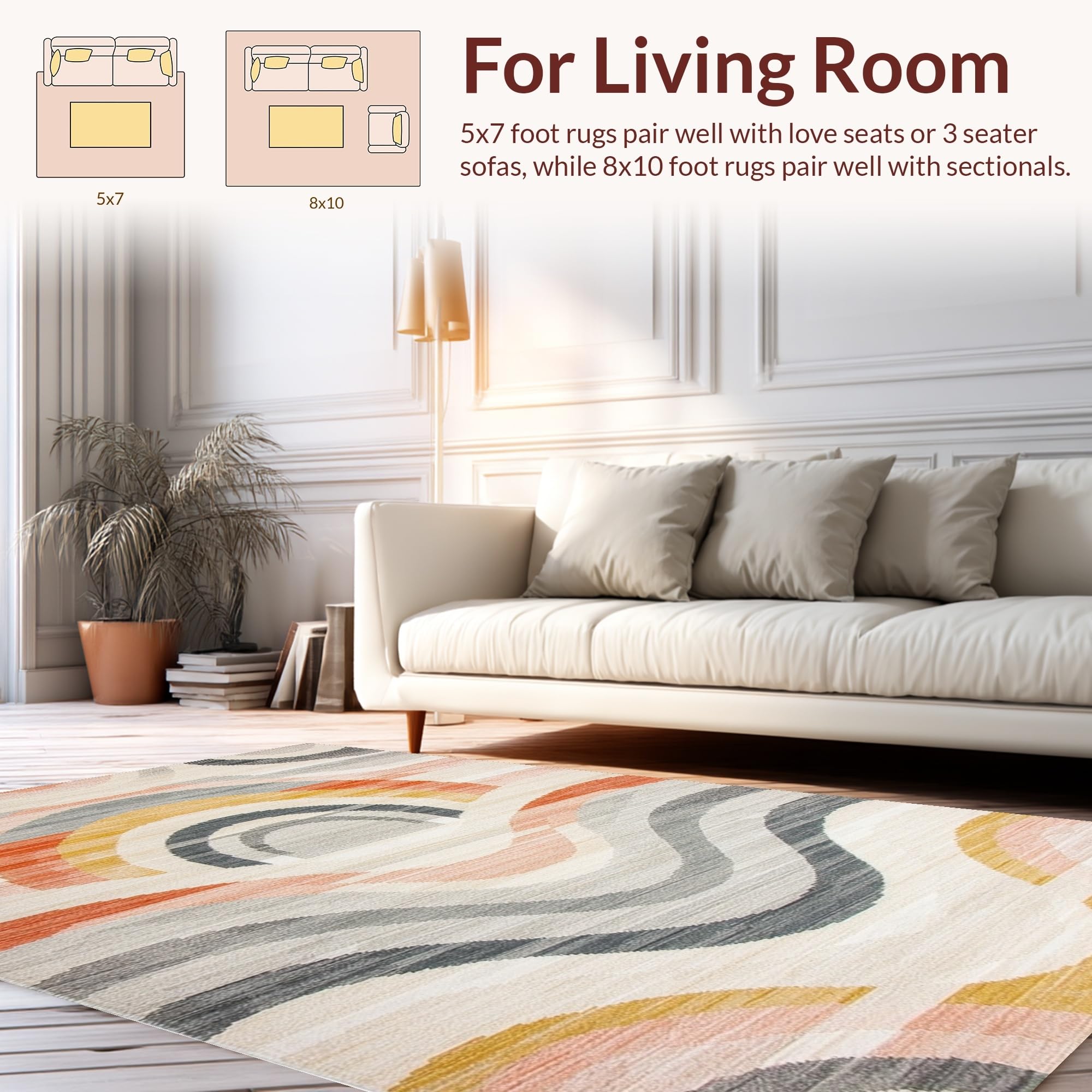 Ultra Soft Area Rug, Non Slip, Stain Resistant, Washable Area Rugs for Living Room, Bedroom, Chic Earthy Tribal Patterns(Beige) Overview: