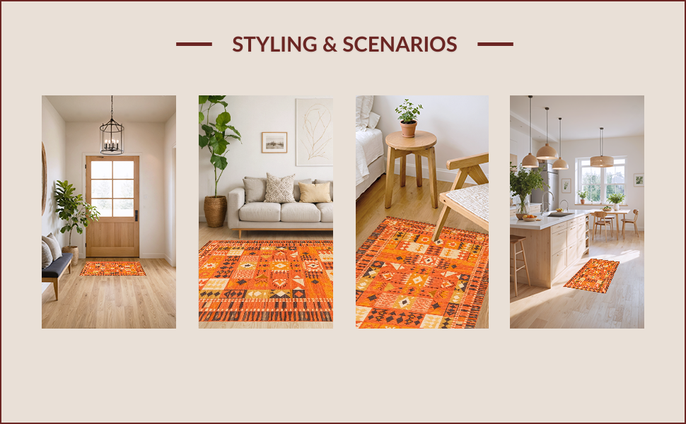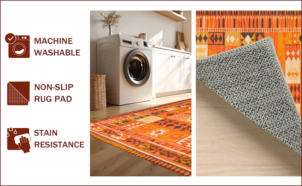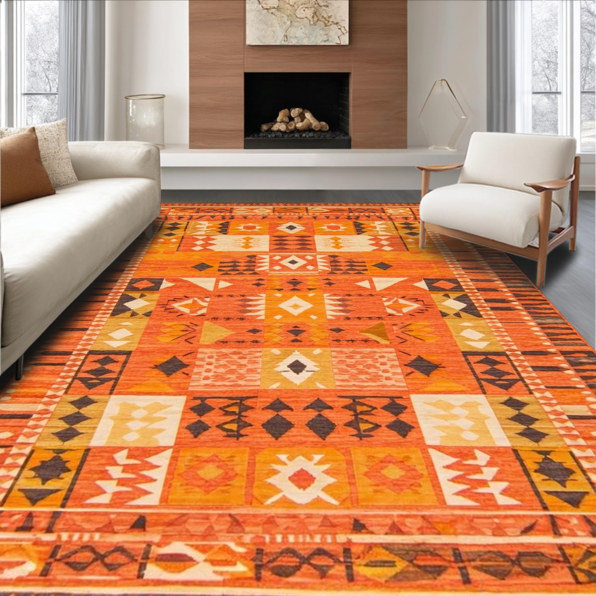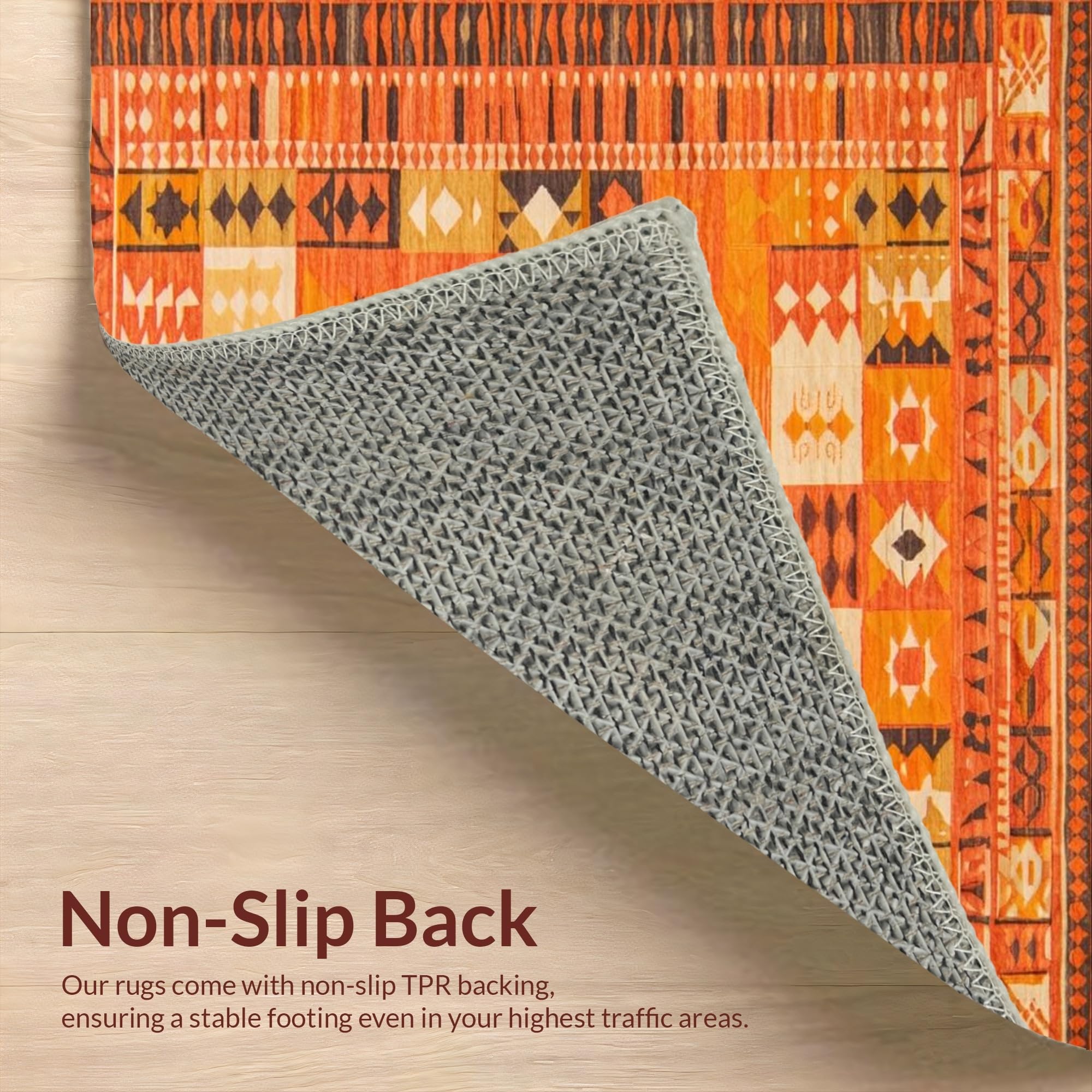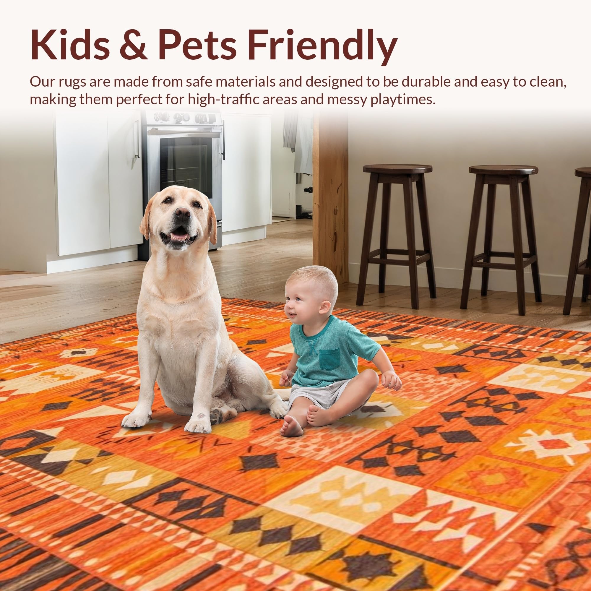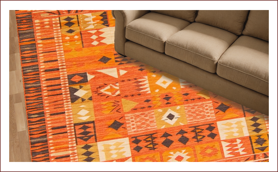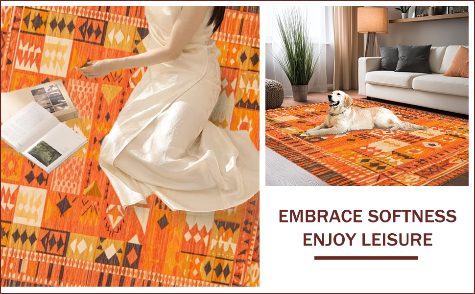 Ultra Soft Area Rug, Non Slip, Stain Resistant, Washable Area Rugs for Living Room, Bedroom, Chic Fringed Contemporary Pattern(Orange) Overview: