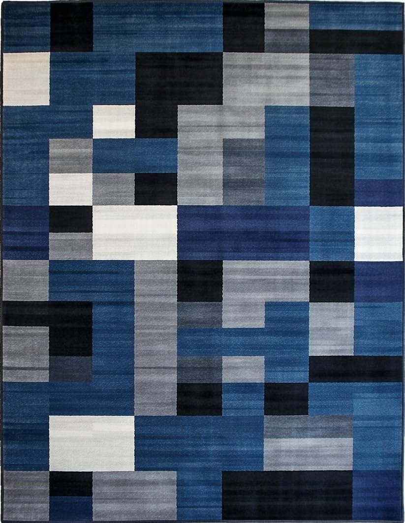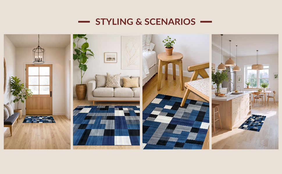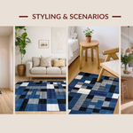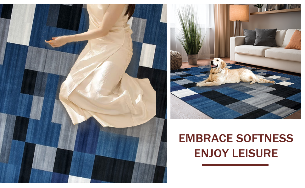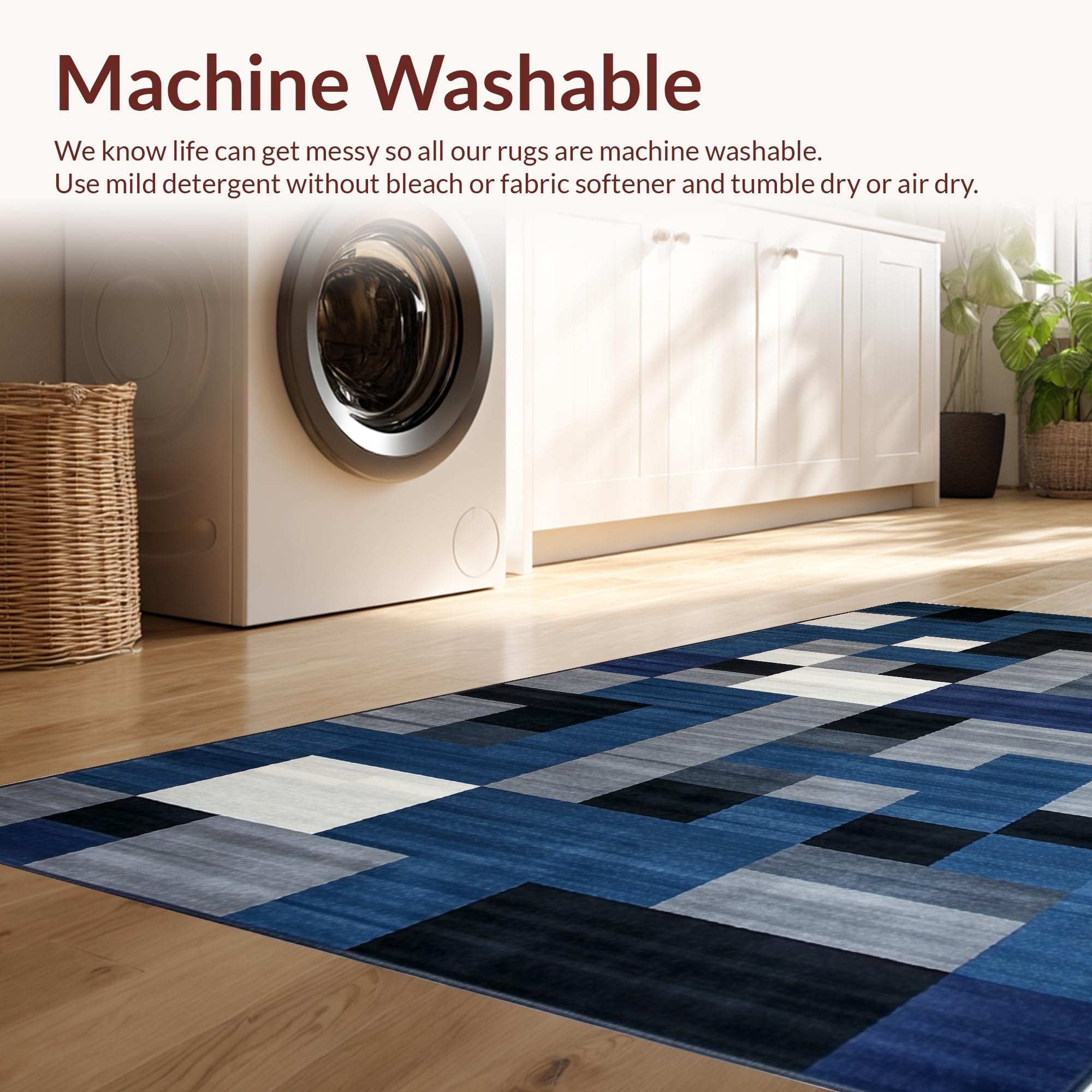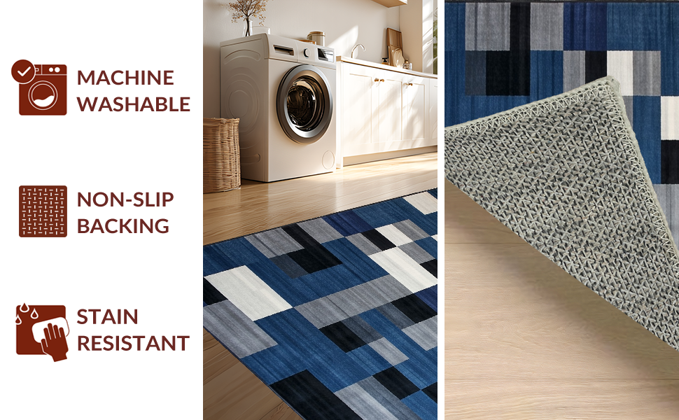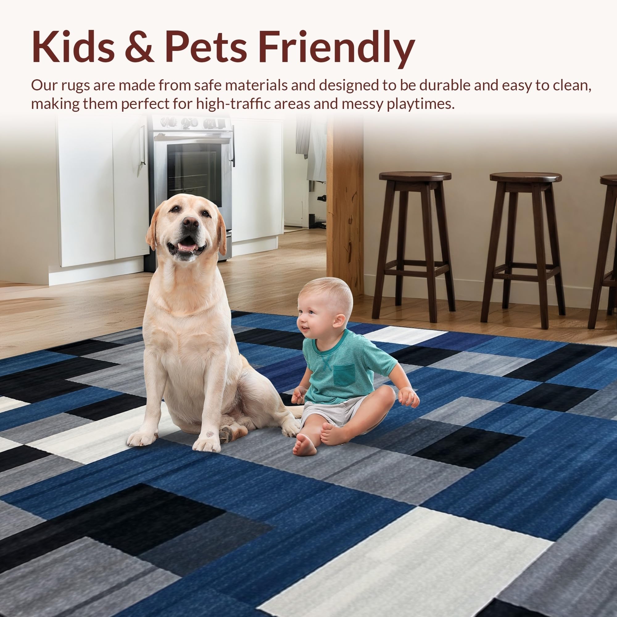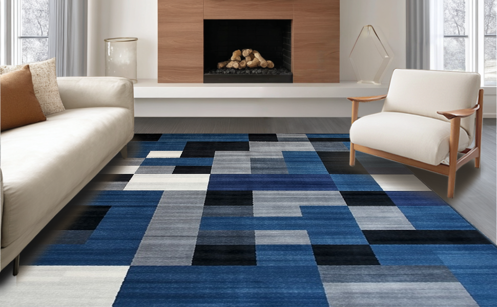 Ultra Soft Area Rug, Non Slip, Stain Resistant, Washable Area Rugs for Living Room, Bedroom, Chic Geometric Blue Gray Motif(Blue) Overview:
