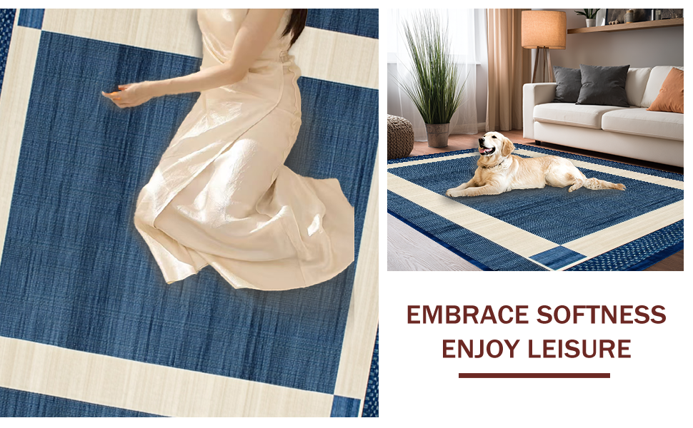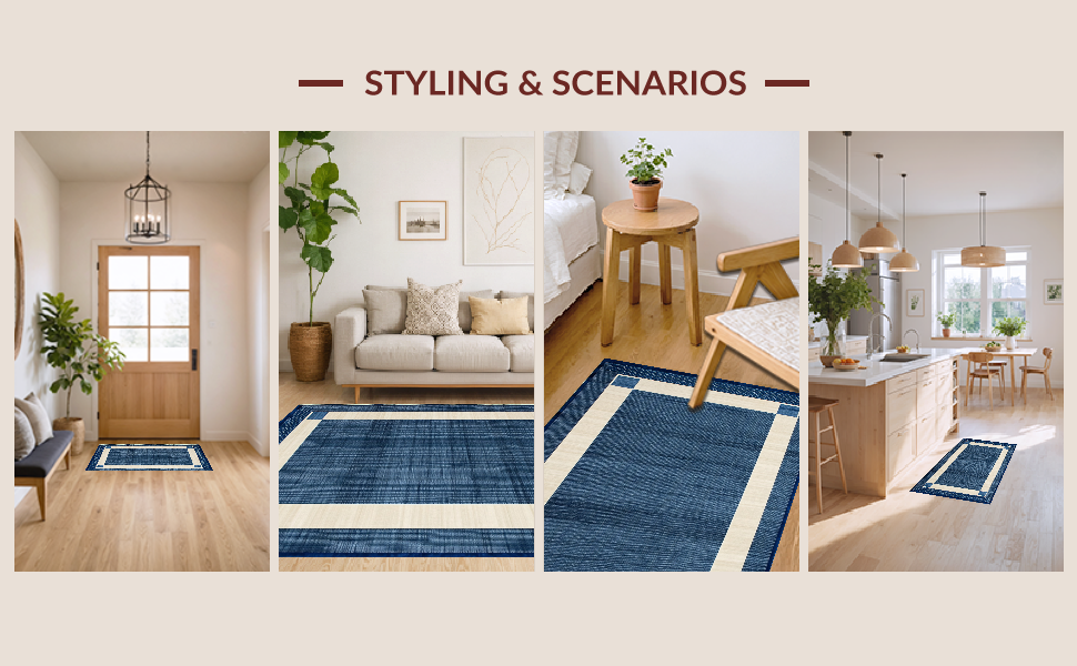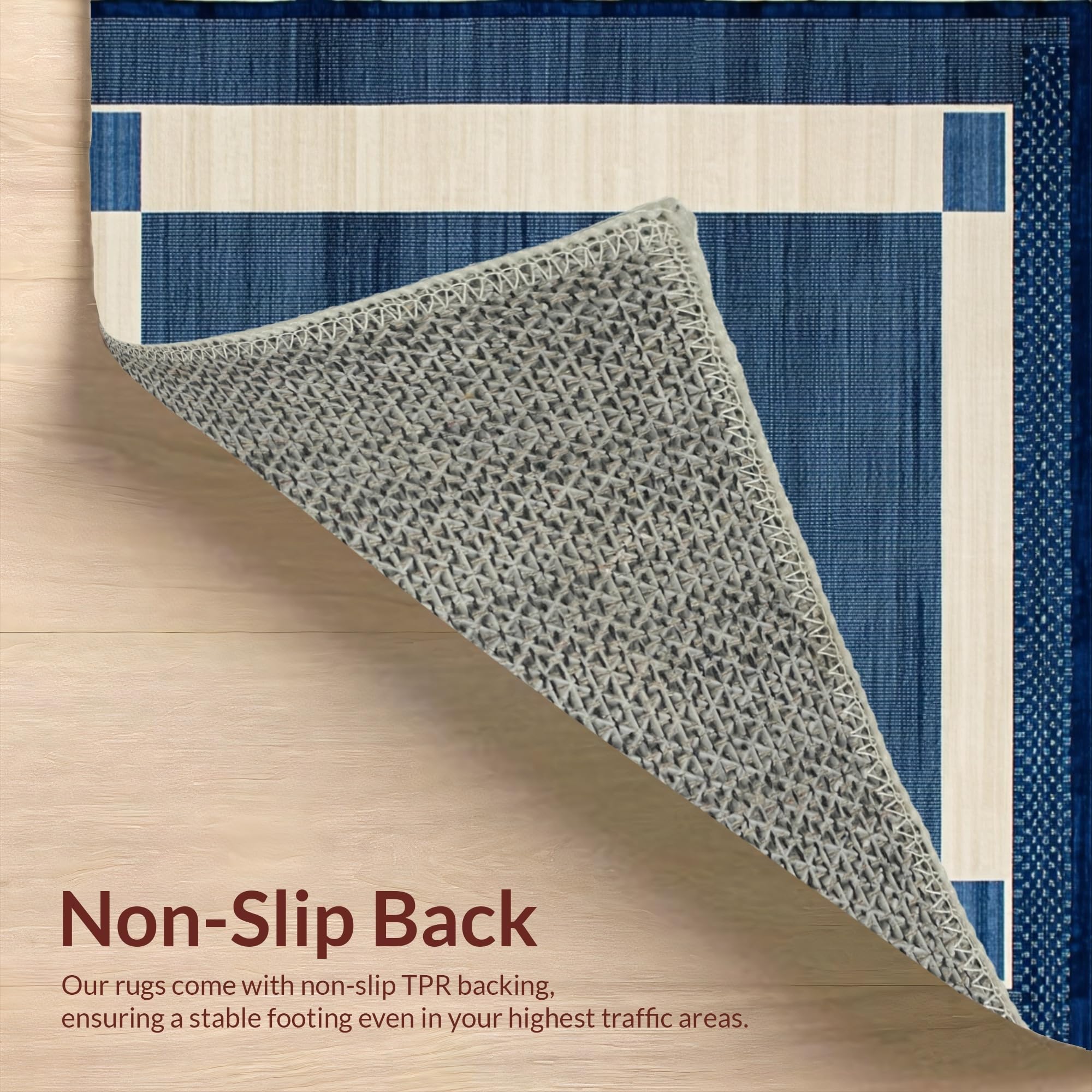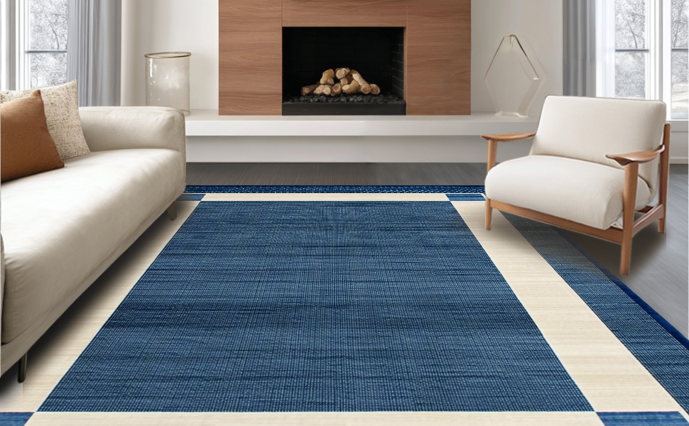 Ultra Soft Area Rug, Non Slip, Stain Resistant, Washable Area Rugs for Living Room, Bedroom, Chic Geometric Border Elegance(Blue) Overview:
