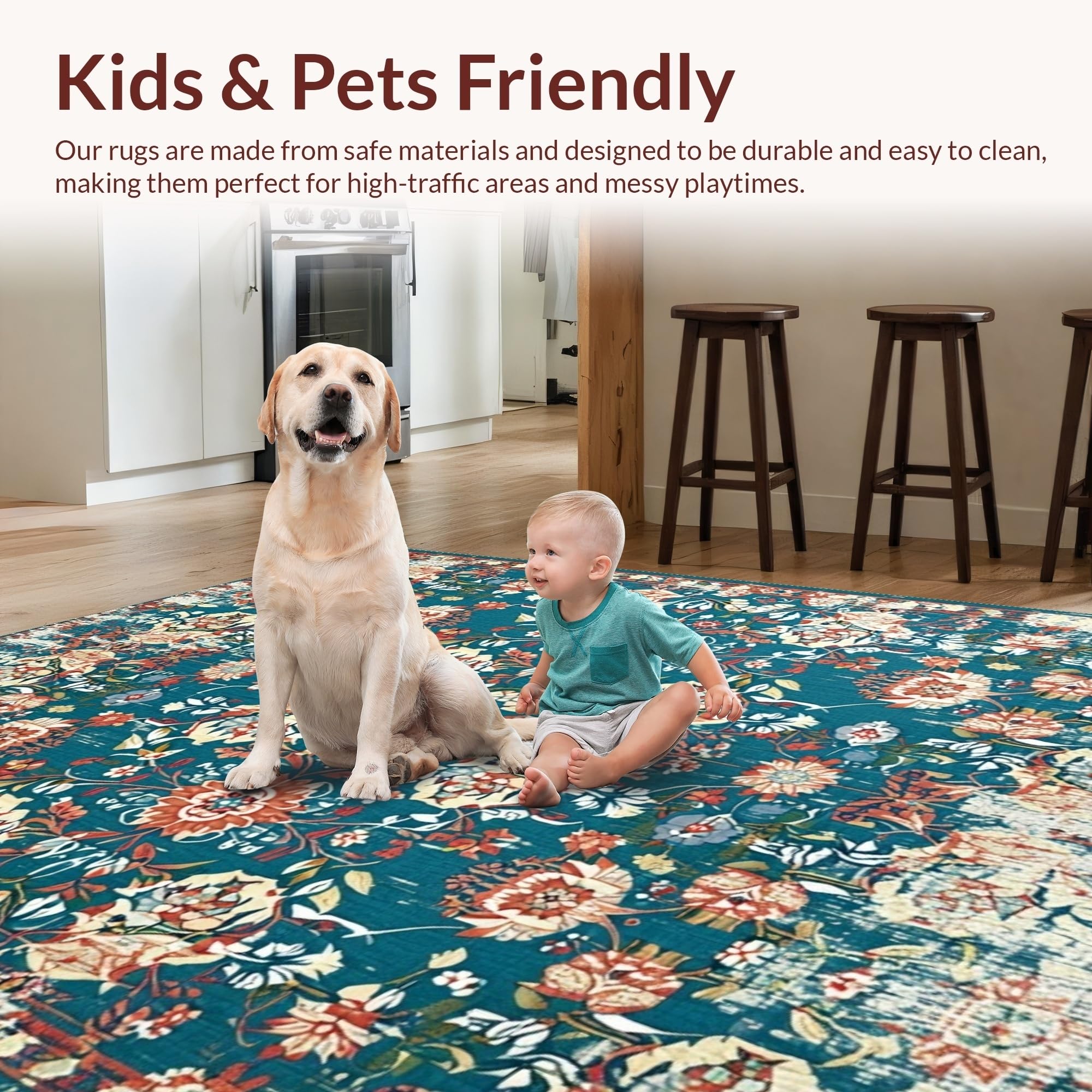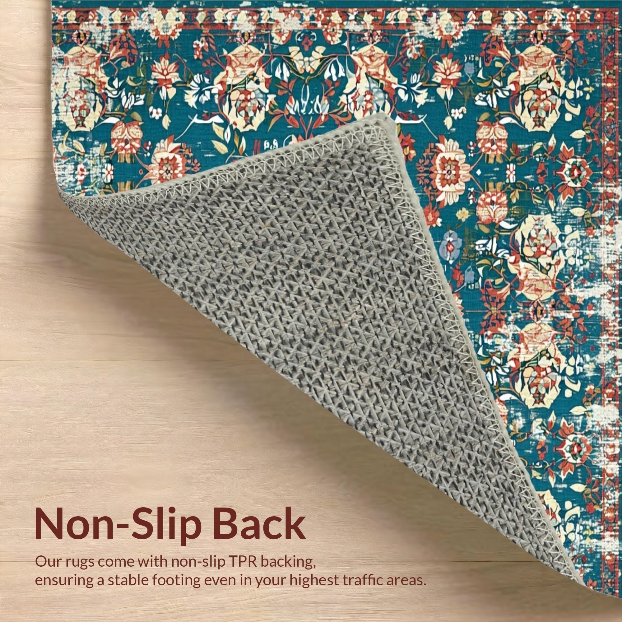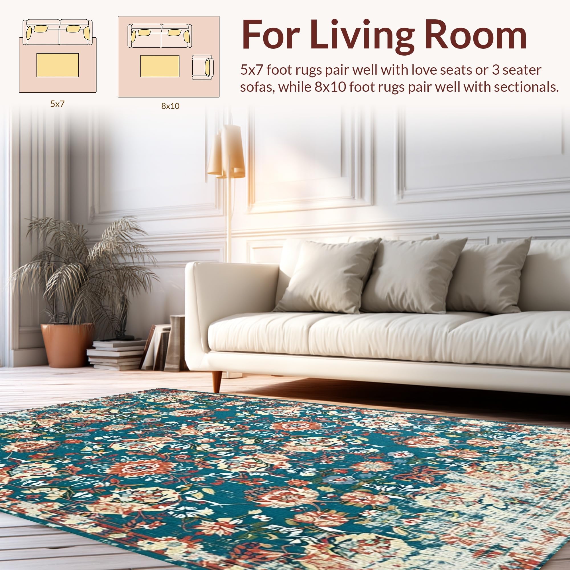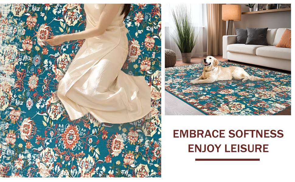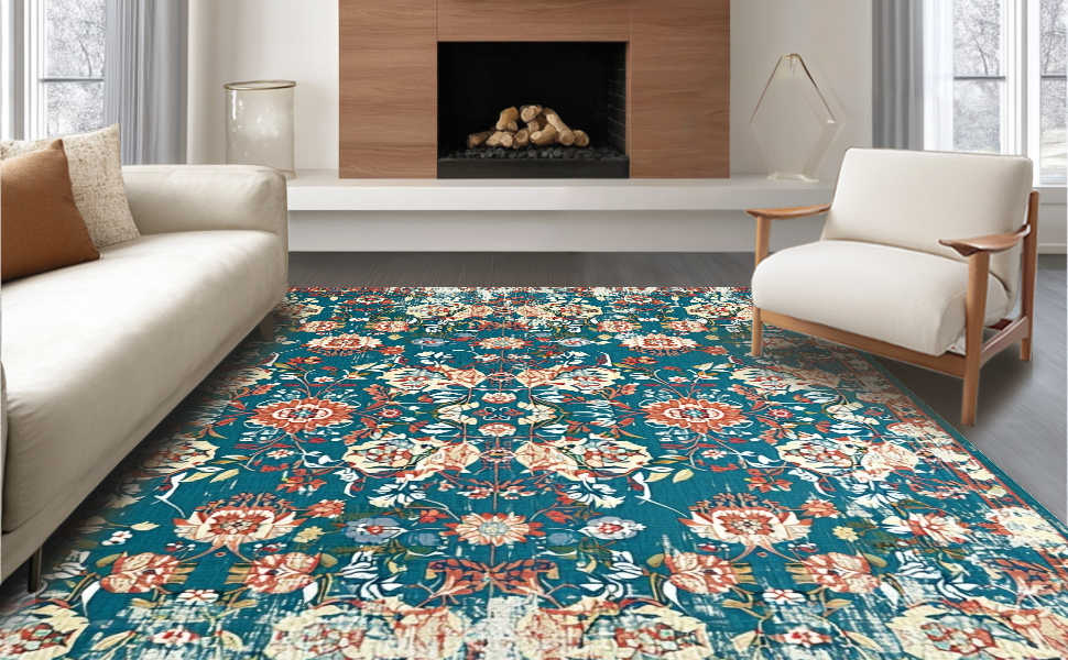 Ultra Soft Area Rug, Non Slip, Stain Resistant, Washable Area Rugs for Living Room, Bedroom, Chic Geometric Earthy Aesthetic(Blue) Overview: