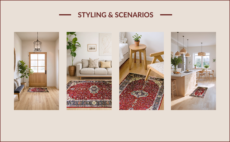 Ultra Soft Area Rug, Non Slip, Stain Resistant, Washable Area Rugs for Living Room, Bedroom, Chic Geometric Red and Cream Fusion(Red) Overview:
