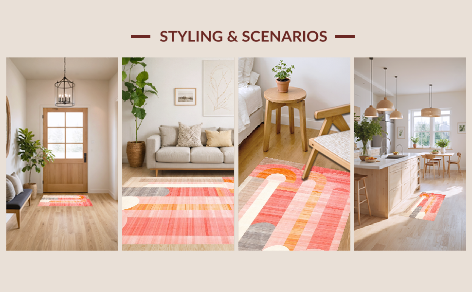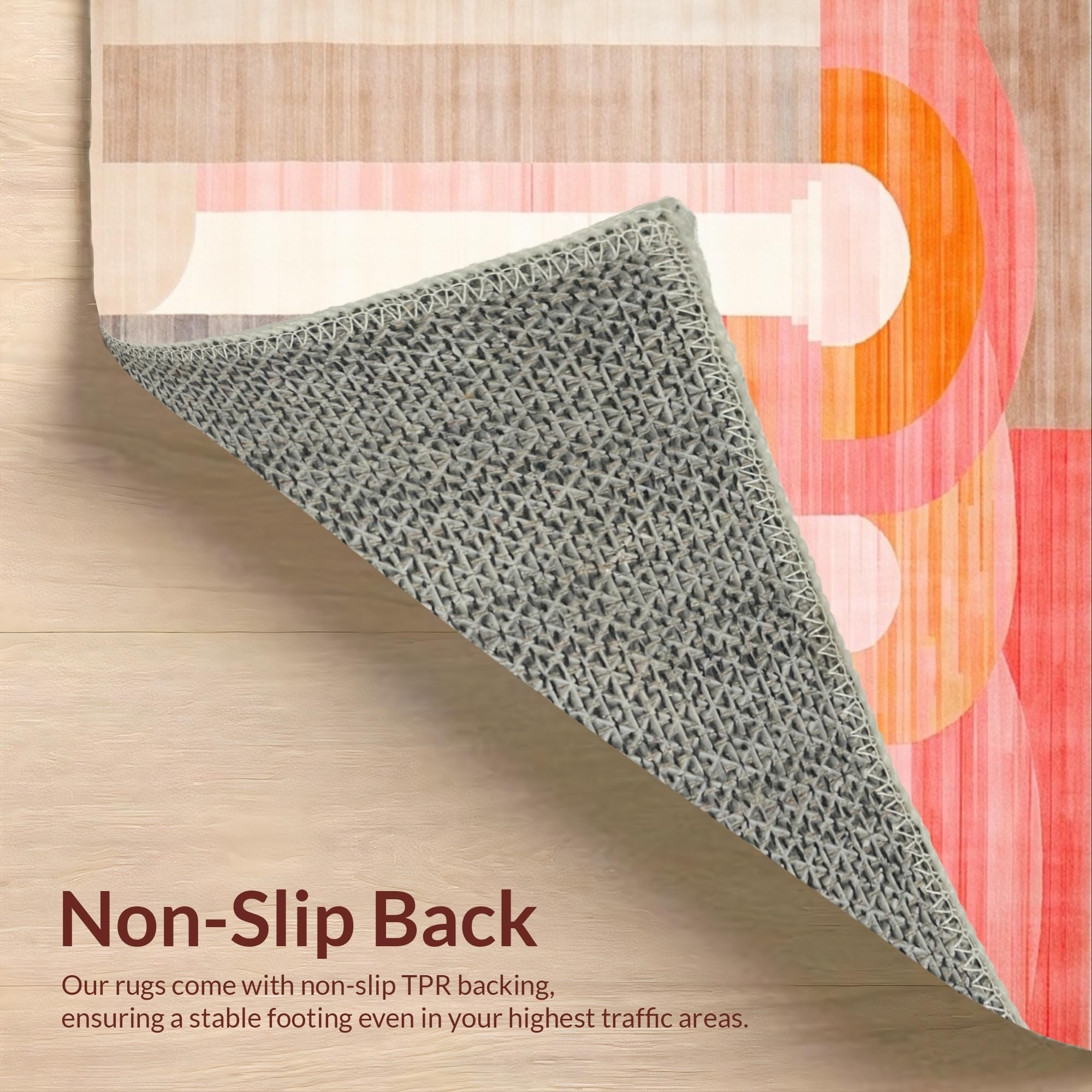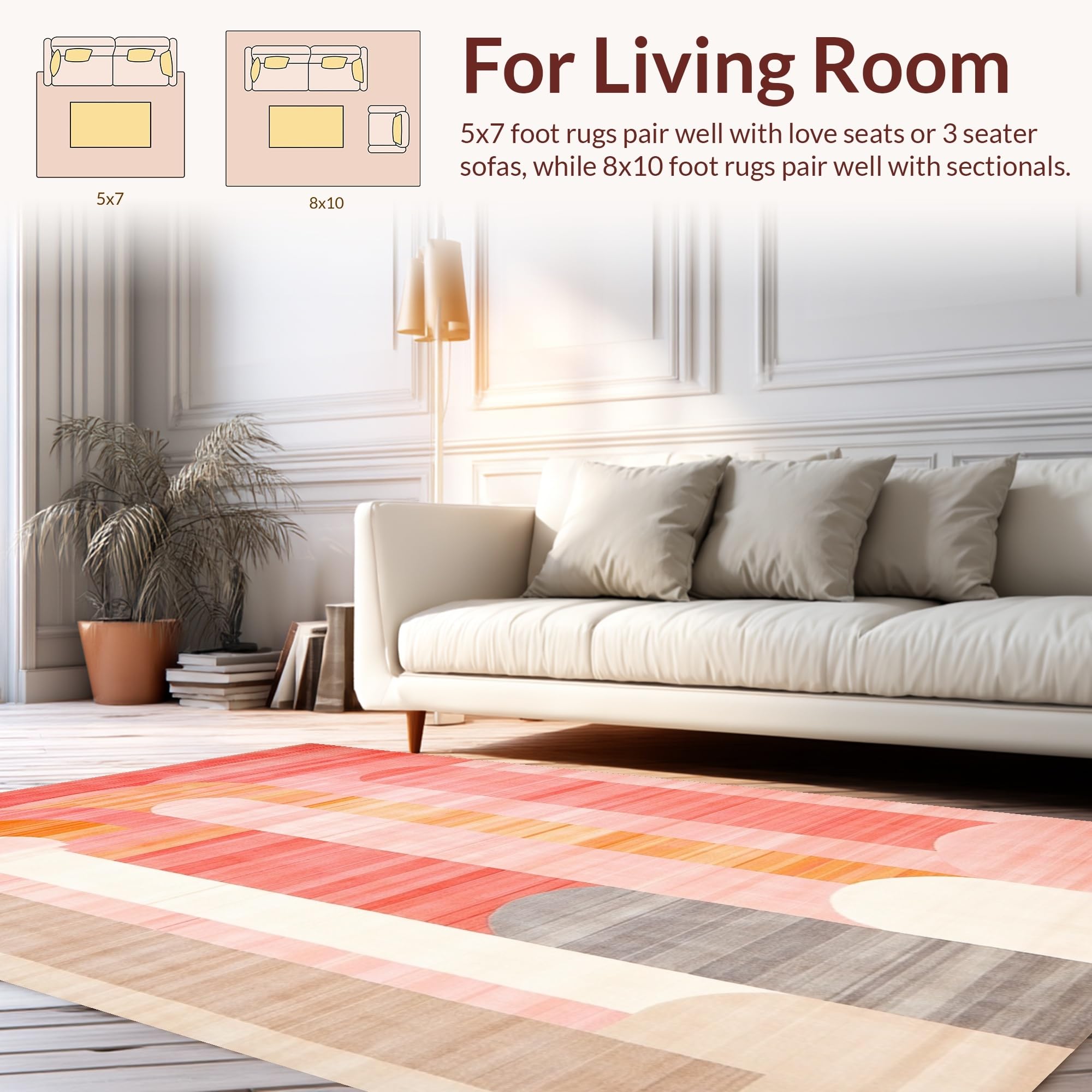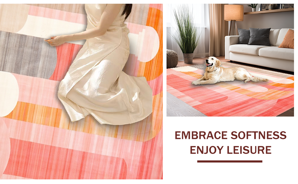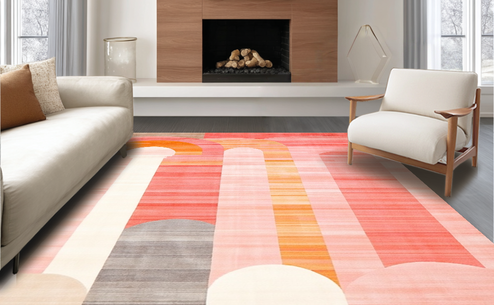 Ultra Soft Area Rug, Non Slip, Stain Resistant, Washable Area Rugs for Living Room, Bedroom, Chic Geometric Soft Pink Palette(Red) Overview: