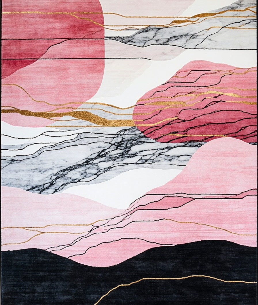 Flatwoven High Traffic Area Rug, Chic Geometric Surface, Non Slip, Stain Resistant, Washable Area Rugs for Living Room, Bedroom (Pink) Overview: