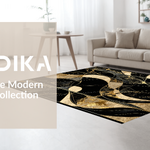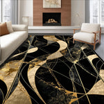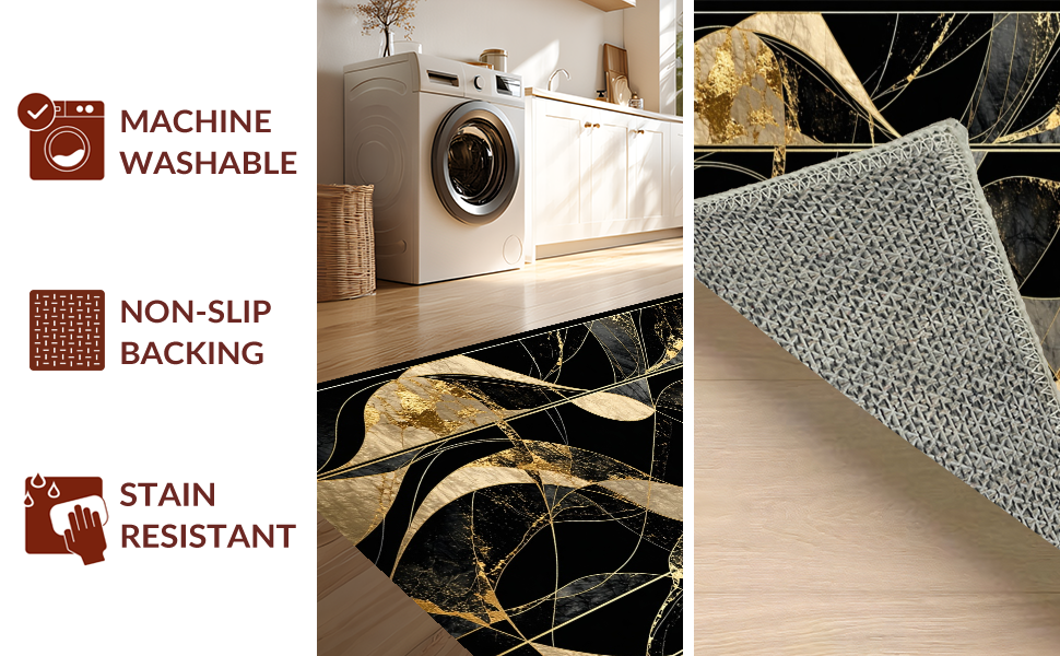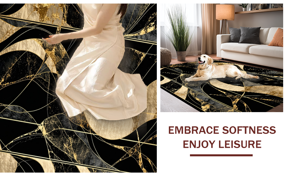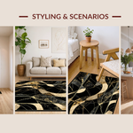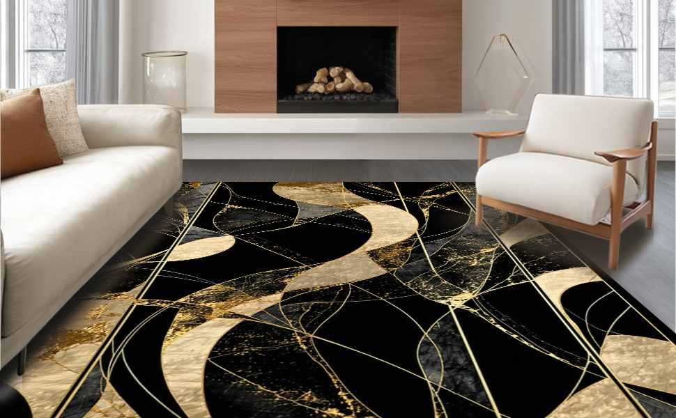 Ultra Soft Area Rug, Non Slip, Stain Resistant, Washable Area Rugs for Living Room, Bedroom, Chic Gold Accented Decorative Piece(Black) Overview: