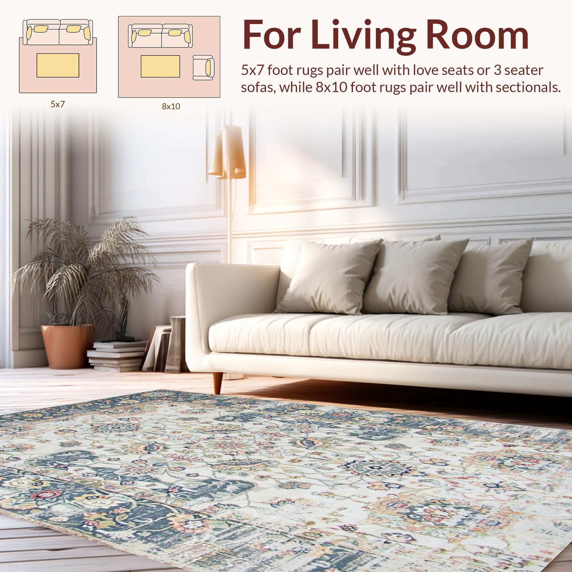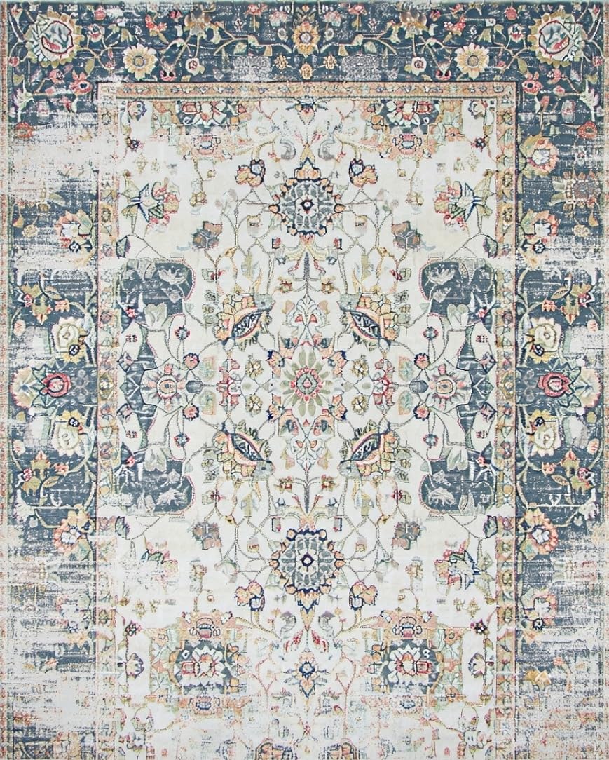 Ultra Soft Area Rug, Non Slip, Stain Resistant, Washable Area Rugs for Living Room, Bedroom, Chic Gray Botanical Design(Ivory) Overview: