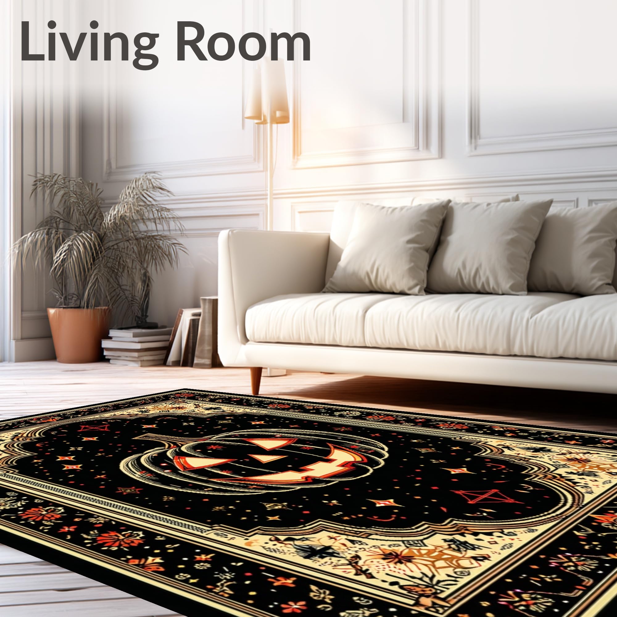 Ultra Soft Area Rug, Non Slip, Stain Resistant, Washable Area Rugs for Living Room, Bedroom, Chic Halloween Monochrome Aesthetic(Black) Overview: