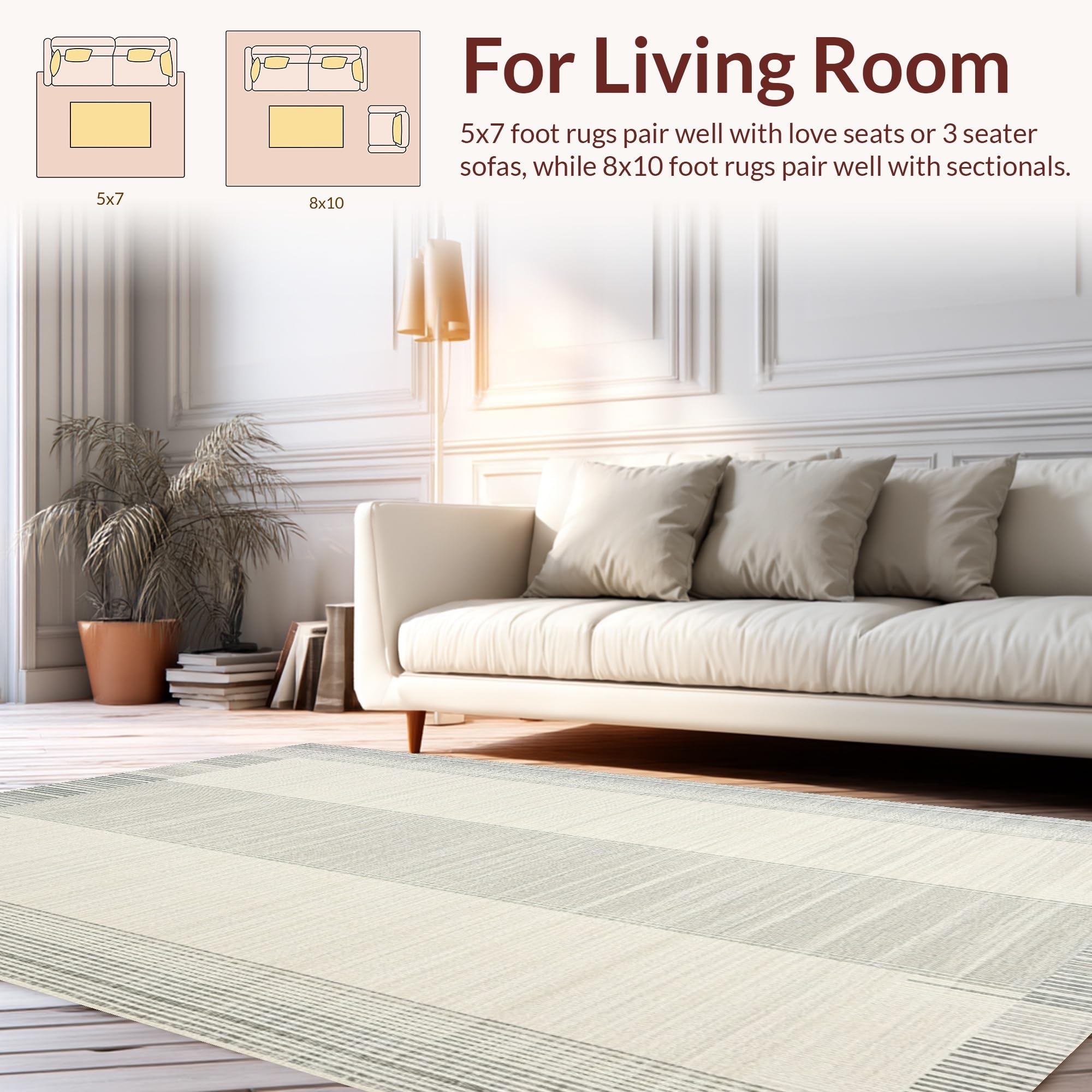 Ultra Soft Area Rug, Non Slip, Stain Resistant, Washable Area Rugs for Living Room, Bedroom, Chic High-Low Texture Appeal(Beige) Overview: