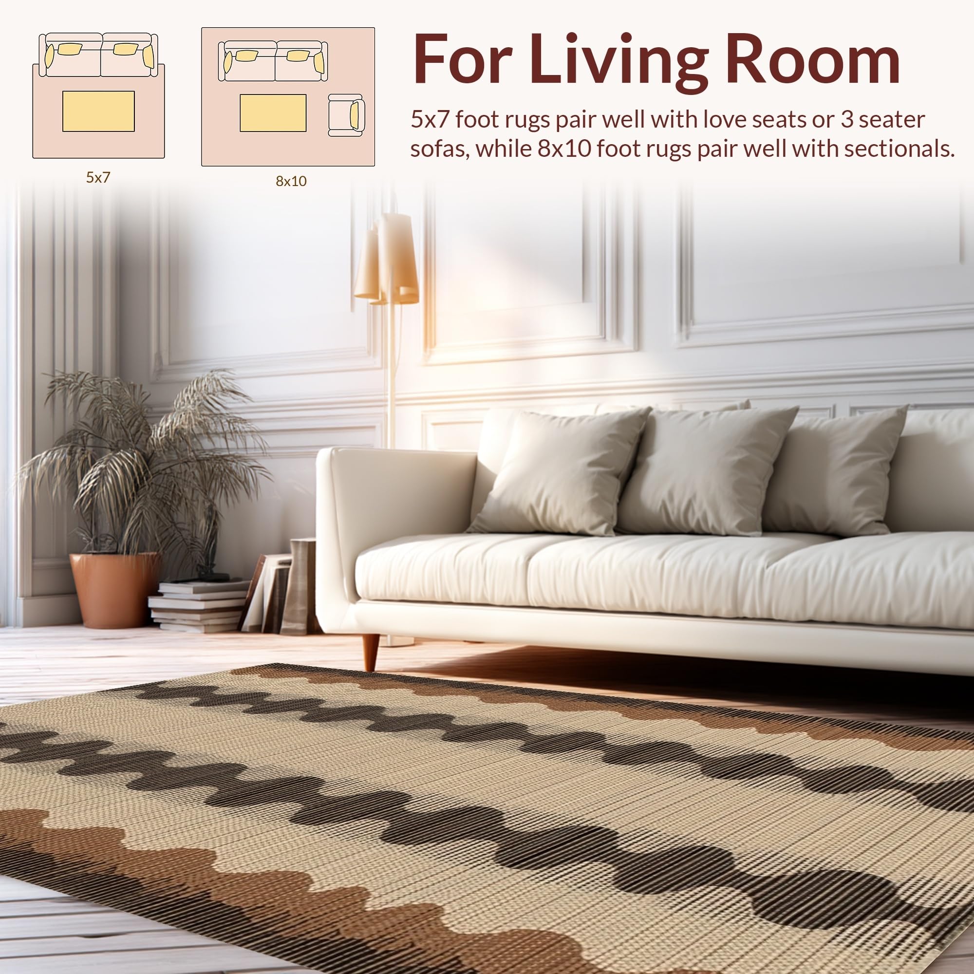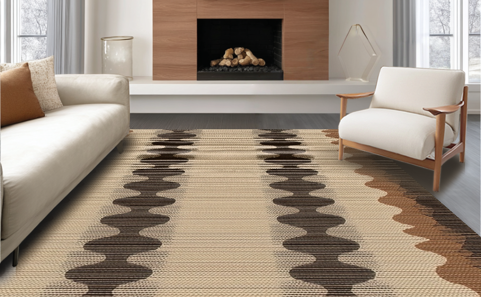 Ultra Soft Area Rug, Non Slip, Stain Resistant, Washable Area Rugs for Living Room, Bedroom, Chic High-Low Textured Design(Beige) Overview: