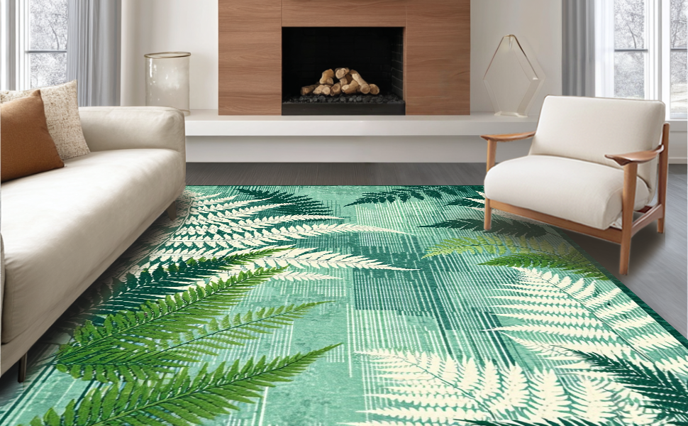 Ultra Soft Area Rug, Non Slip, Stain Resistant, Washable Area Rugs for Living Room, Bedroom, Chic Irregular Gradient Motif(Green) Overview: