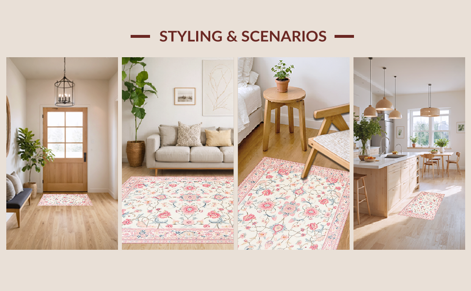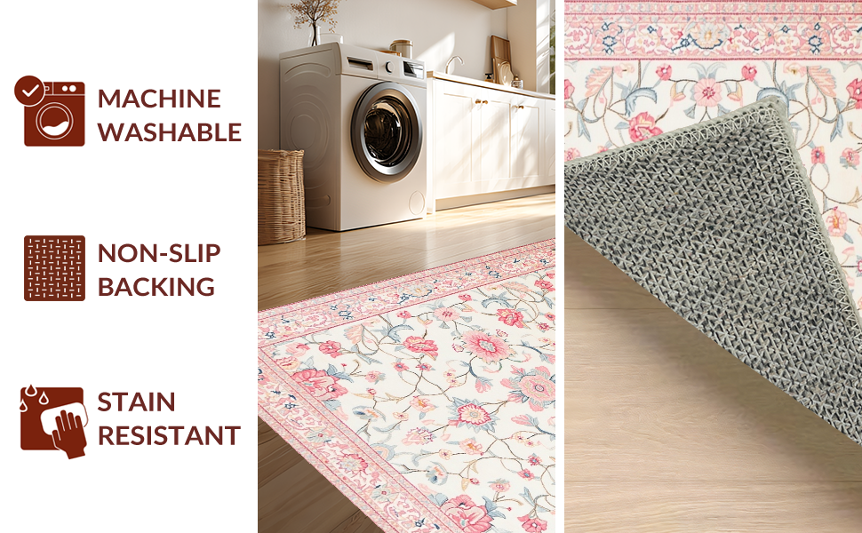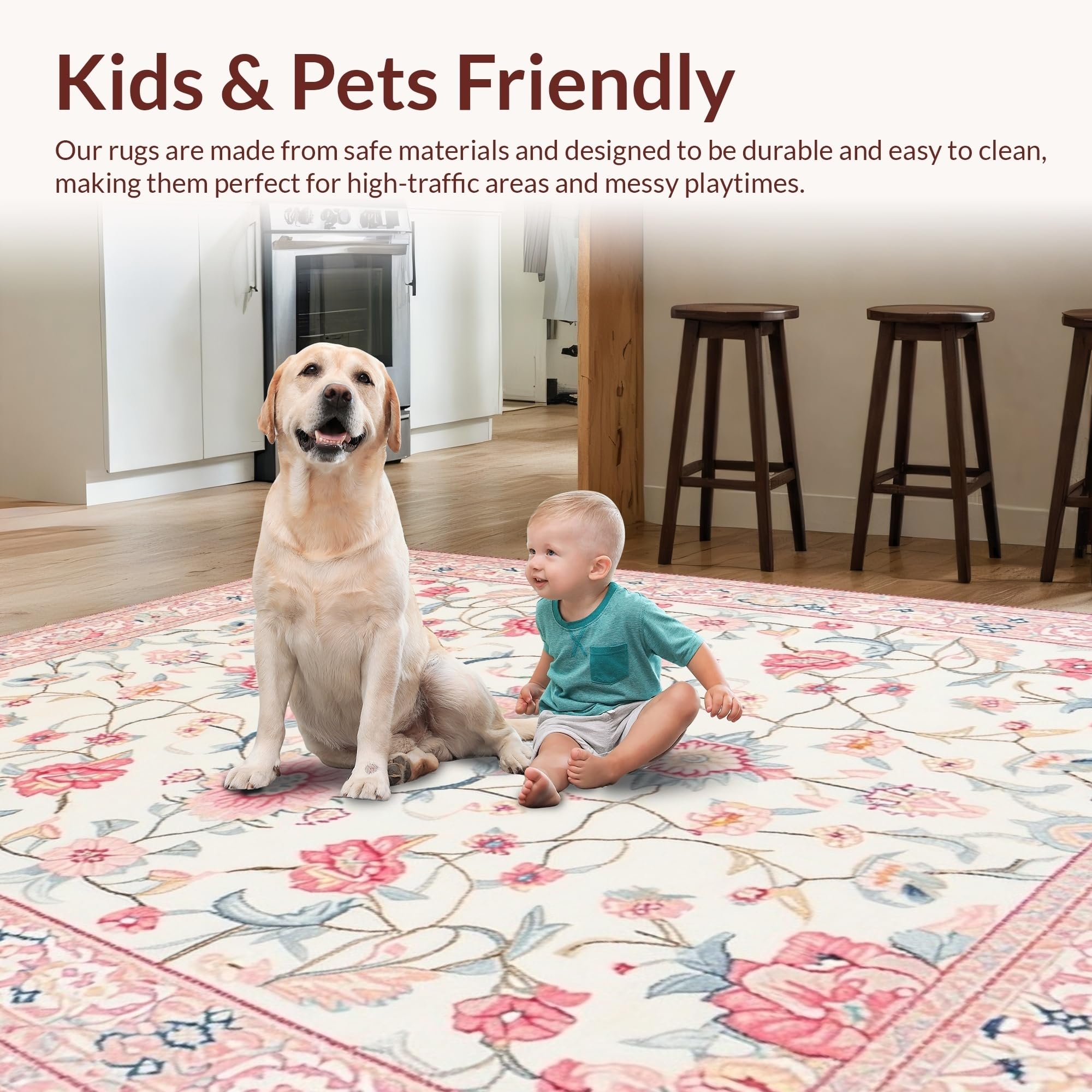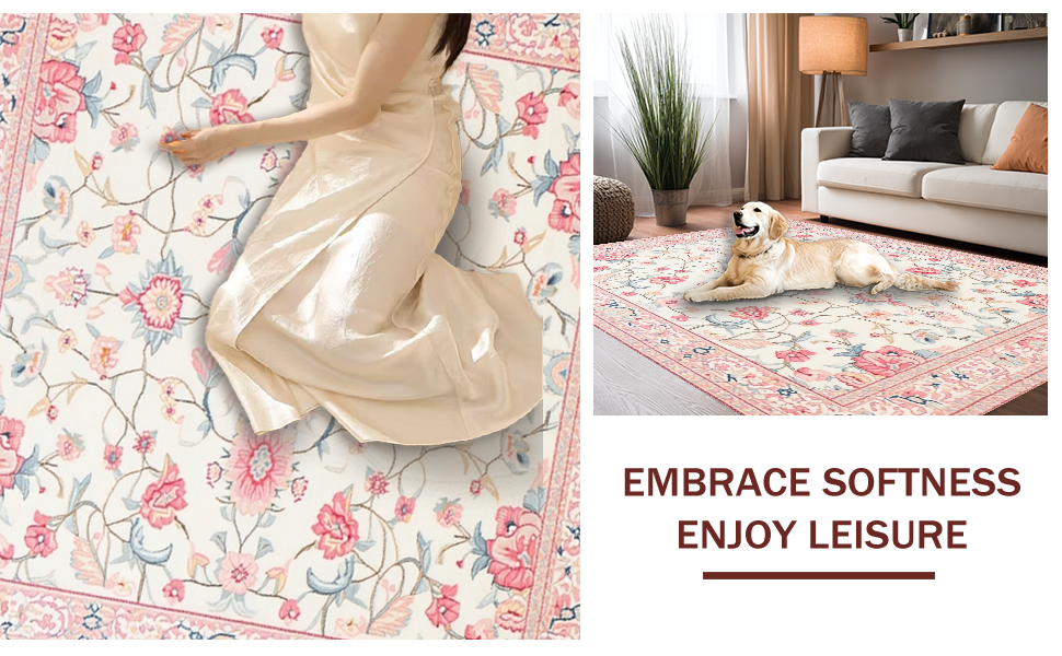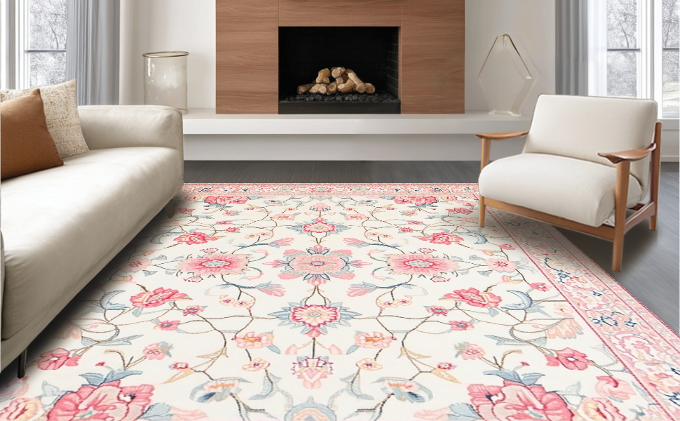 Ultra Soft Area Rug, Non Slip, Stain Resistant, Washable Area Rugs for Living Room, Bedroom, Chic Ivory and Blush Arrangement(Ivory) Overview: