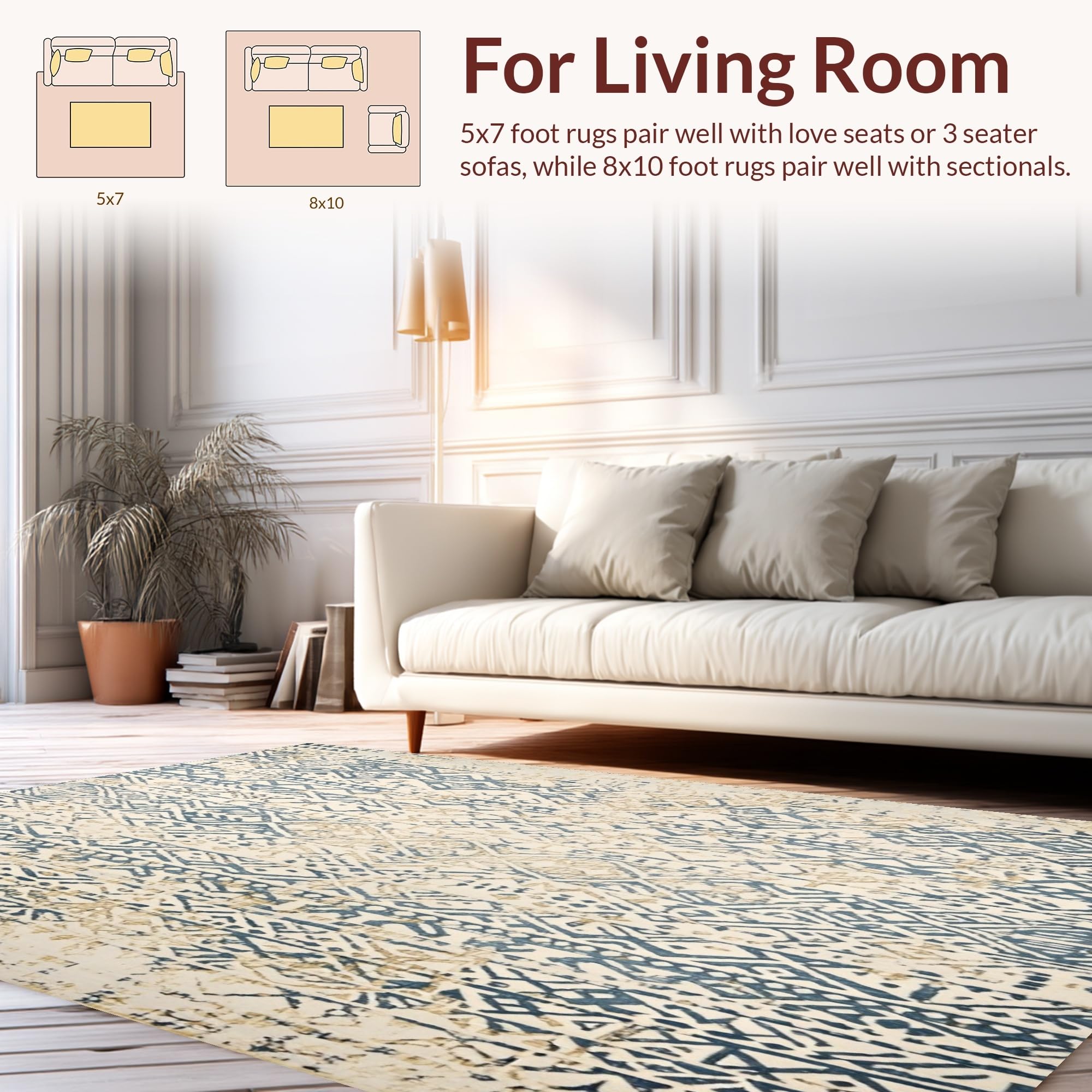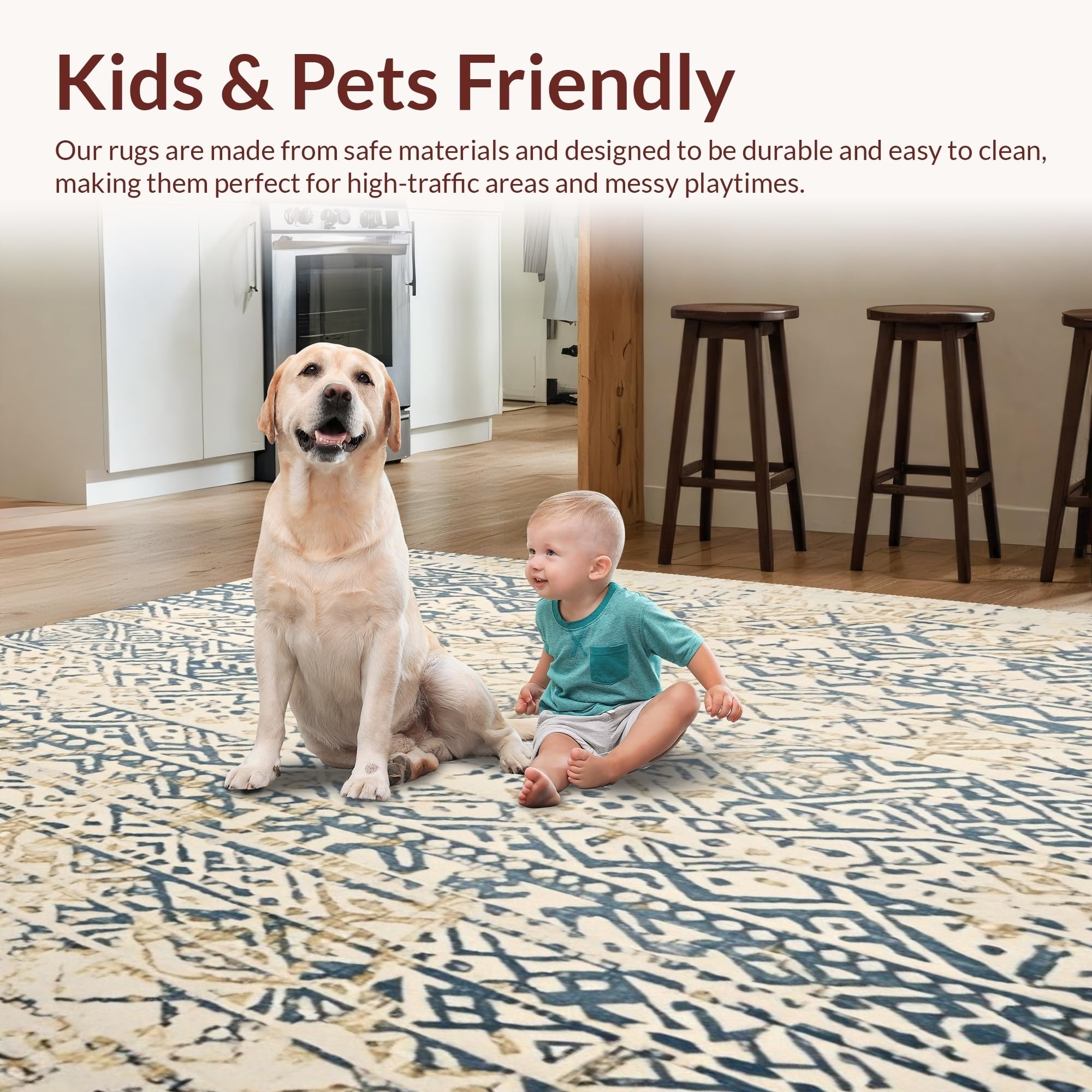 Ultra Soft Area Rug, Non Slip, Stain Resistant, Washable Area Rugs for Living Room, Bedroom, Chic Ivory Beige Area with Distressed Boho Tribal(Beige) Overview: