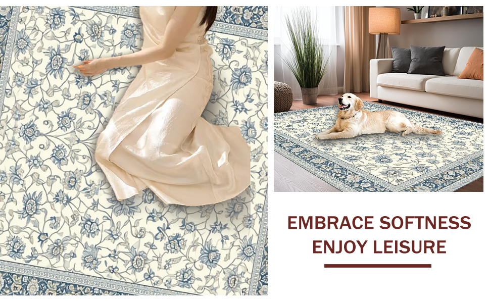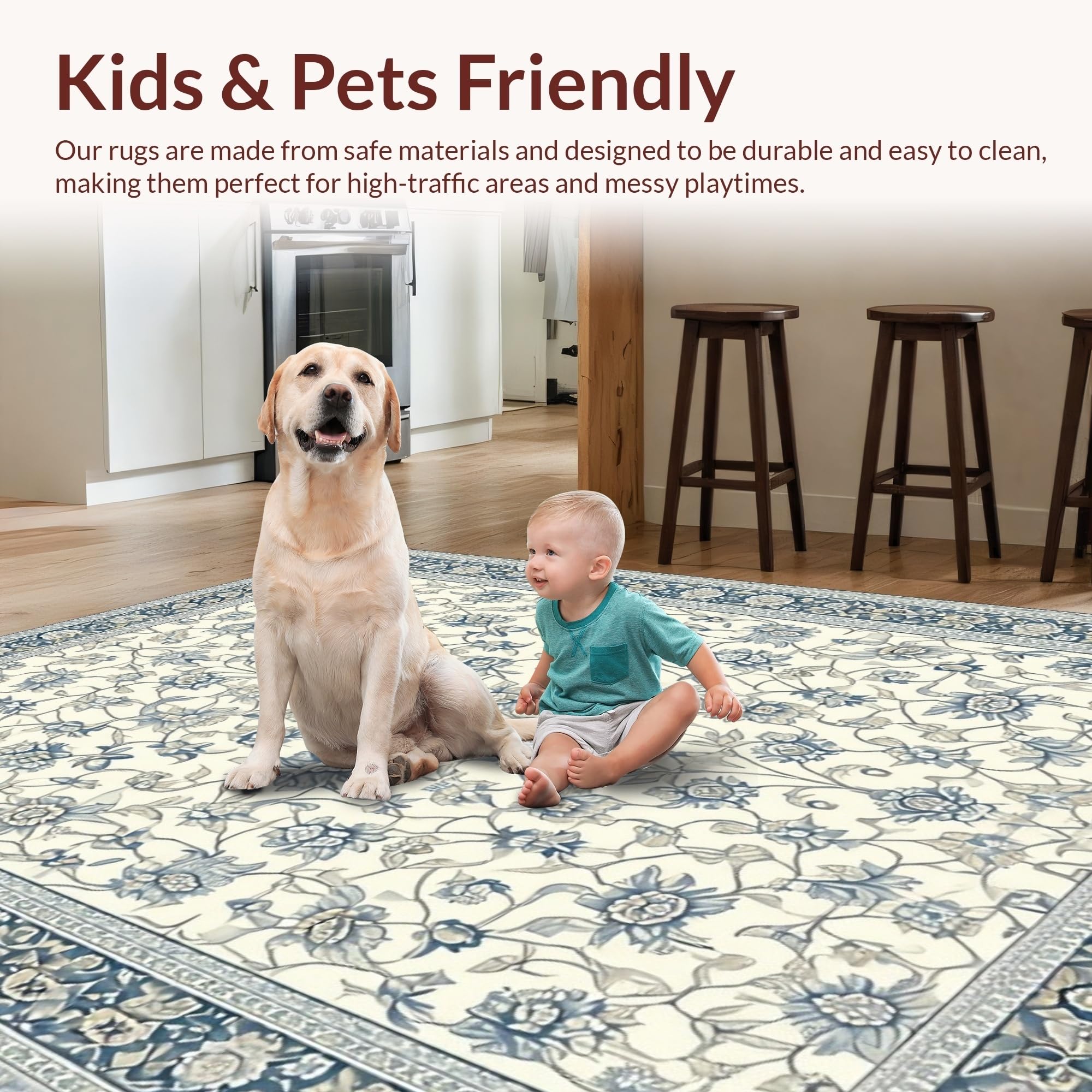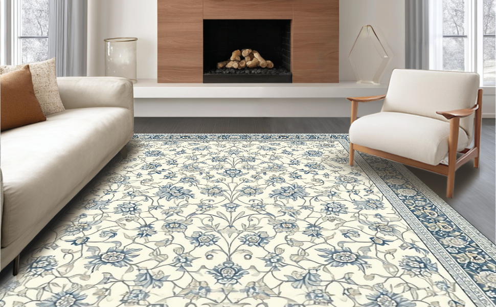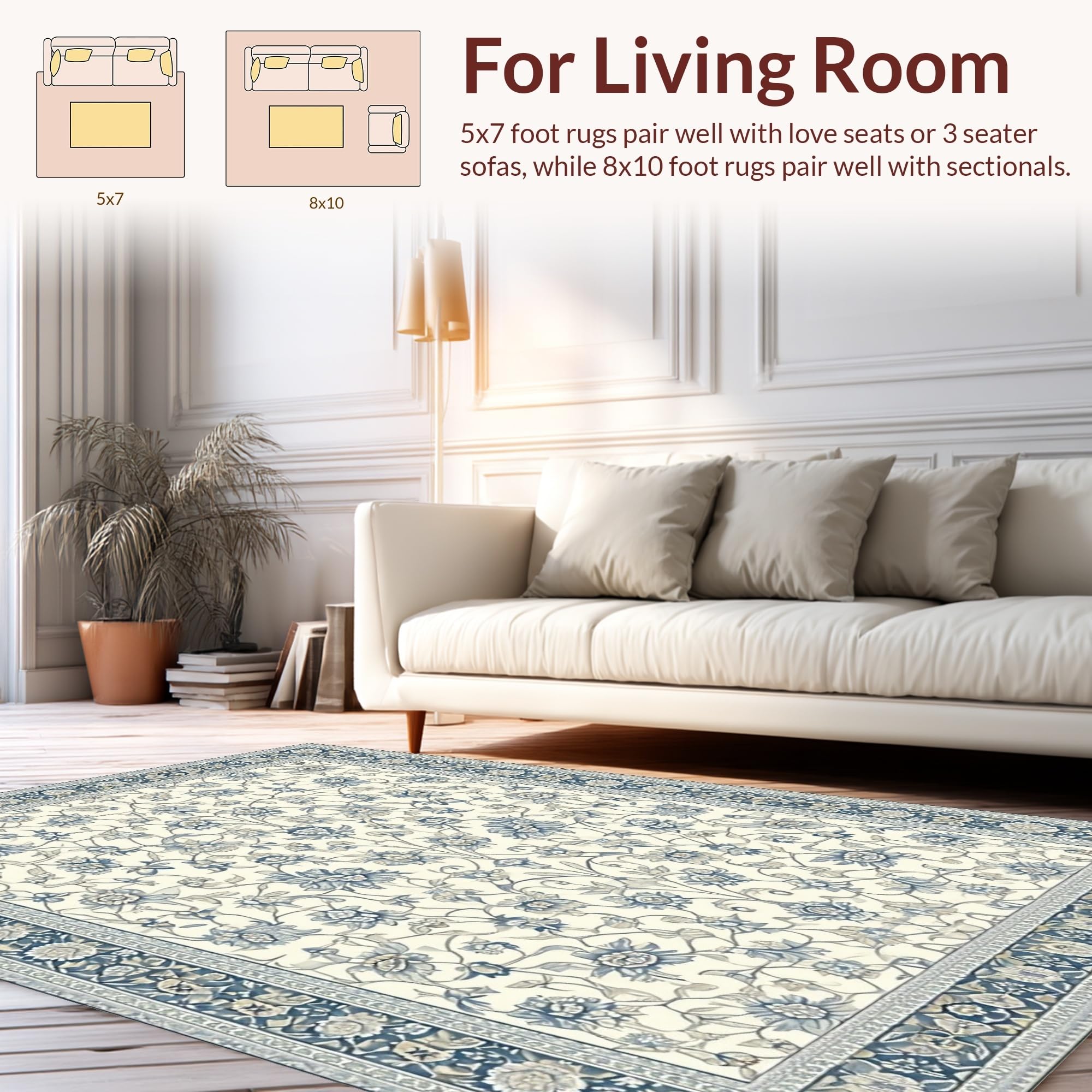 Ultra Soft Area Rug, Non Slip, Stain Resistant, Washable Area Rugs for Living Room, Bedroom, Chic Ivory Transitional Design(Ivory) Overview: