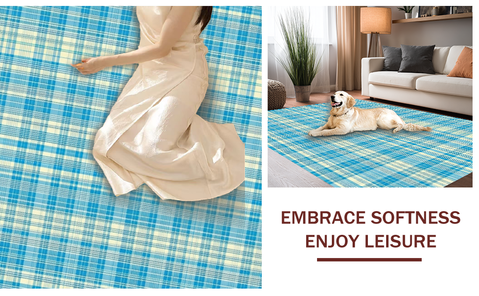 Ultra Soft Area Rug, Non Slip, Stain Resistant, Washable Area Rugs for Living Room, Bedroom, Chic Light Blue Plaid Aesthetic(Blue) Overview:
