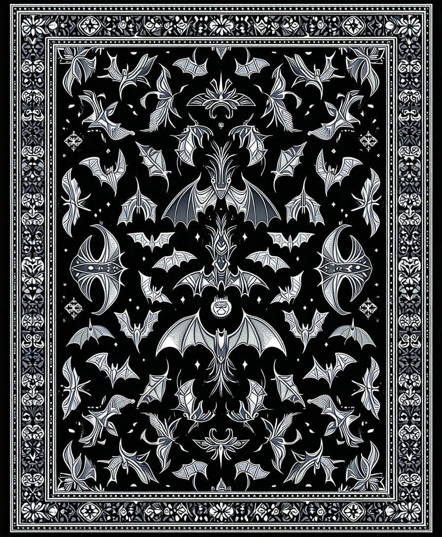 Flatwoven High Traffic Area Rug, Chic Macabre Bat Aesthetic, Non Slip, Stain Resistant, Washable Area Rugs for Living Room, Bedroom (Black) Overview: