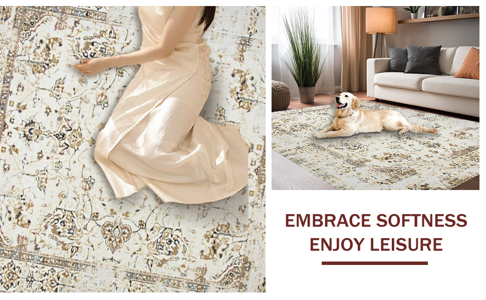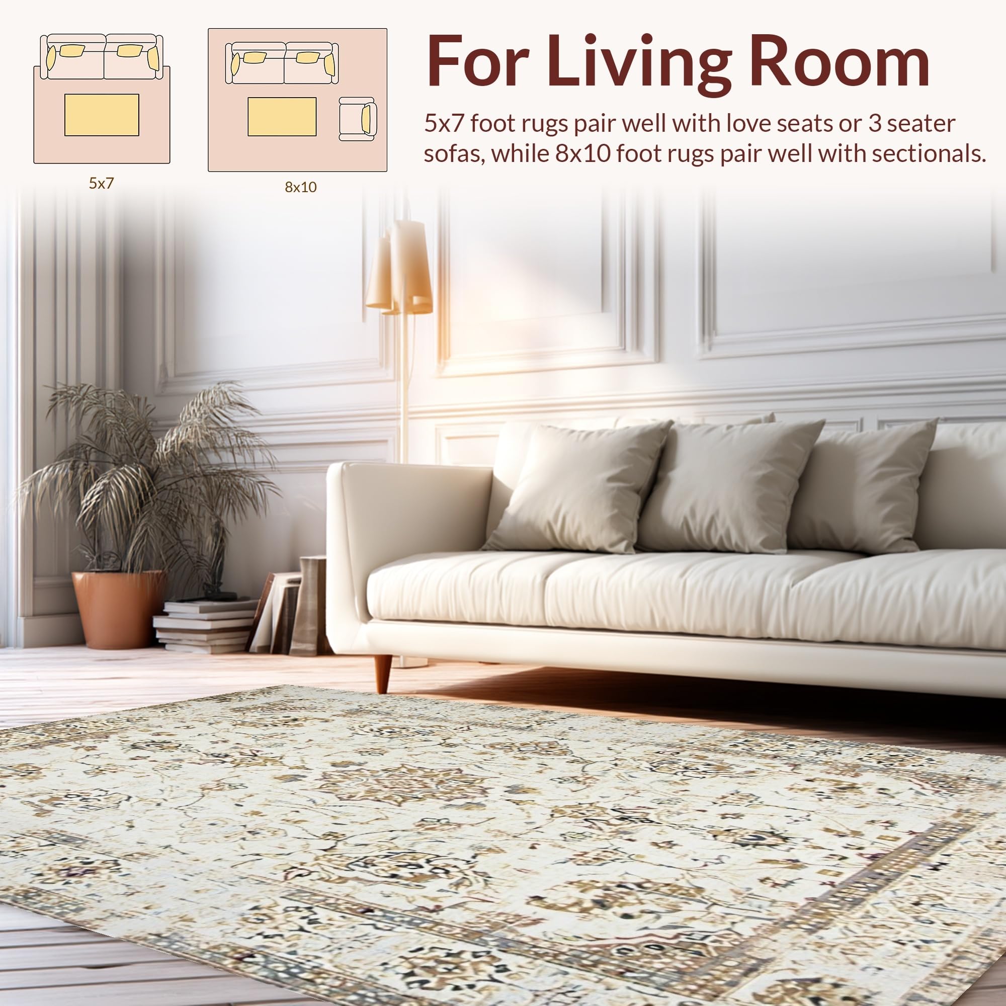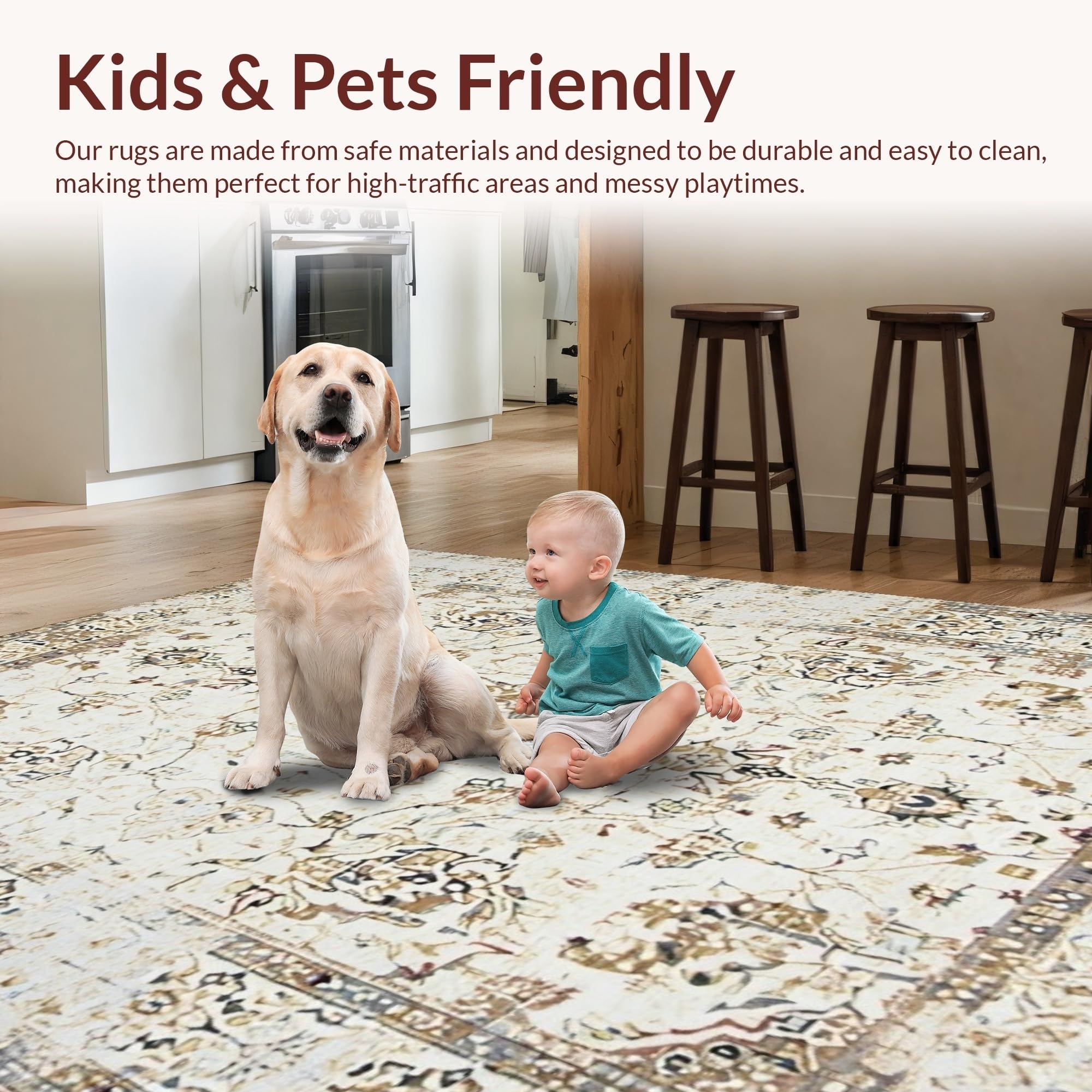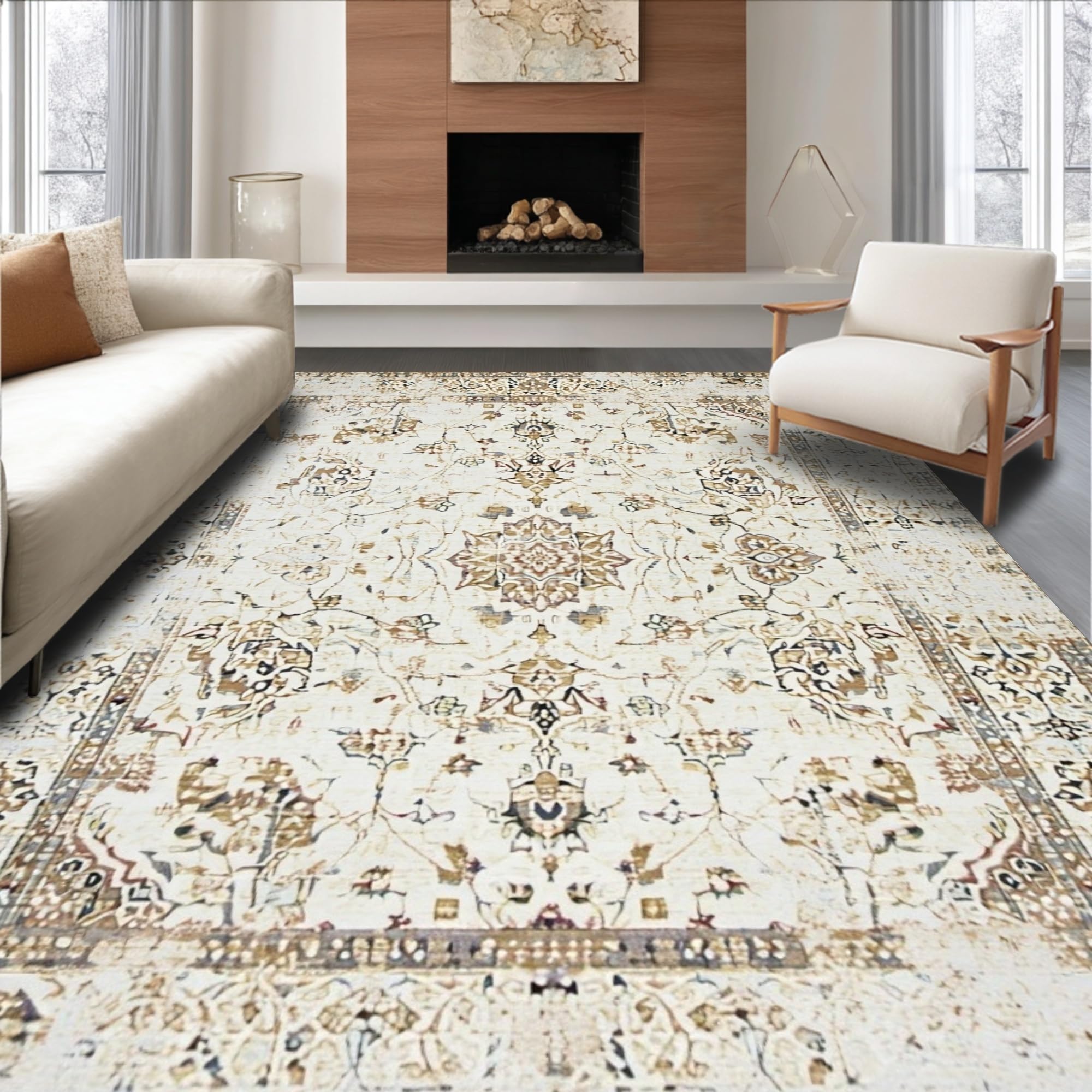 Ultra Soft Area Rug, Non Slip, Stain Resistant, Washable Area Rugs for Living Room, Bedroom, Chic Medallion Inspired Layout(Beige) Overview: