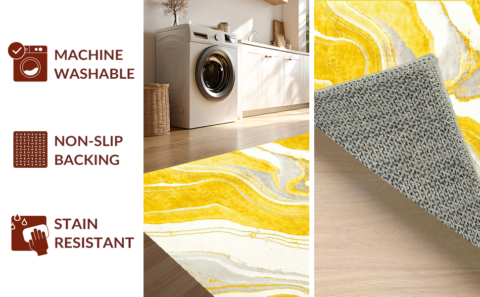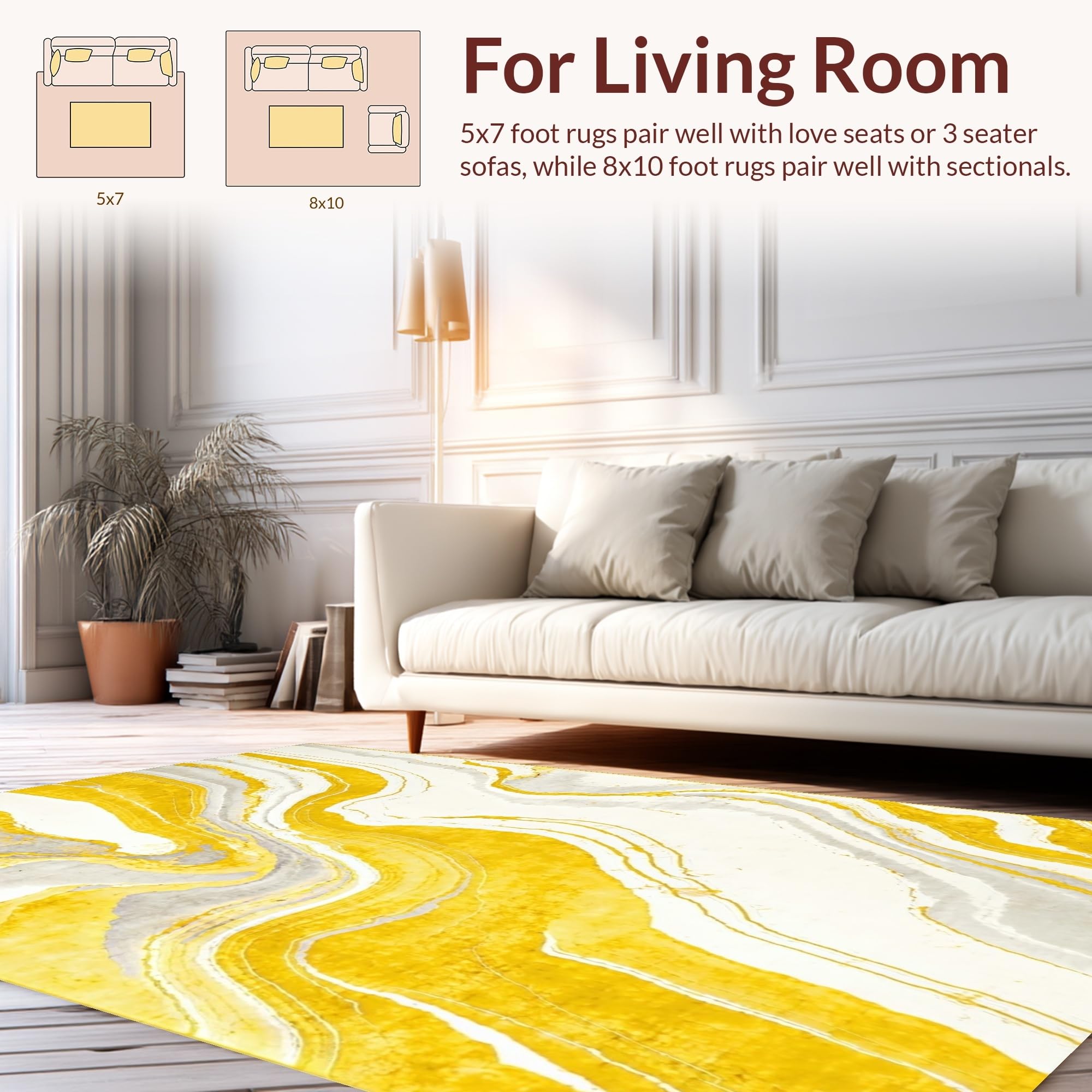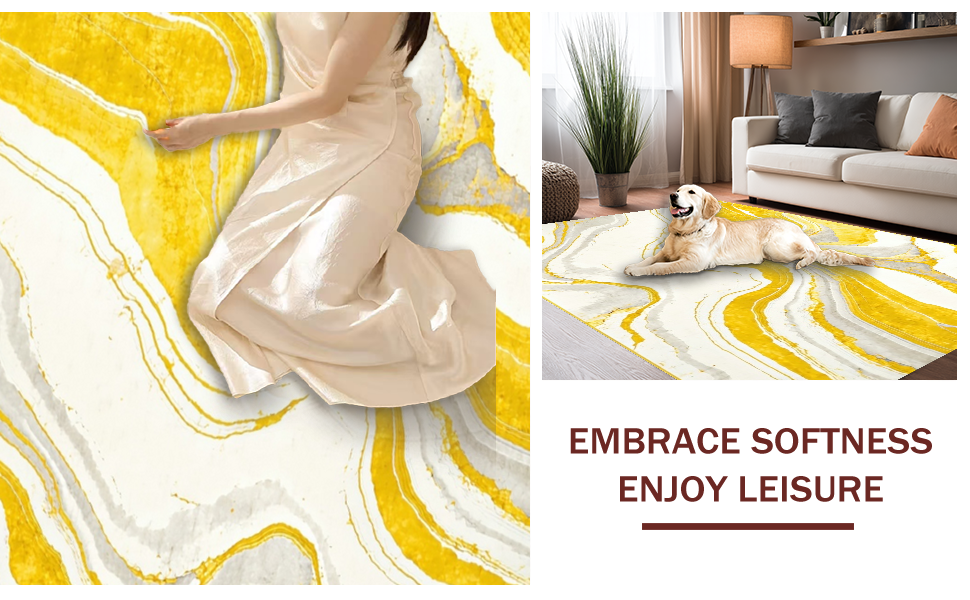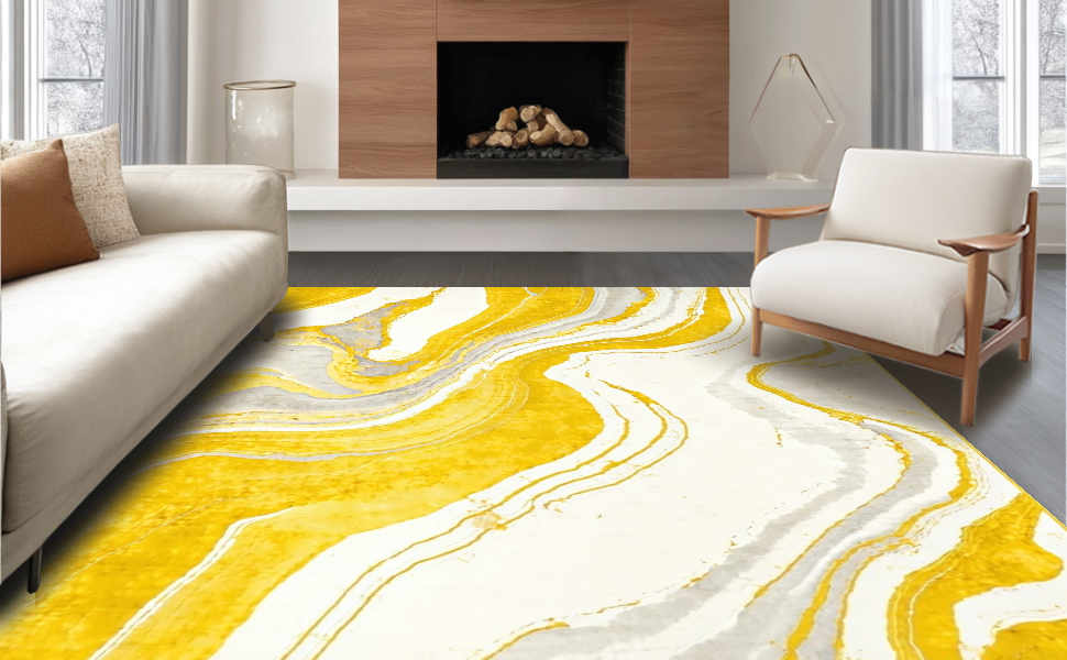 Ultra Soft Area Rug, Non Slip, Stain Resistant, Washable Area Rugs for Living Room, Bedroom, Chic Minimalist Abstract Harmony(Yellow) Overview: