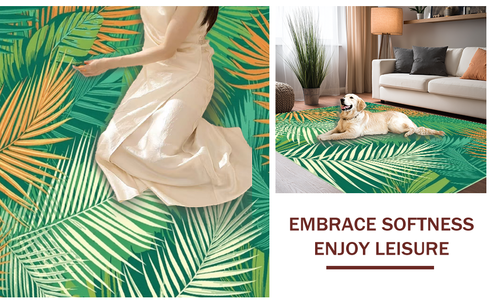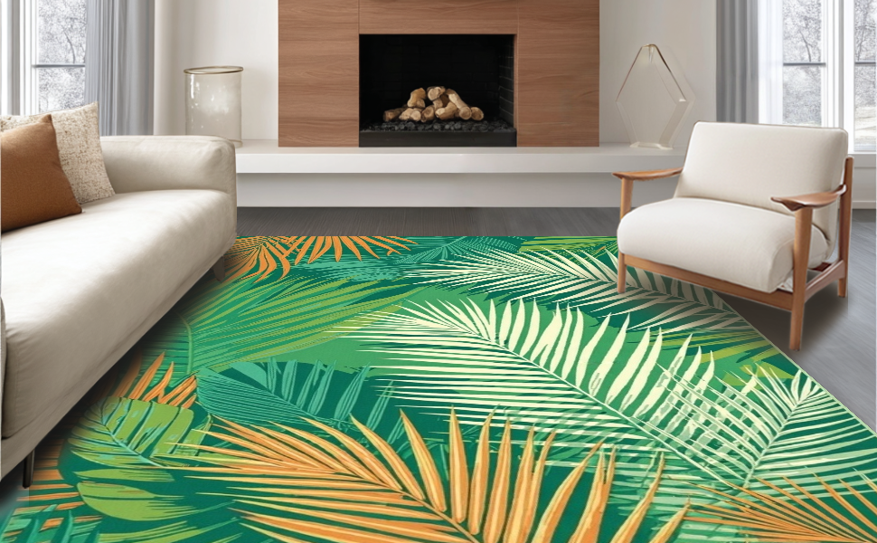 Ultra Soft Area Rug, Non Slip, Stain Resistant, Washable Area Rugs for Living Room, Bedroom, Chic Minimalist Funhouse Design(Green) Overview: