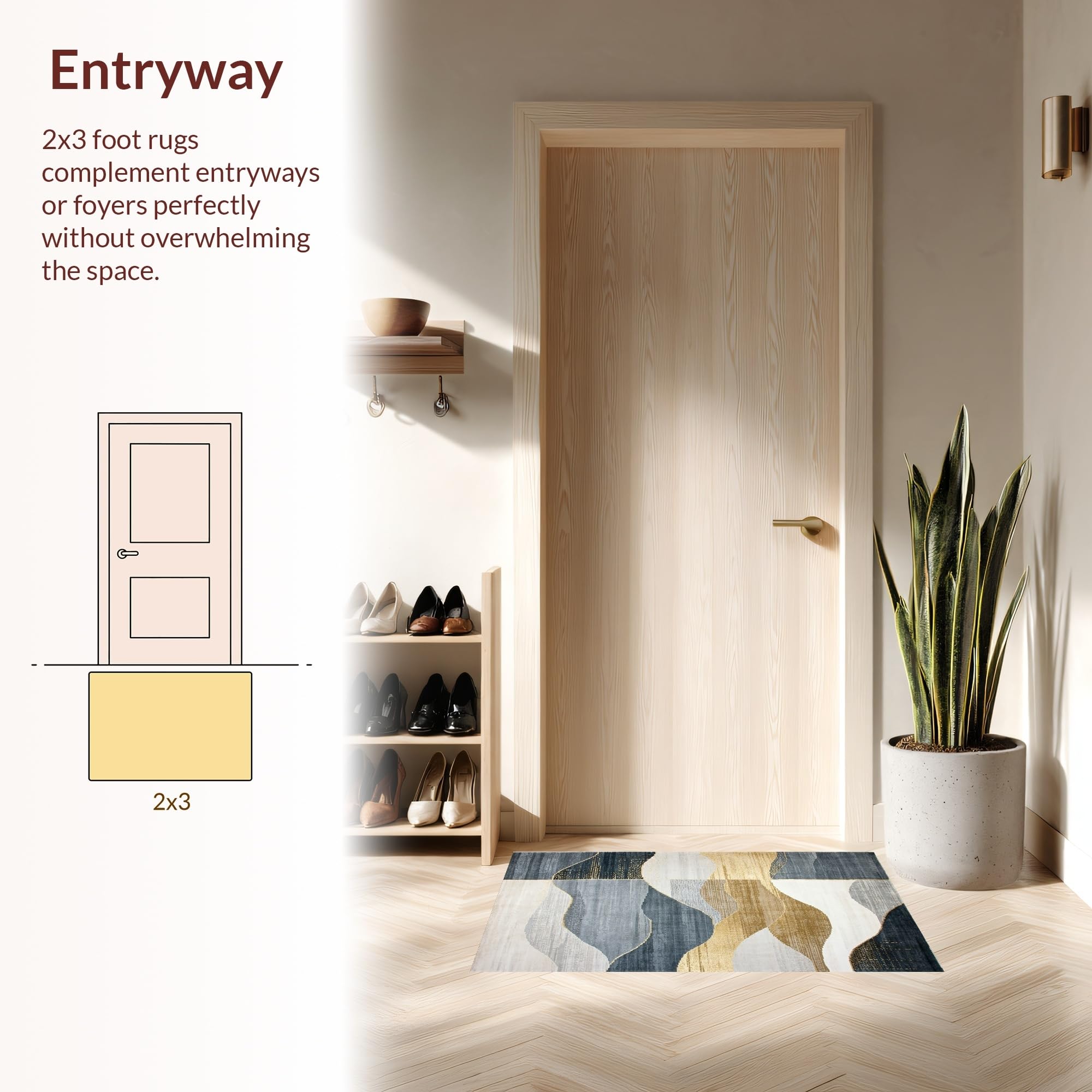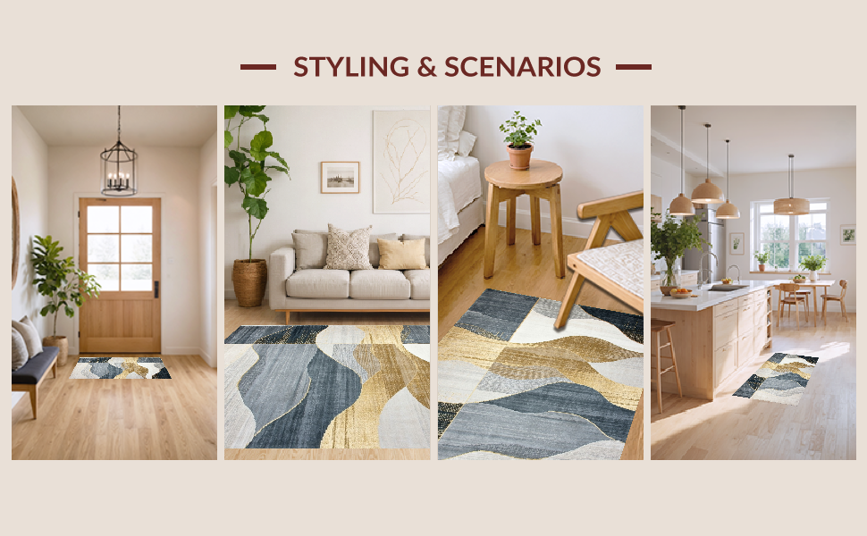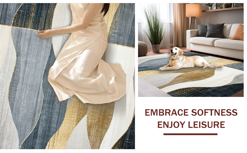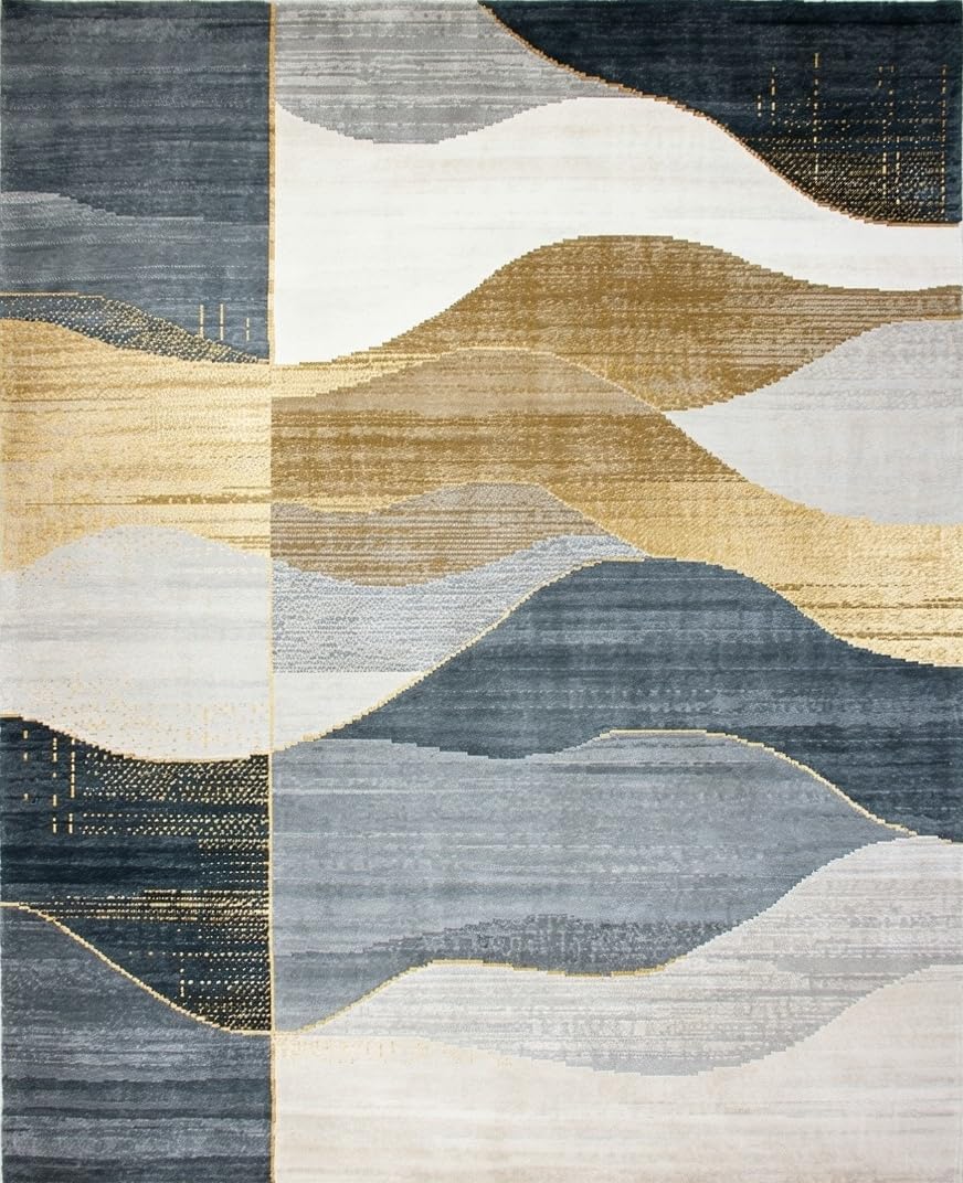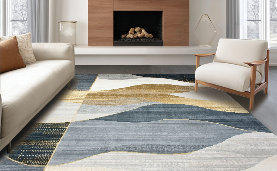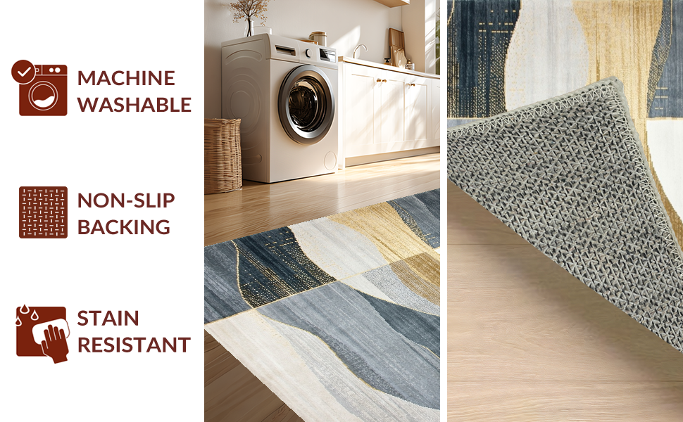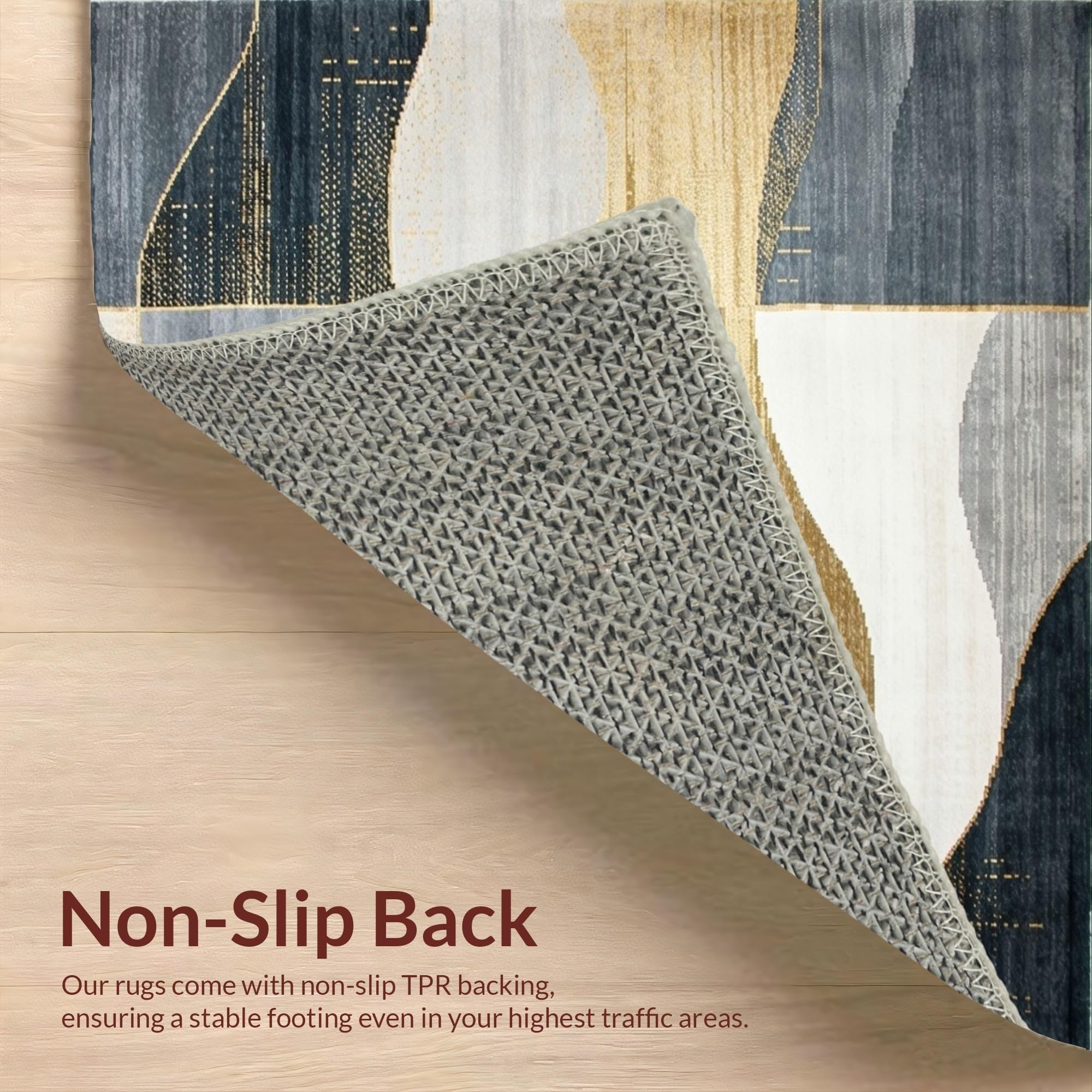 Ultra Soft Area Rug, Non Slip, Stain Resistant, Washable Area Rugs for Living Room, Bedroom, Chic Minimalist Grey Gold Design(Gray) Overview:
