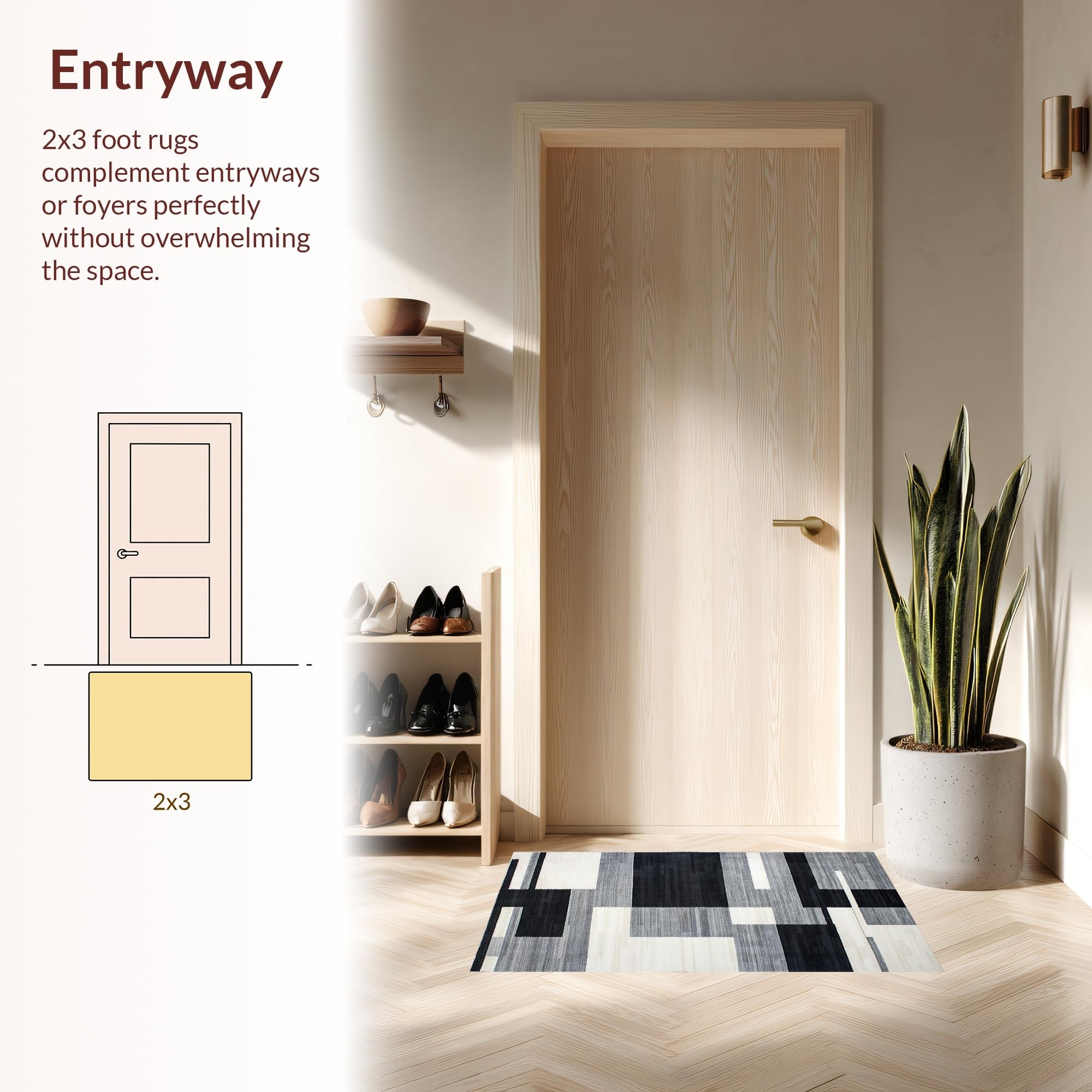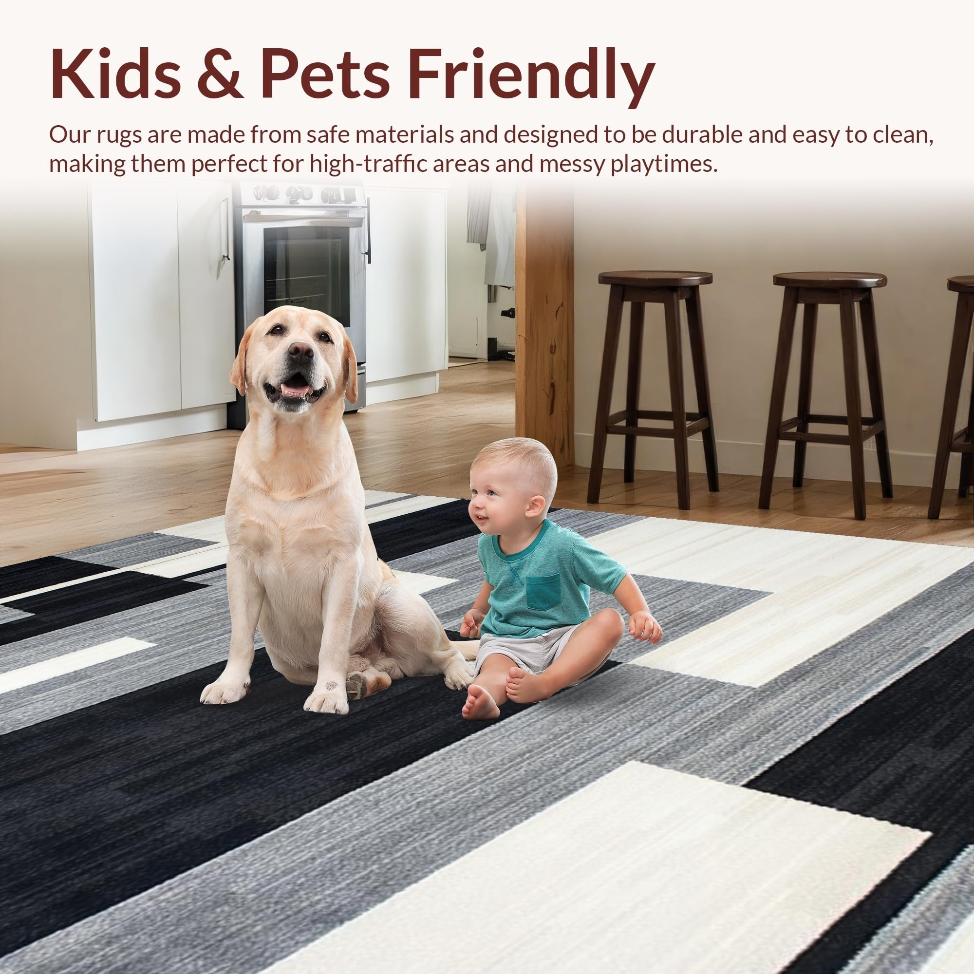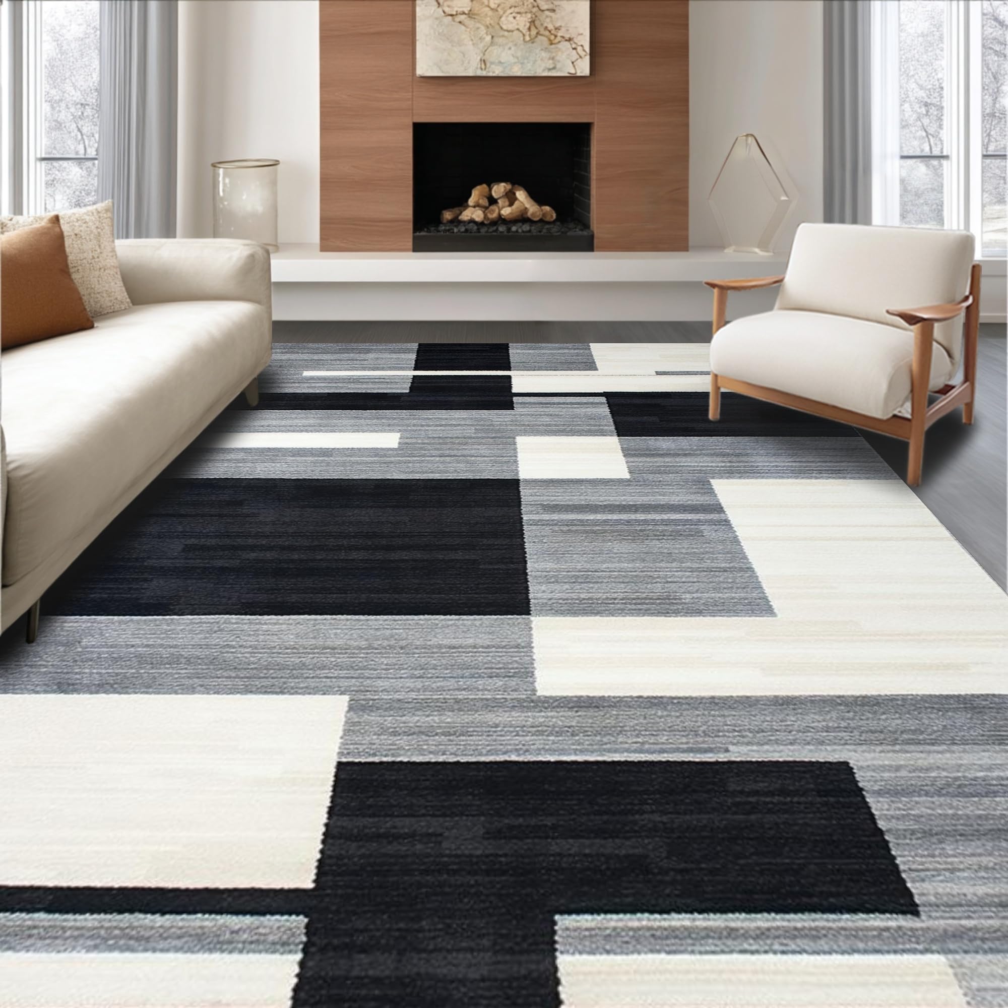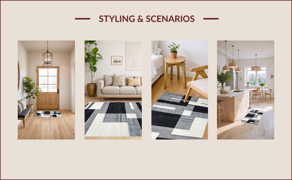Ultra Soft Area Rug, Non Slip, Stain Resistant, Washable Area Rugs for Living Room, Bedroom, Chic Minimalist Grey Tiled Pattern(Gray) Overview: