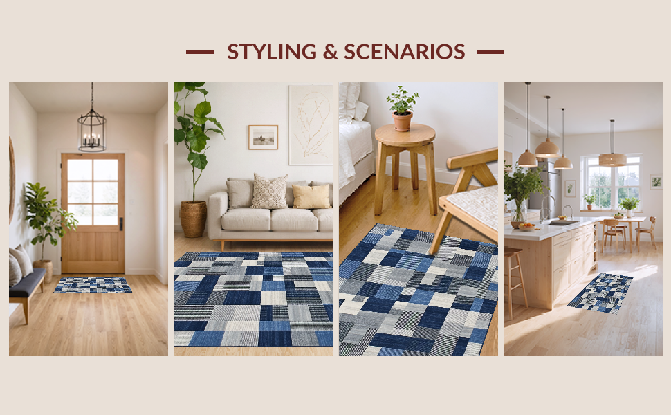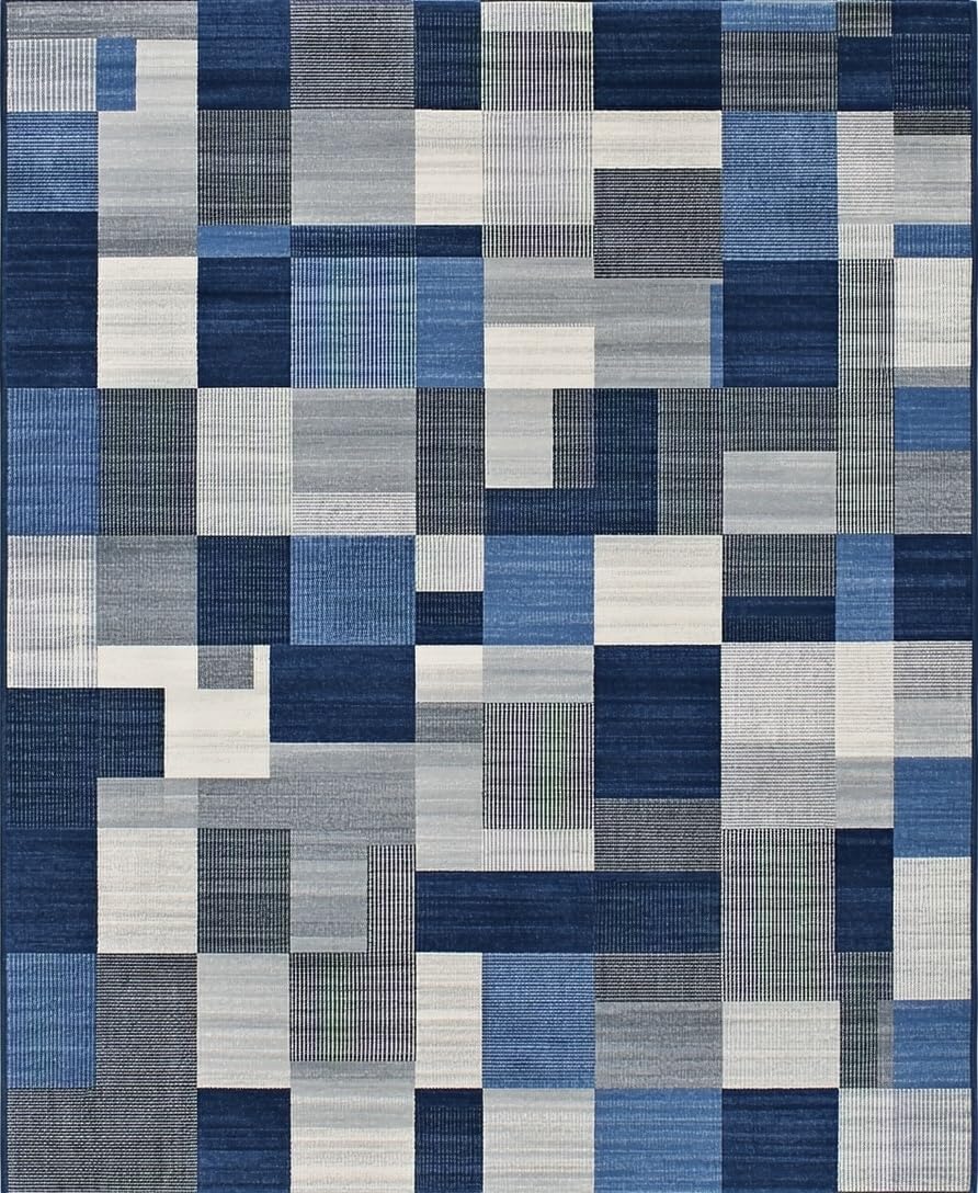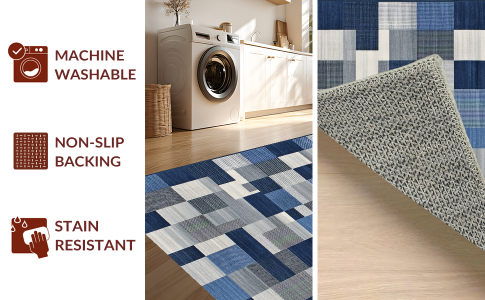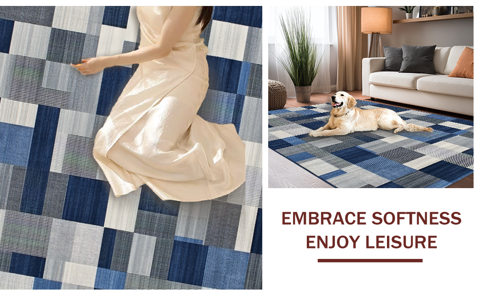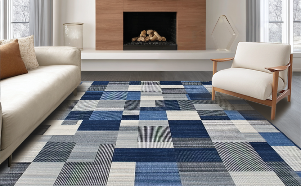 Ultra Soft Area Rug, Non Slip, Stain Resistant, Washable Area Rugs for Living Room, Bedroom, Chic Minimalist Lattice Theme(Blue) Overview:
