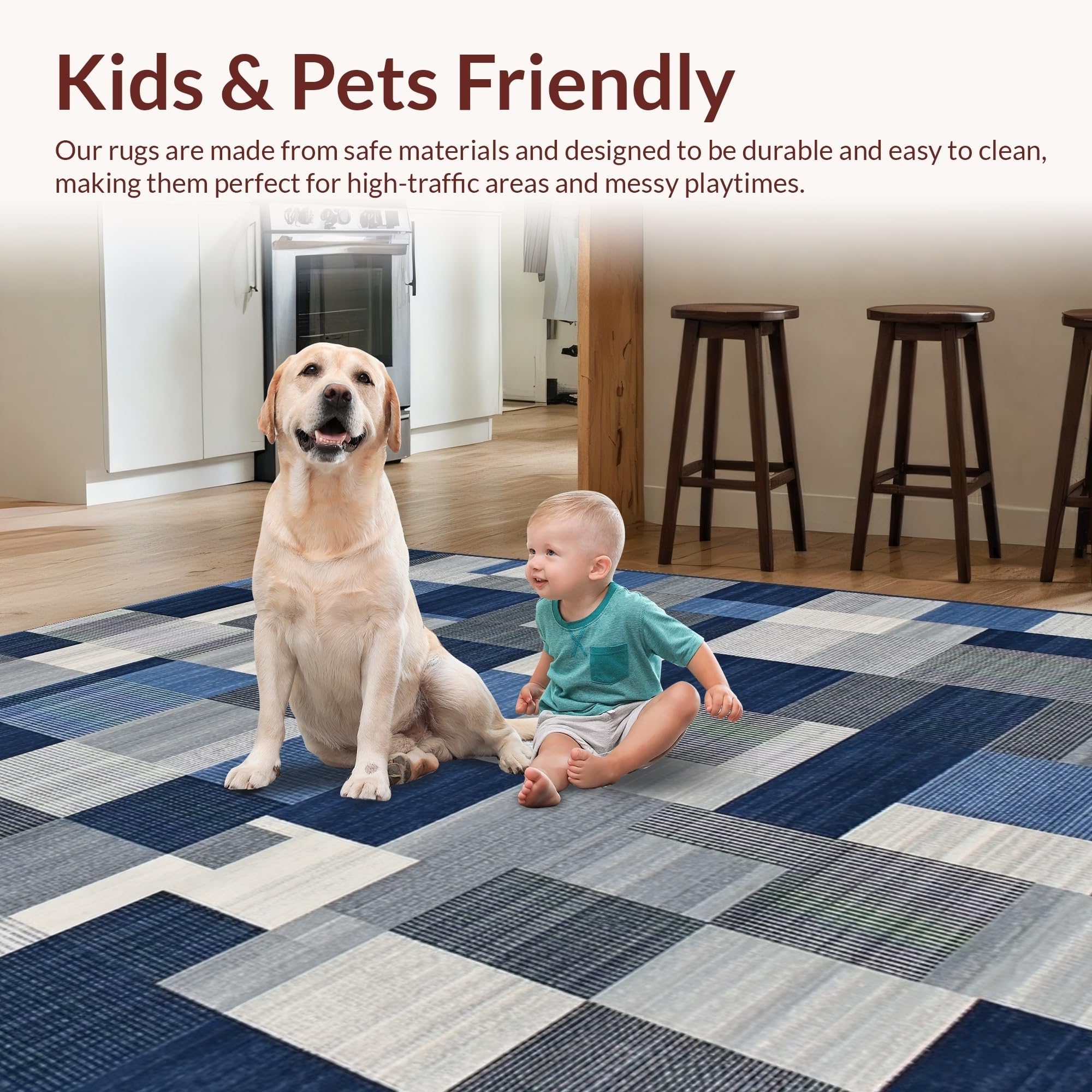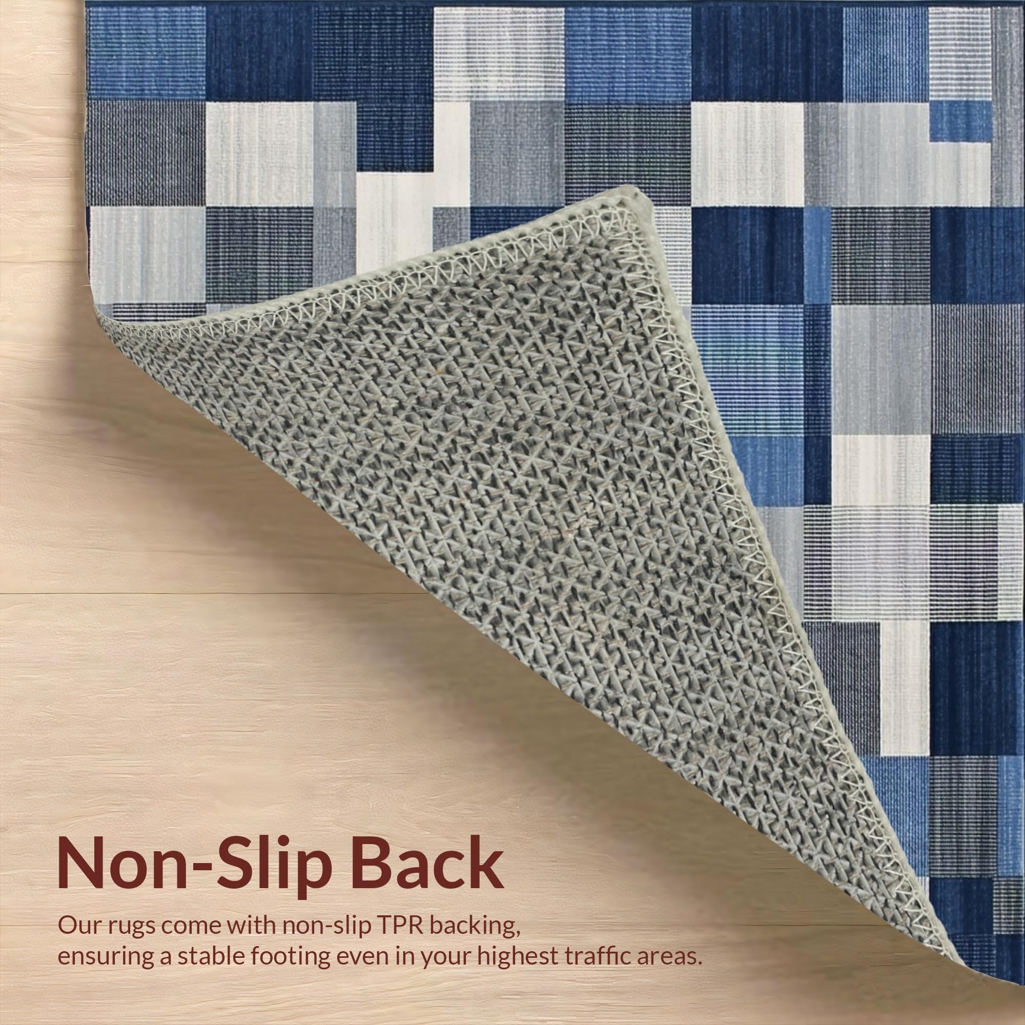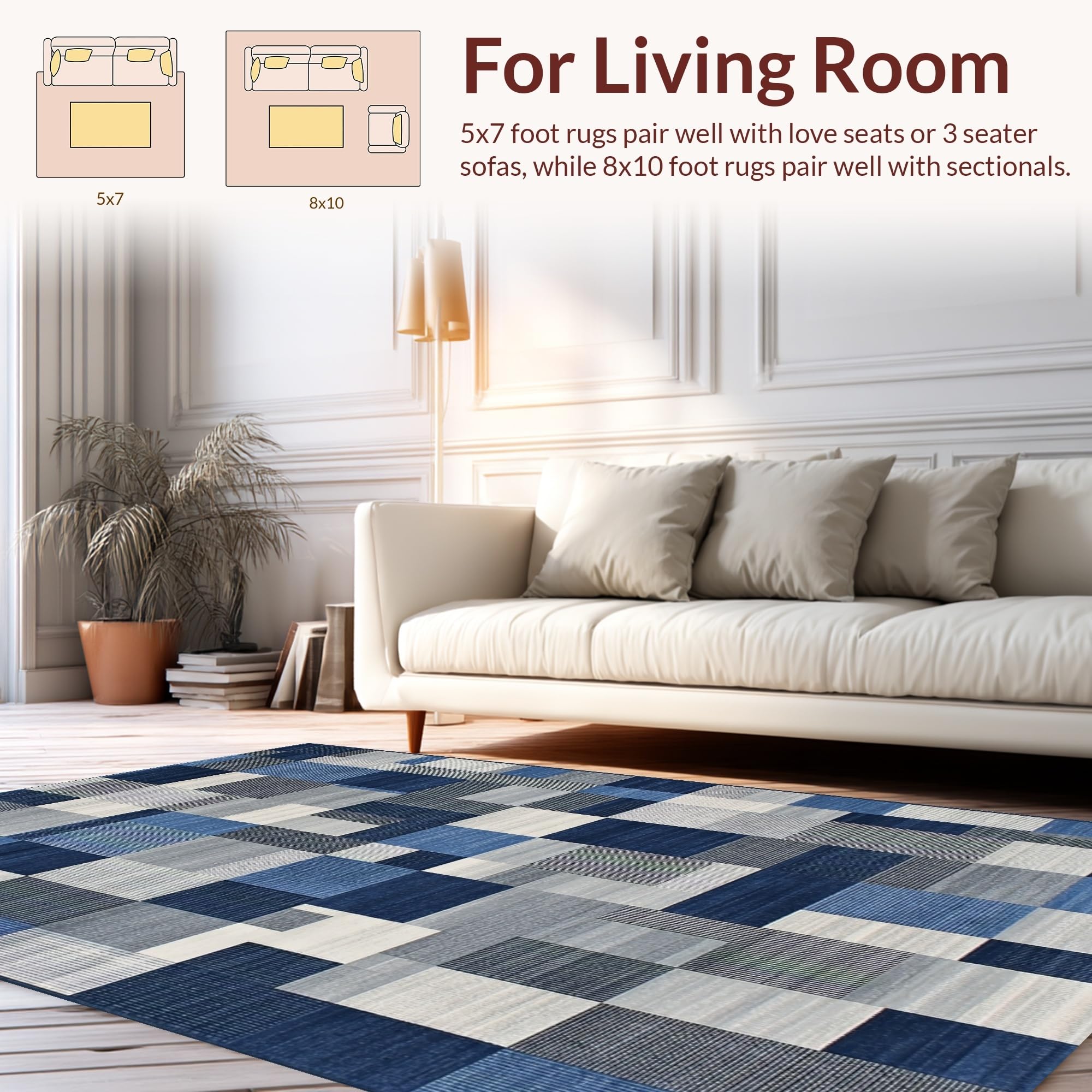 Ultra Soft Area Rug, Non Slip, Stain Resistant, Washable Area Rugs for Living Room, Bedroom, Chic Minimalist Lattice Theme(Blue) Overview: