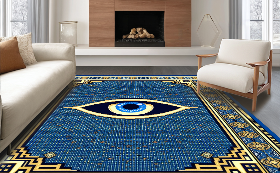Ultra Soft Area Rug, Non Slip, Stain Resistant, Washable Area Rugs for Living Room, Bedroom, Chic Minimalist Linear Artwork(Blue) Overview: