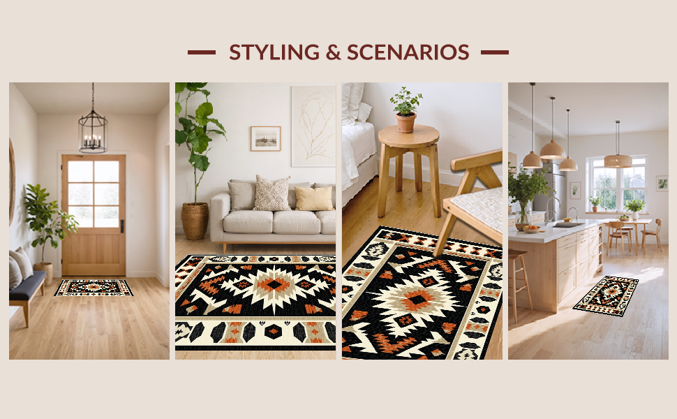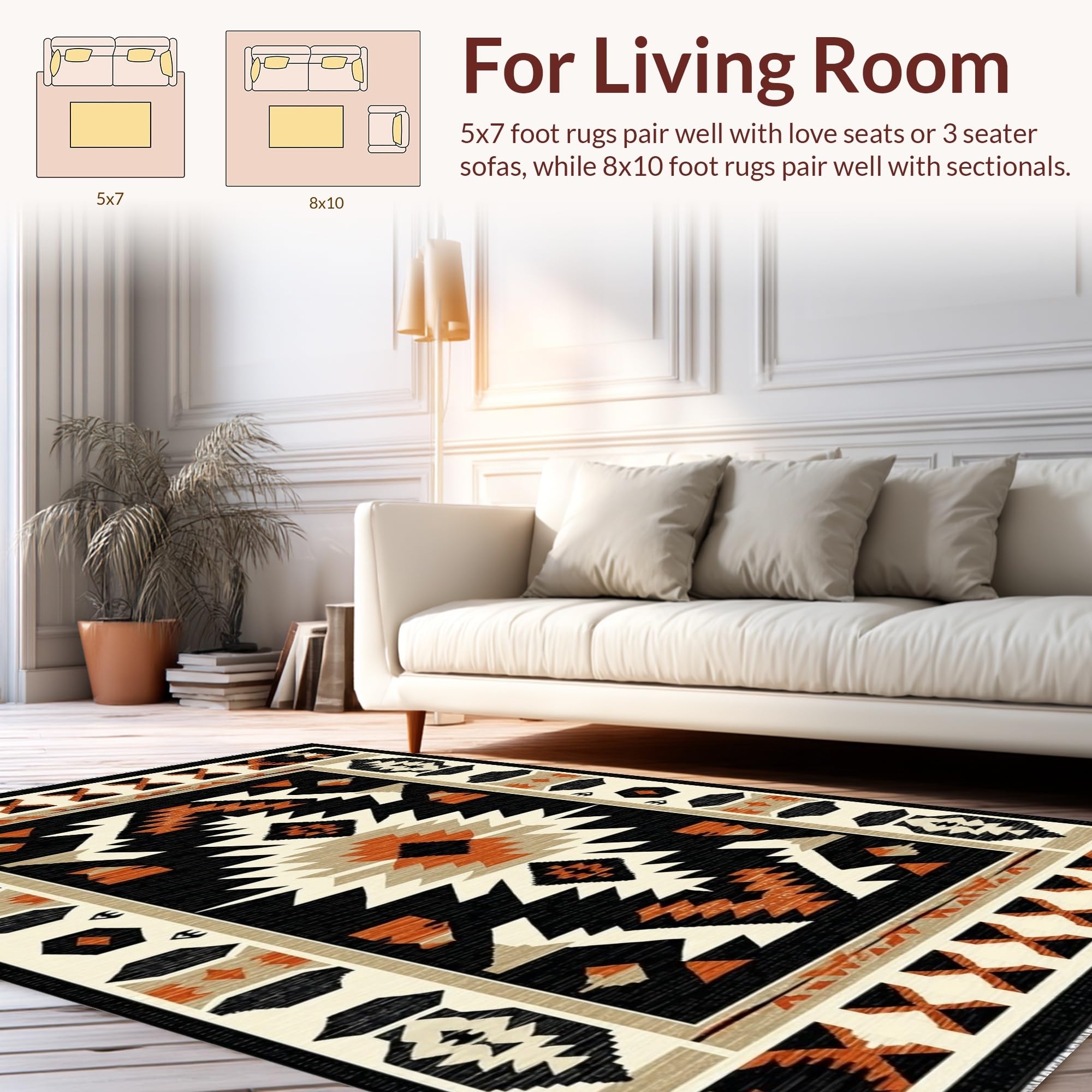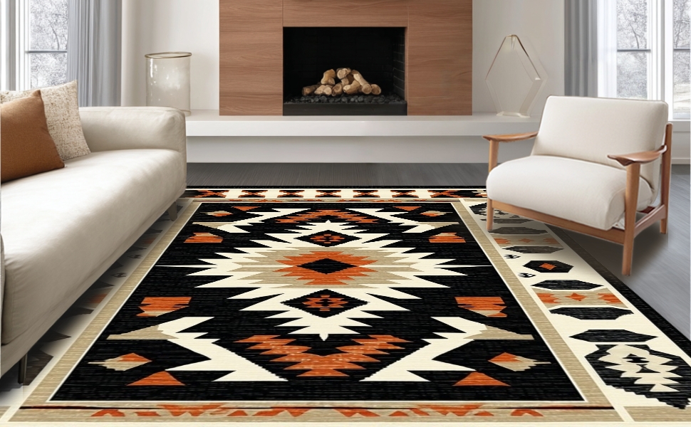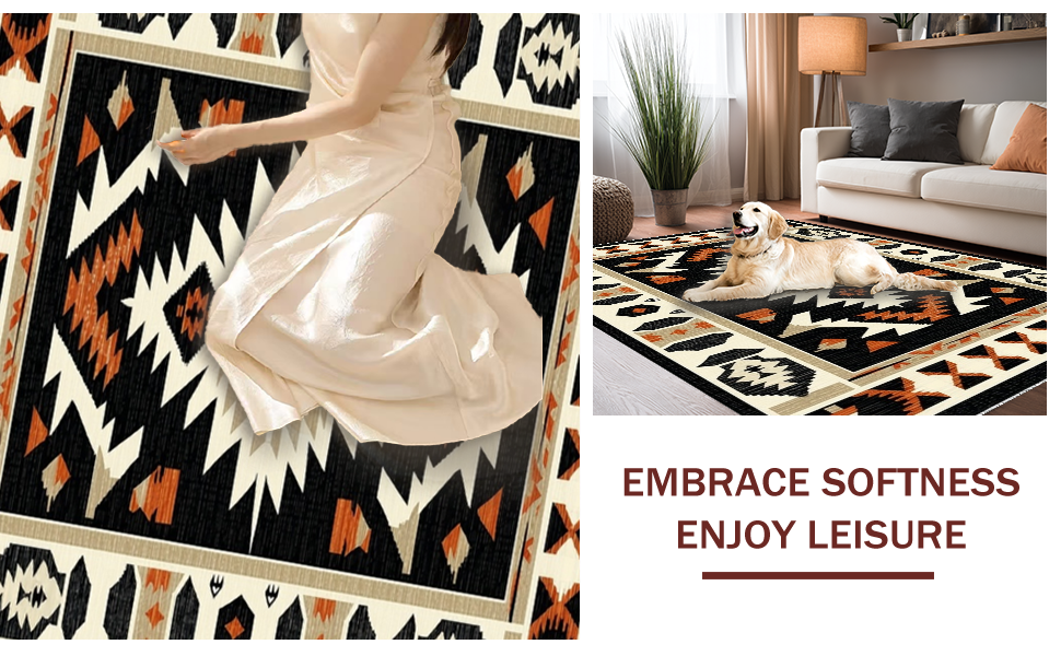 Ultra Soft Area Rug, Non Slip, Stain Resistant, Washable Area Rugs for Living Room, Bedroom, Chic Minimalist Linear Design(Black) Overview: