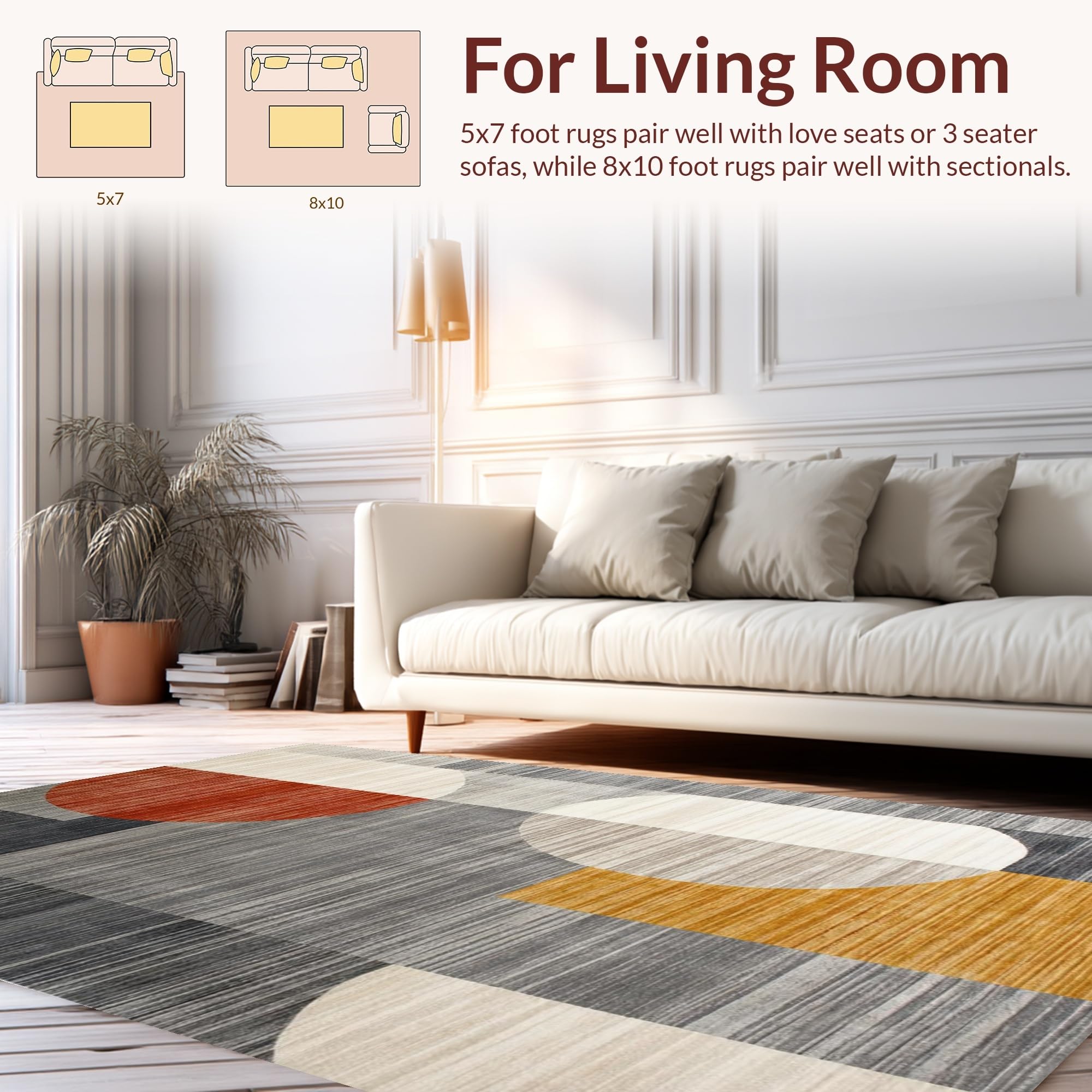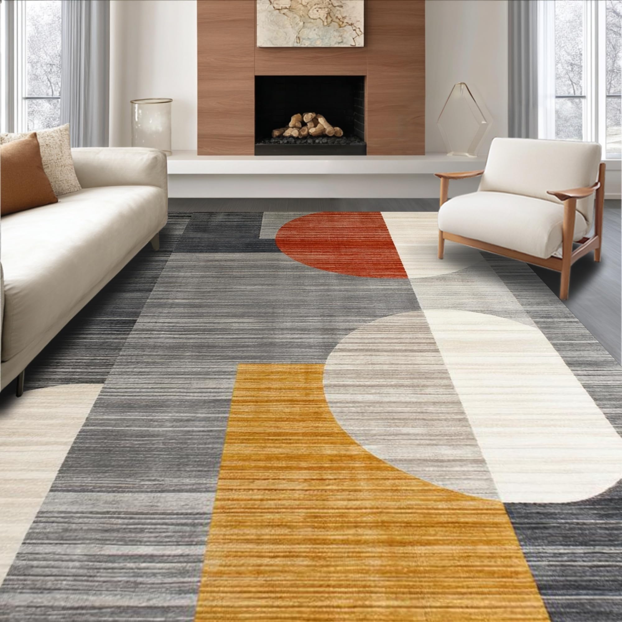Ultra Soft Area Rug, Non Slip, Stain Resistant, Washable Area Rugs for Living Room, Bedroom, Chic Minimalist Monochrome Design(Gray) Overview: