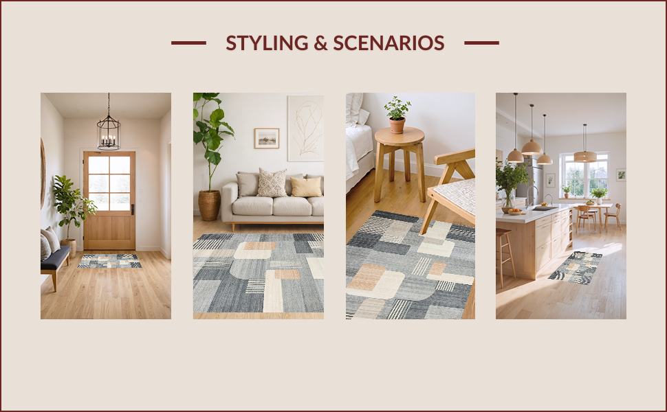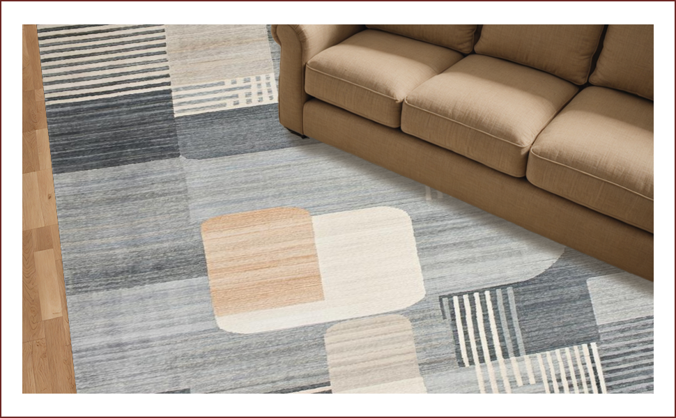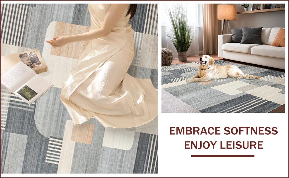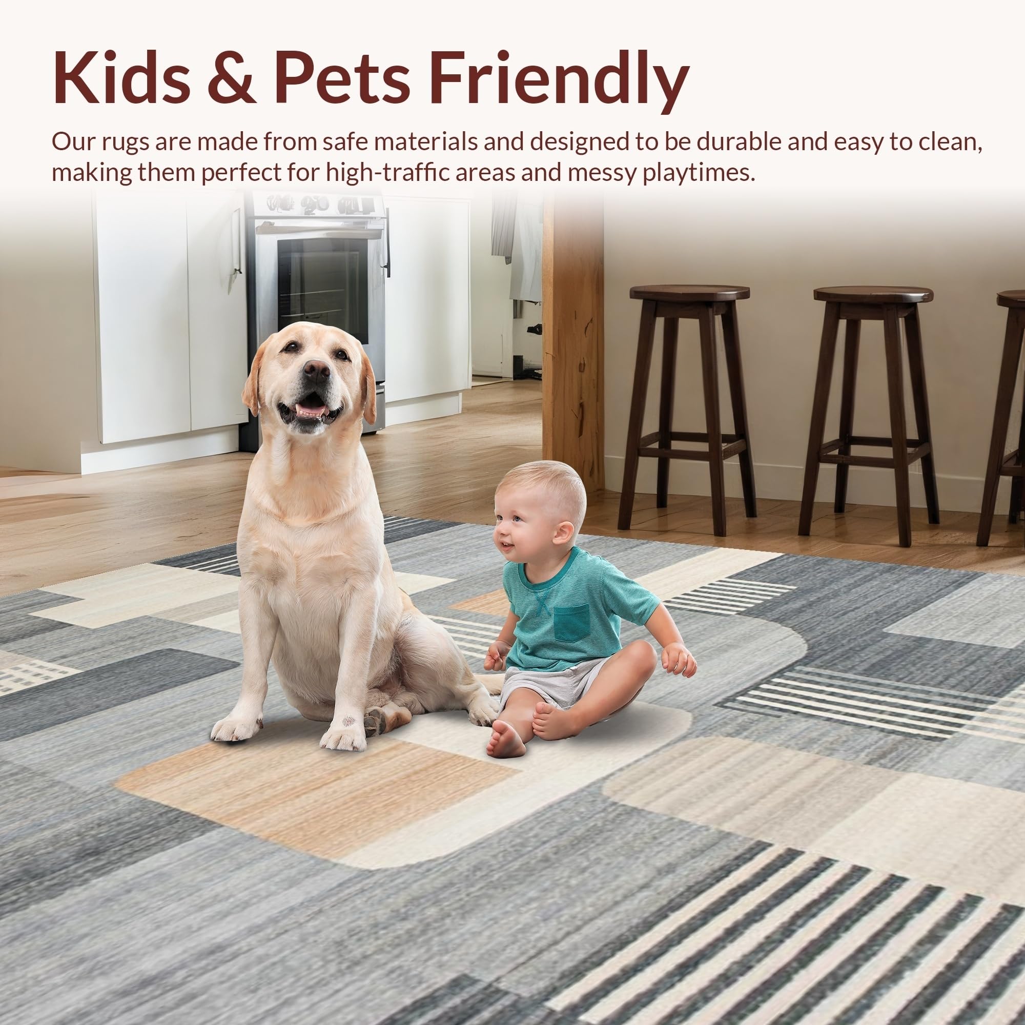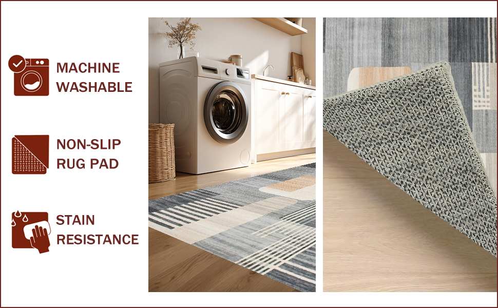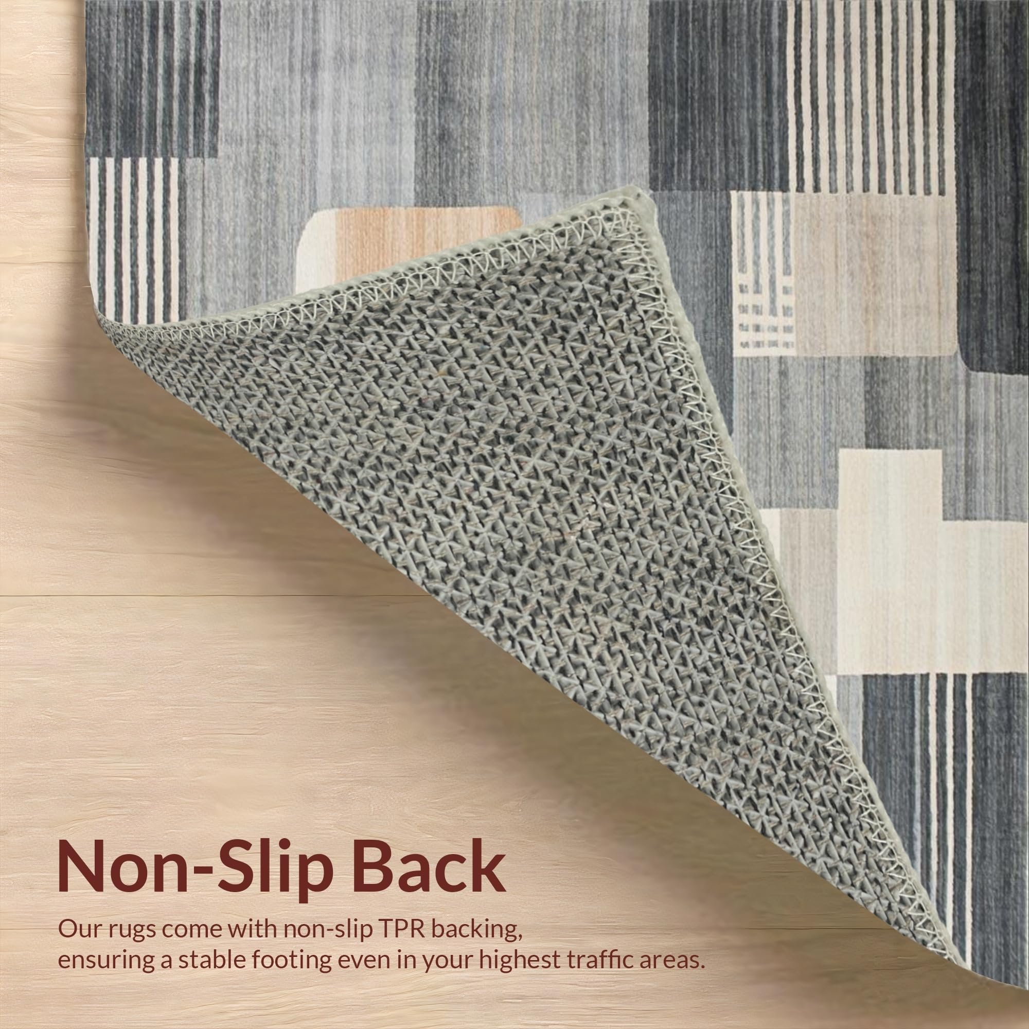 Ultra Soft Area Rug, Non Slip, Stain Resistant, Washable Area Rugs for Living Room, Bedroom, Chic Minimalist Textured Geometric Motif(Gray) Overview: