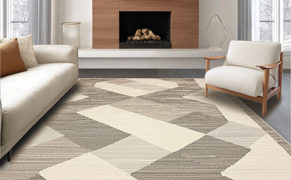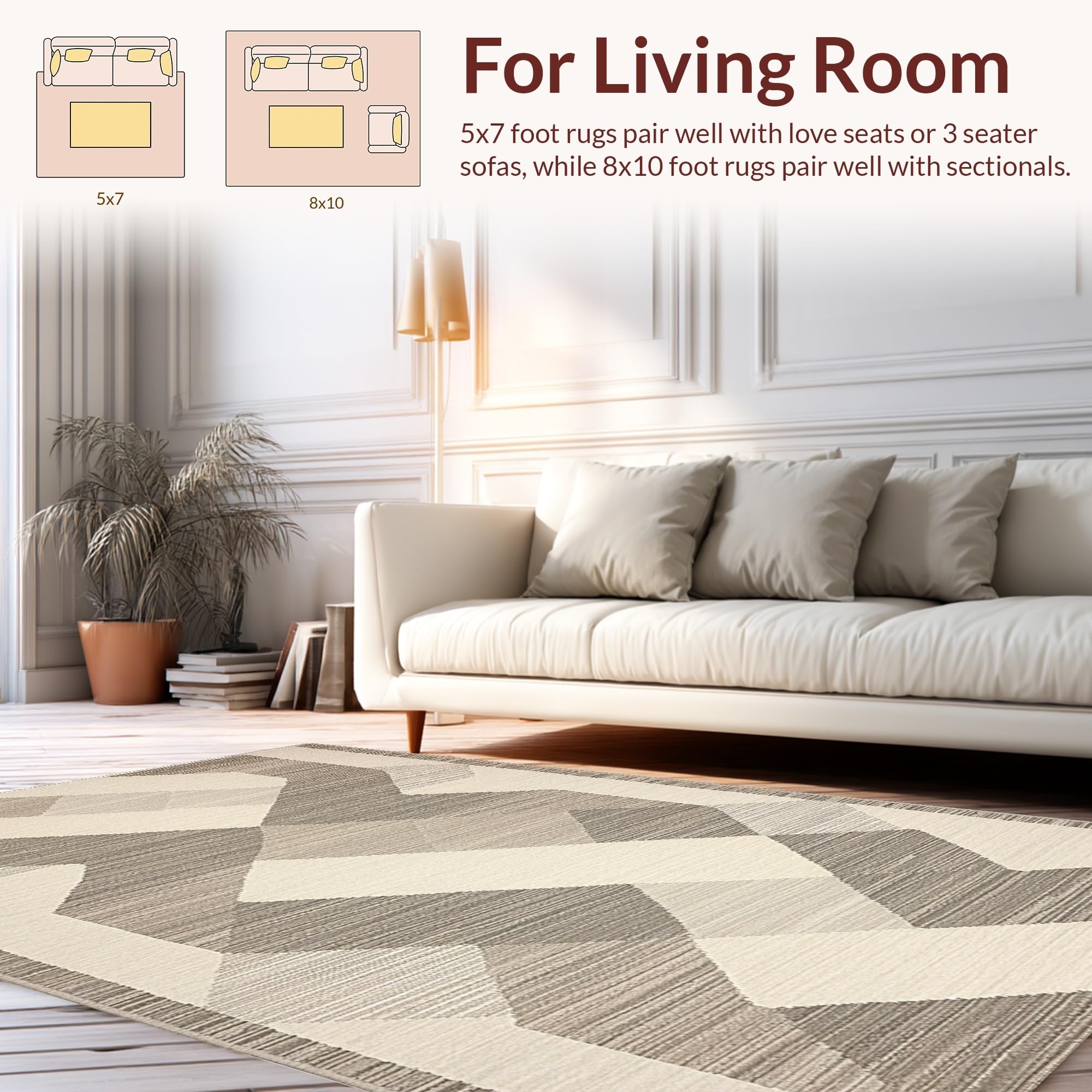 Ultra Soft Area Rug, Non Slip, Stain Resistant, Washable Area Rugs for Living Room, Bedroom, Chic Minimalist Trellis Motif(Beige) Overview: