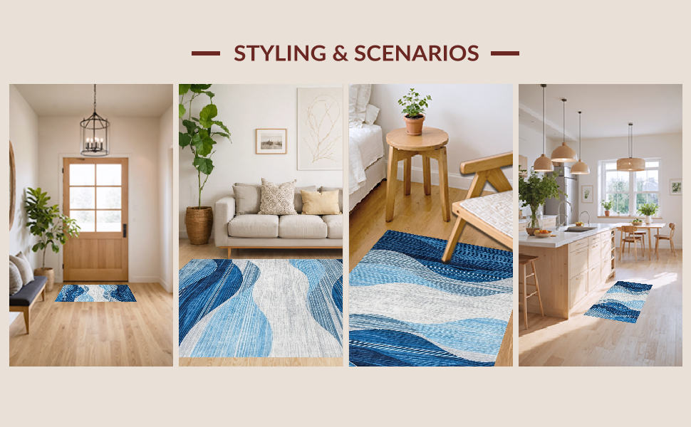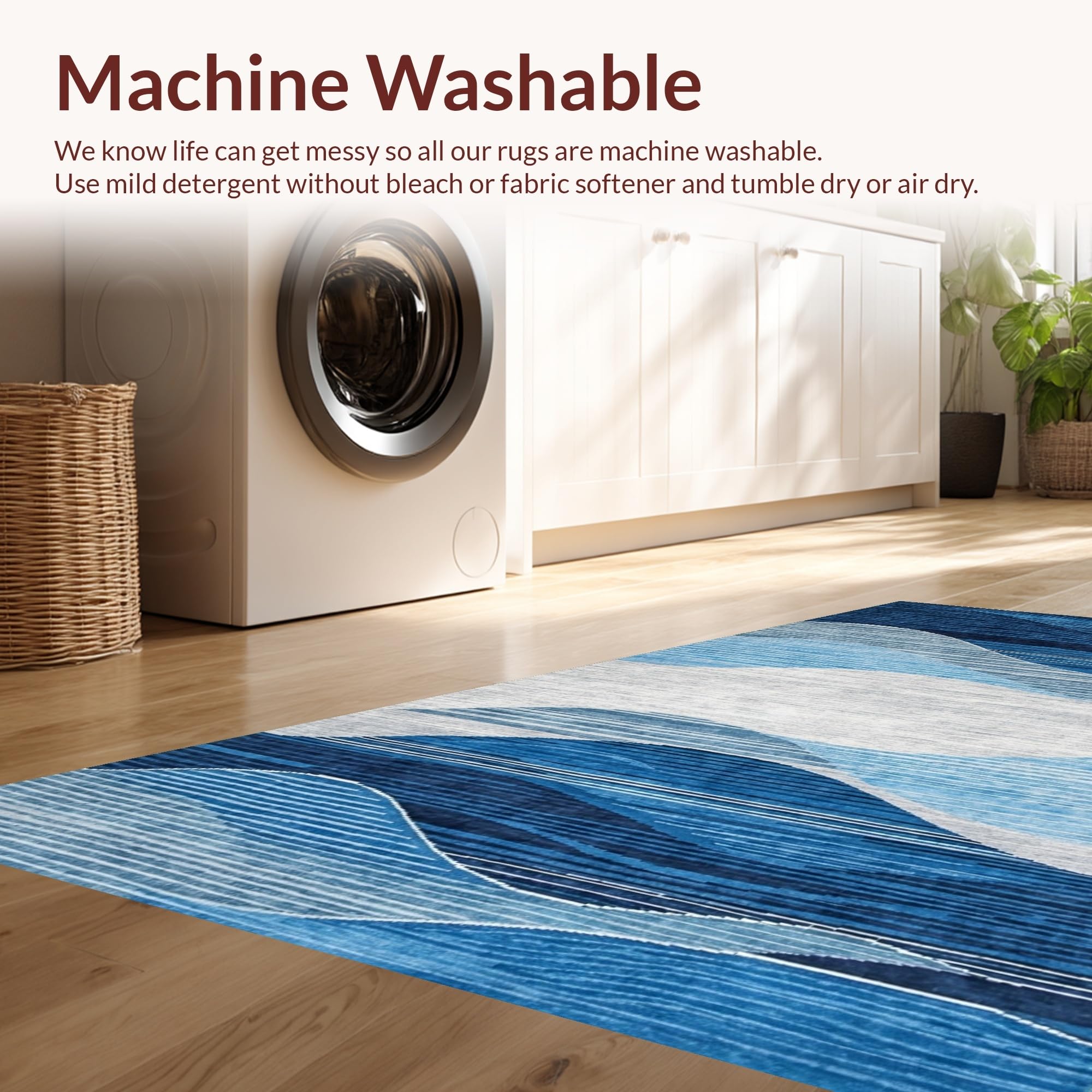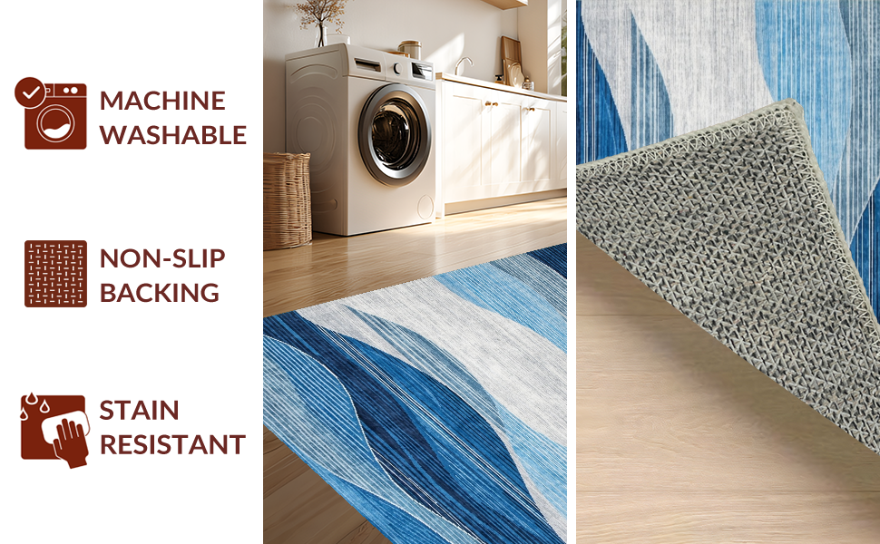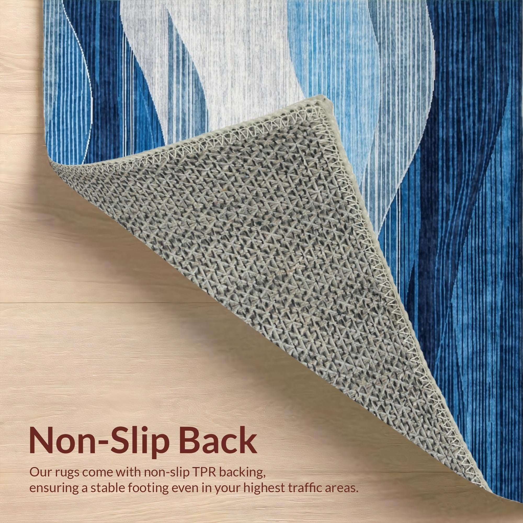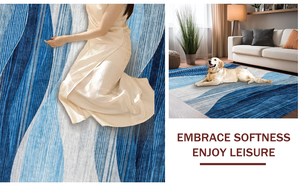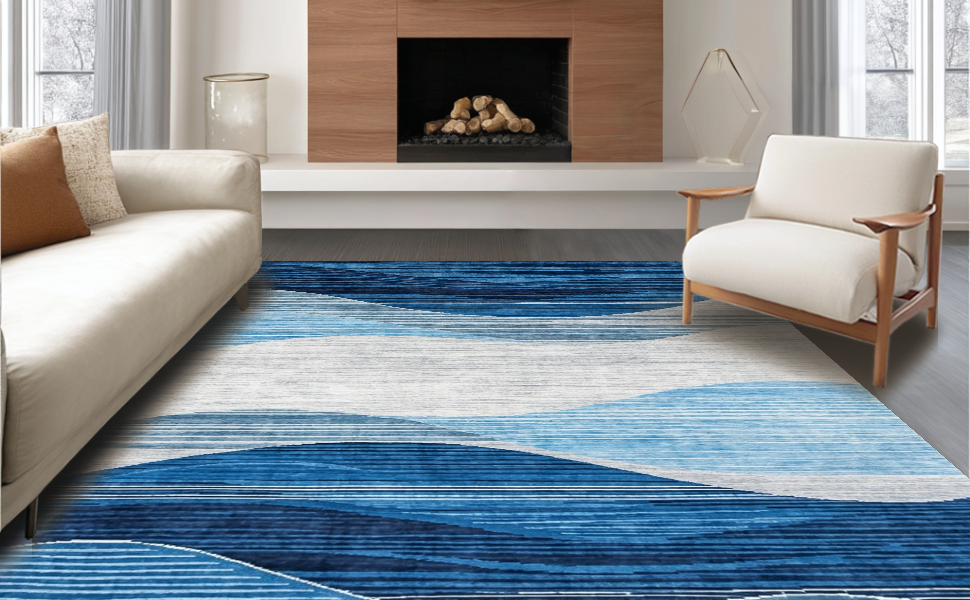 Ultra Soft Area Rug, Non Slip, Stain Resistant, Washable Area Rugs for Living Room, Bedroom, Chic Modern Artful Overlay(Blue) Overview: