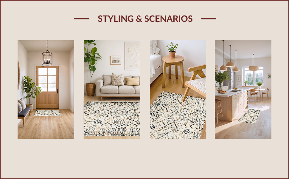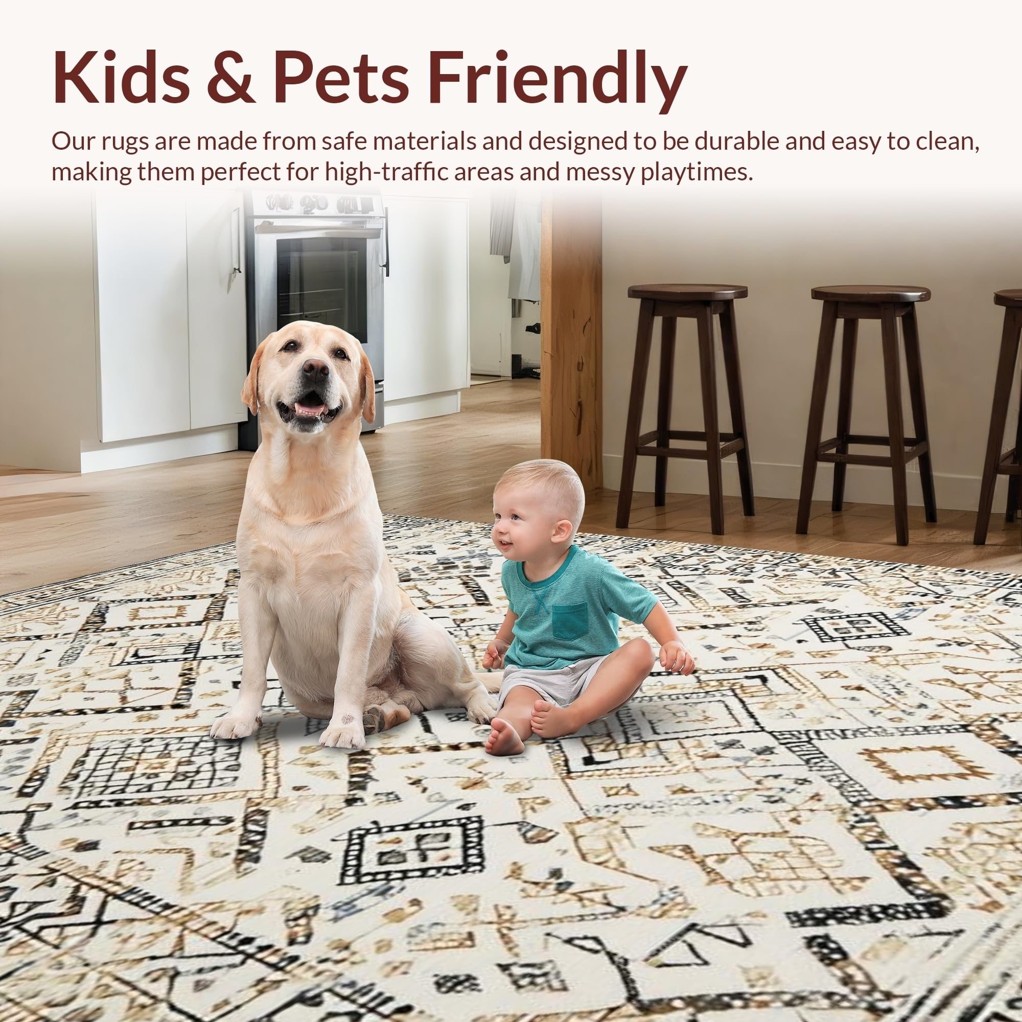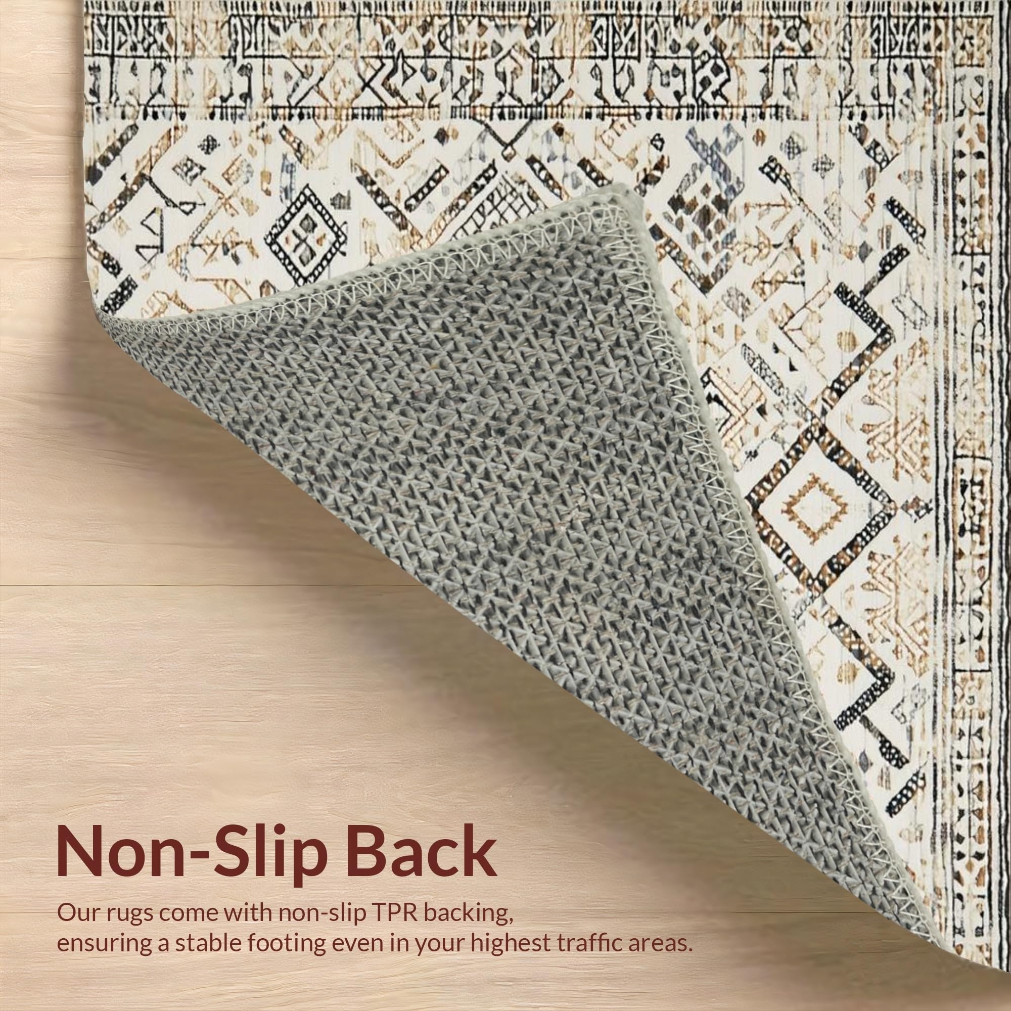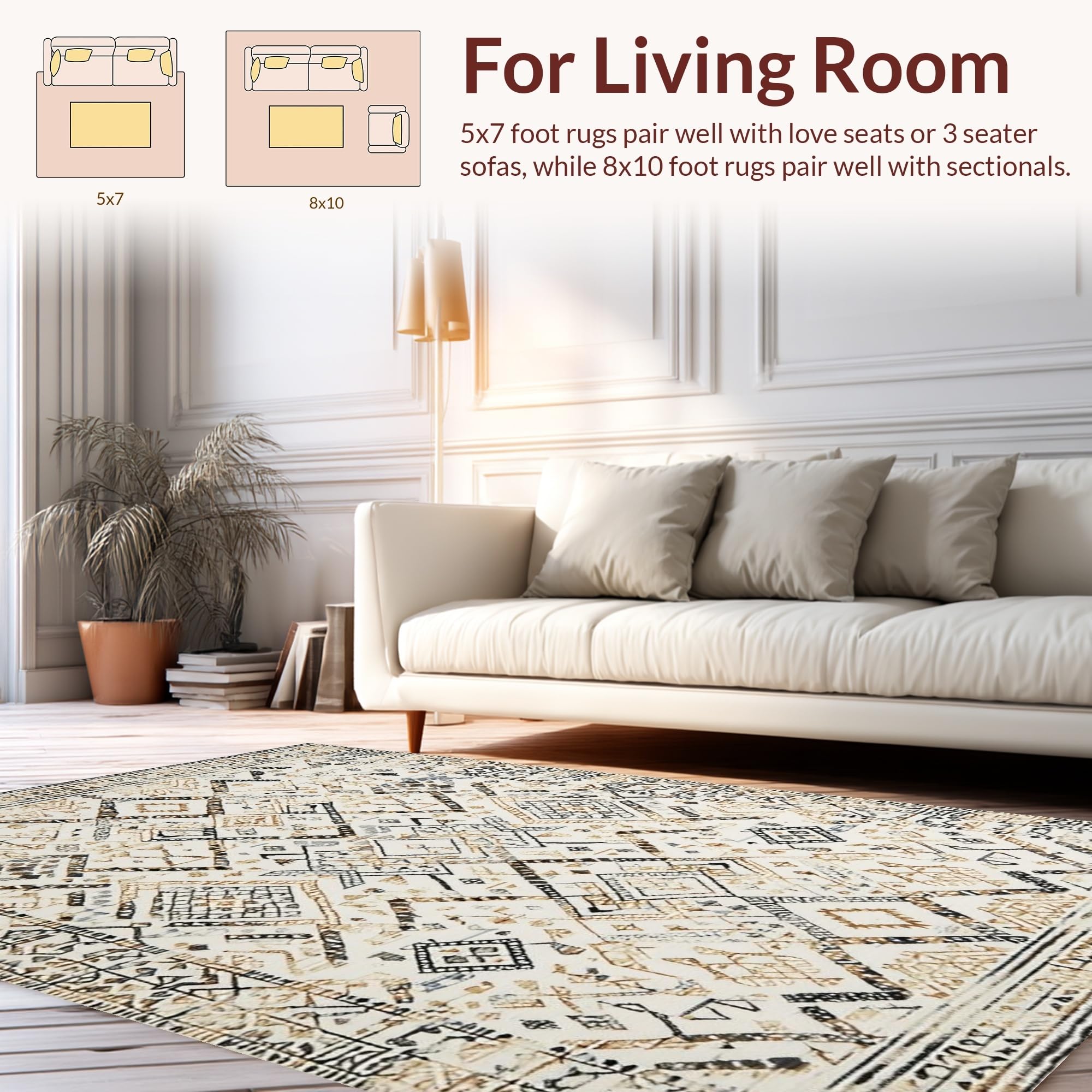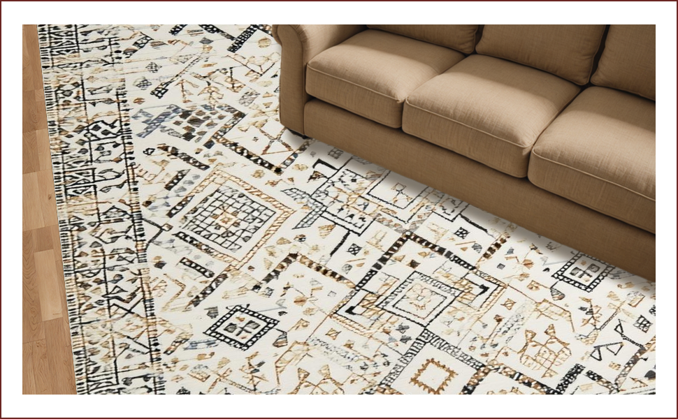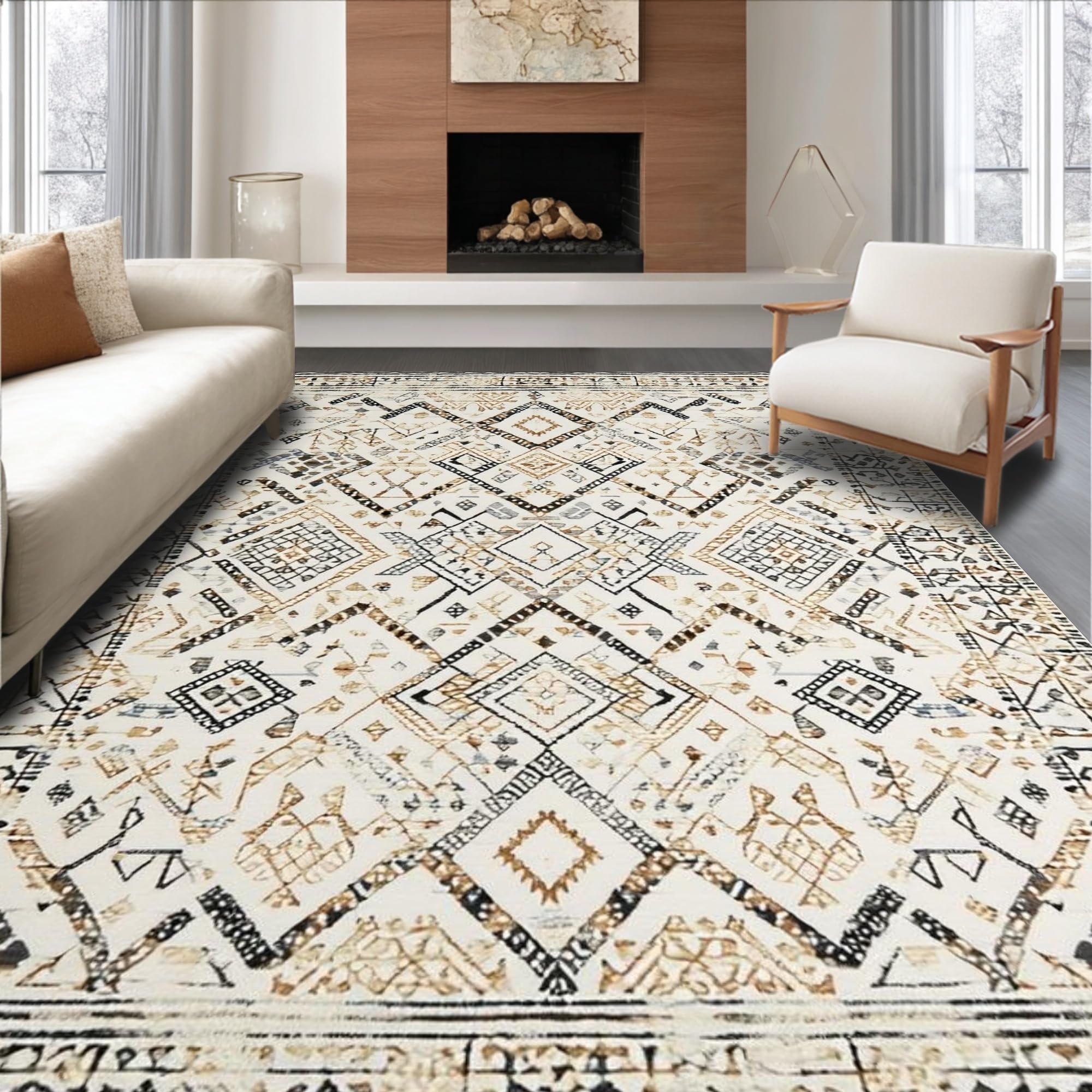 Ultra Soft Area Rug, Non Slip, Stain Resistant, Washable Area Rugs for Living Room, Bedroom, Chic Modern Diamond Pattern Aesthetic(Beige) Overview: