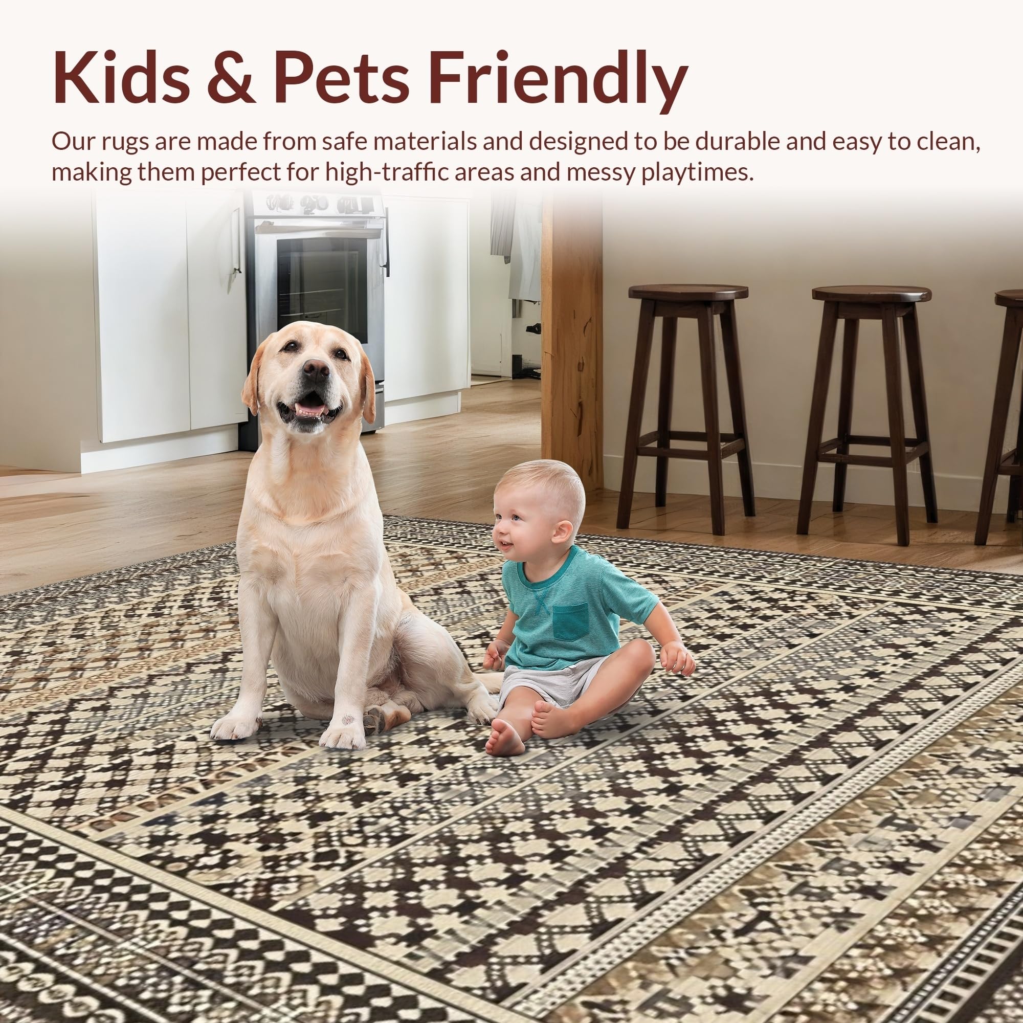 - Kid & Pet Friendly: Ideal for high-traffic indoor areas, this flooring is designed to withstand life's unpredictable messes caused by children or pets.